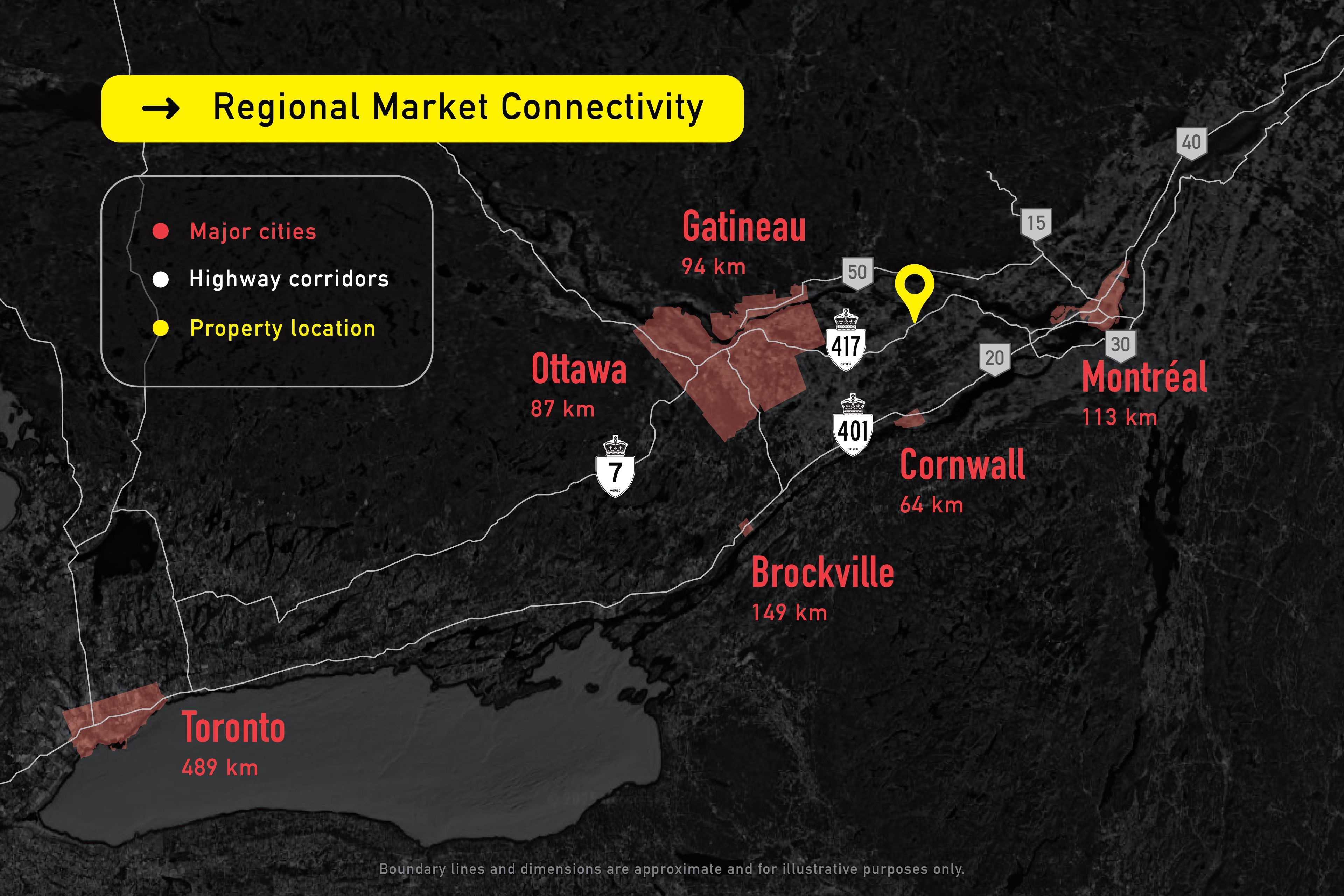 Additional details found in property brochure link below. -located immediately off highway 417 with direct interchange access, this 21. 5-acre industrial landholding offers over 1,250 feet of frontage and the depth required for efficient truck circulation and scalable site planning. Positioned within the ottawa-montreal trade corridor, the property supports logistics, manufacturing, processing, and transportation-based operations requiring regional reach without urban constraints, with potential for tier 01 power availability for qualified tier 01 users supporting high-demand, power-intensive operations. Zoned mr and suited to a broad range of industrial applications, the site delivers meaningful scale, highway frontage, and disciplined industrial positioning within eastern ontario's primary transportation route.