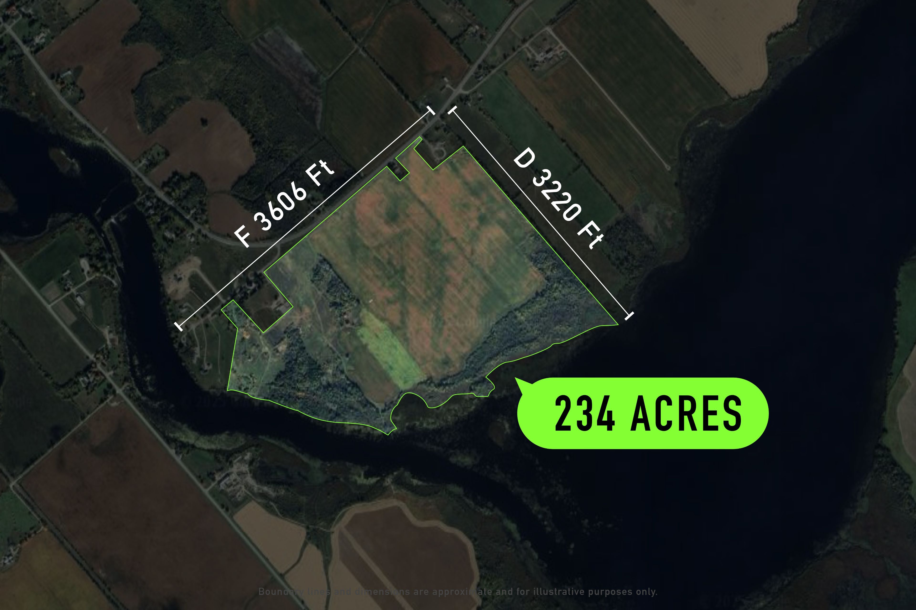 • 234 acres of prime agricultural land with extensive waterfront frontage.