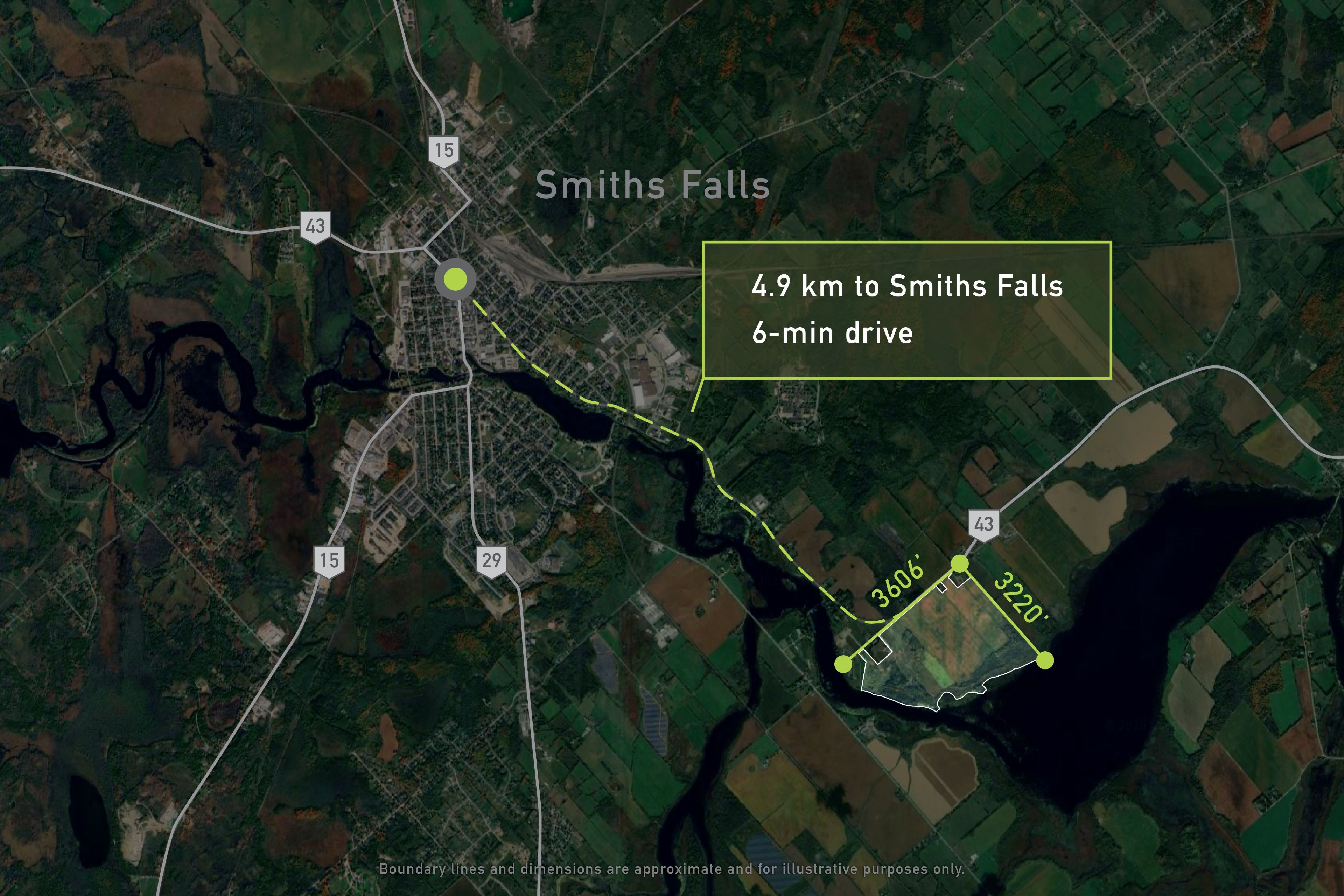 Additional details found in property brochure link below. Discover a 234-acre agricultural landholding along highway 43 in the smiths falls region, offering meaningful scale and approximately 135 acres of tile-drained, productive tillable land. The property features efficient field configuration suited to modern equipment and consistent crop production, supported by approximately 5,288 feet of water frontage that contributes to natural drainage and field performance. With solid regional access and a strong workable land base, this parcel presents a compelling opportunity for agricultural operators seeking scale, efficiency, and long-term farming viability. This property may not be subject to hst; however, all parties are advised to obtain independent advice from their accountant and legal counsel to determine the applicability of hst.