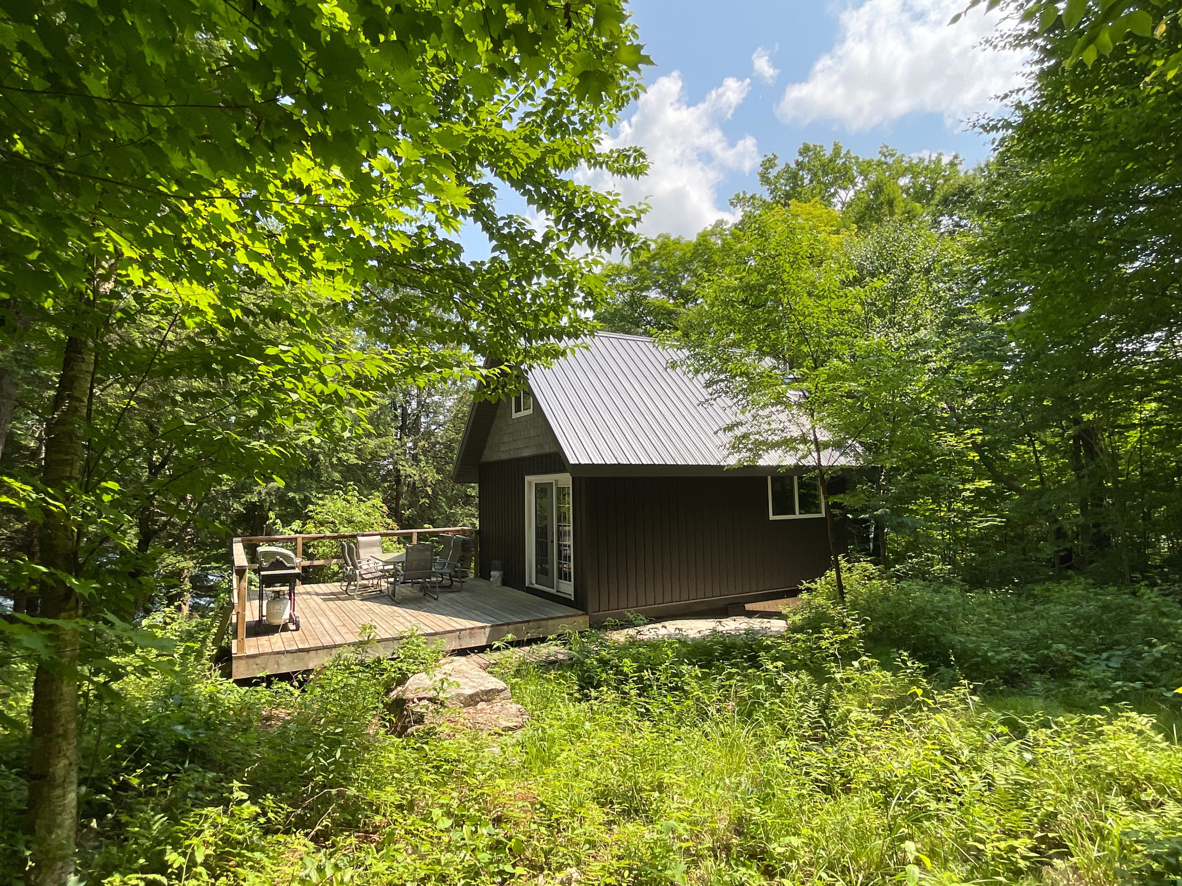 • Off-grid cottage ready for custom interior finishing with strong construction.