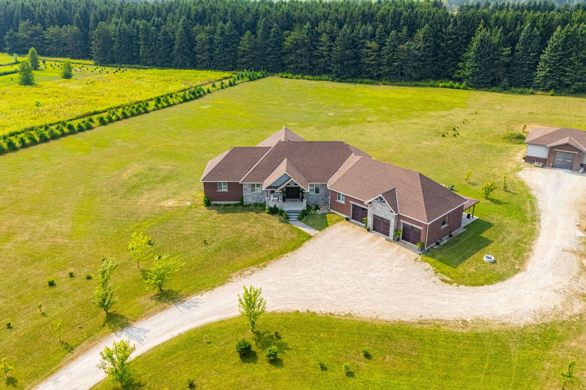 Welcome to 023181 erin east garafraxa townline, where refined country living meets modern convenience. Set on 4. 5 private, tree-lined acres, this custom-built bungalow was constructed solid and built to last, offering exceptional craftsmanship and enduring quality. Tucked well back from the road yet just minutes to erin, orangeville, and essential amenities, this property delivers privacy without compromise. Designed with family living in mind, the home features 3 spacious bedrooms plus a versatile den easily converted to a 4th bedroom or home office. Four beautifully finished bathrooms and a bright, open-concept layout create a seamless flow throughout the main level. Soaring ceilings and expansive windows fill the home with natural light, enhancing the warm and inviting atmosphere. The kitchen, dining, and living areas connect effortlessly, perfect for entertaining or enjoying quiet evenings at home. The primary suite offers a peaceful retreat with a spa-inspired ensuite and serene views of the surrounding landscape. The walk-up basement provides incredible flexibility for additional living space, multi-generational living, or a custom recreation area tailored to your needs. Outside, the impressive 1,400 sq ft detached workshop/garage is heated and dry walled, ideal for hobbyists, entrepreneurs, or additional storage for vehicles, tools, and equipment. Rogers fibe high-speed internet is now available and run directly to the property, offering reliable connectivity for work and everyday life. Surrounded by mature trees and open space, this is a rare opportunity to own a luxurious, family-friendly country property with modern amenities just minutes from town.