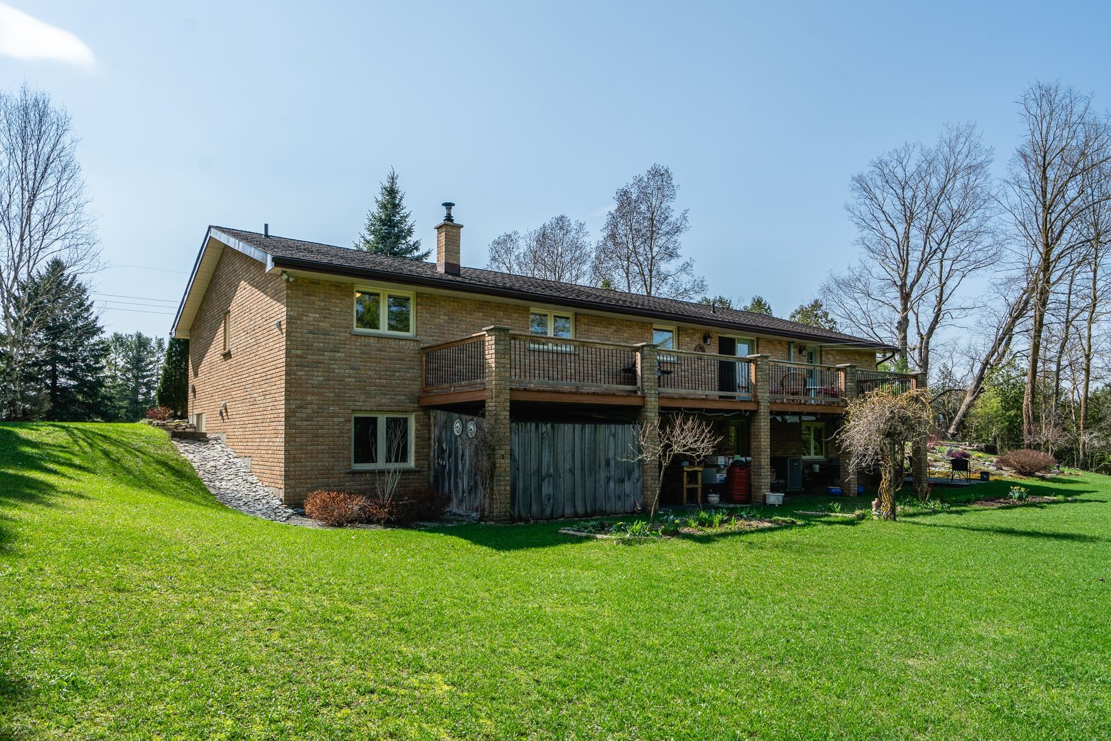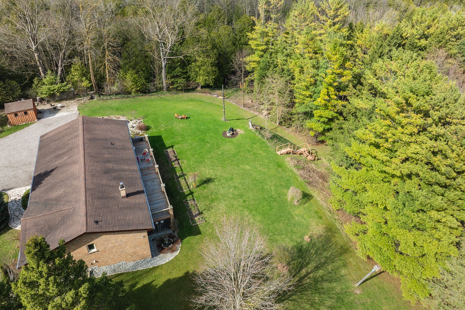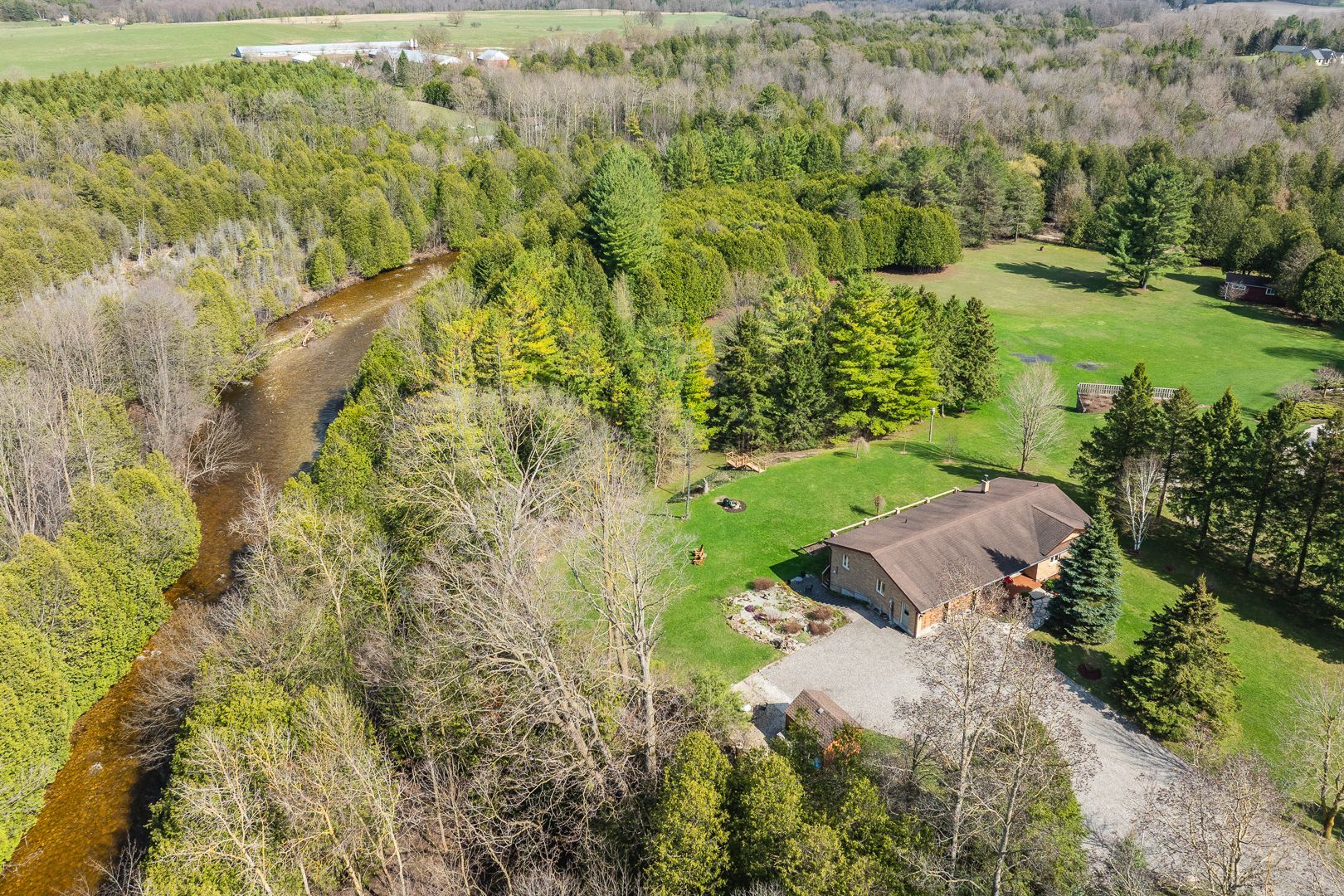 Rare opportunity to own a waterfront acreage just minutes from hanover, offering a gorgeous natural setting with a lovely bungalow, 2 storage sheds and only moments to the convenience of town amenities. Located on a paved road with wightman fibre optic internet, this property combines rural living with modern connectivity. The fully bricked 3+1 bedroom, 3 bathroom bungalow features a practical layout. The main floor offers an eat-in kitchen with solid wood hanover cabinetry, quartz countertops, and french doors leading to a large deck overlooking the forest and beatty saugeen river. The living room includes a picture window with views of the front covered porch, trees and gardens. There are three bedrooms, including a spacious l-shaped primary with large closet and direct access to the four-piece bathroom. A two-piece bathroom, laundry room, and attached double car garage complete the main level. The fully finished lower level includes a walk-out, living room with an airtight wood stove, family room with pocket french doors, a spacious bedroom, kitchenette, three-piece bathroom, 3 storage rooms--ideal for guests or multigenerational living. Other features include two automatic garage door openers, updated windows (2016), high-efficiency furnace, central air (2010), water system (with ro water treatment, iron filter, water softener), recycled asphalt driveway, generator, full appliance package and two storage sheds. This acreage is a private playground--whether you are fishing or tubing in the summer, snowshoeing in the winter, relaxing at the river or at the campfire, watching wildlife or gardening, every season offers a new way to enjoy outdoor life. Conveniently located just minutes from hanover's schools, hospital, and shopping, this waterfront property combines a peaceful rural setting with easy access to everyday amenities. Spacious with main floor just over 1600sq ft, lower level 1343, above grade finished approx 2400 sq ft with walkout.