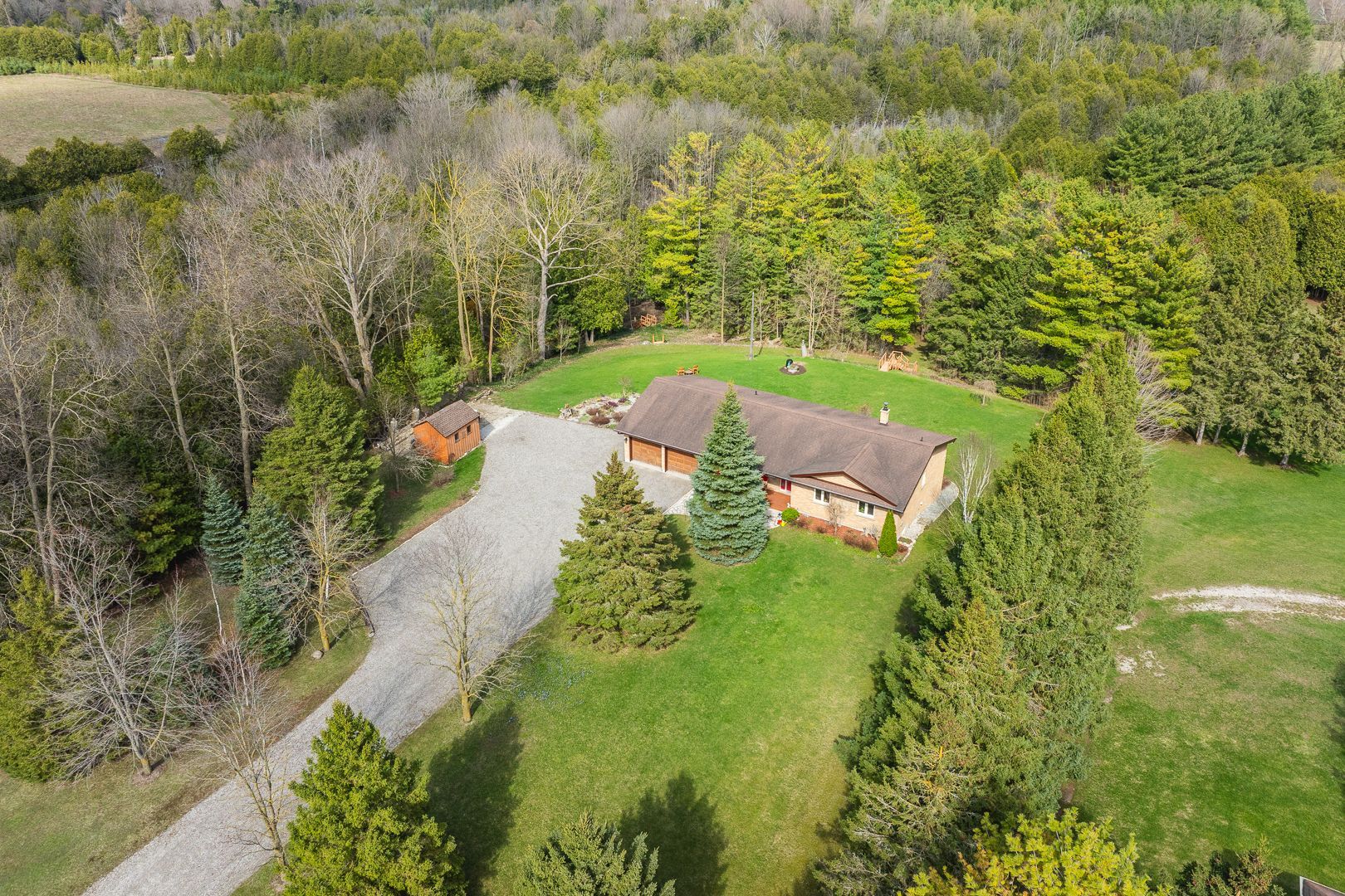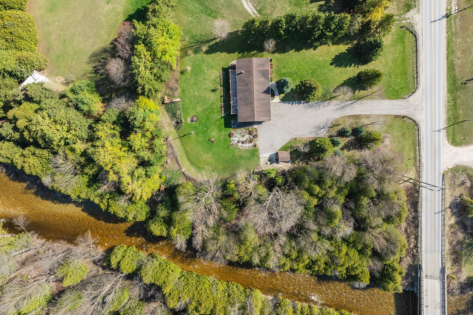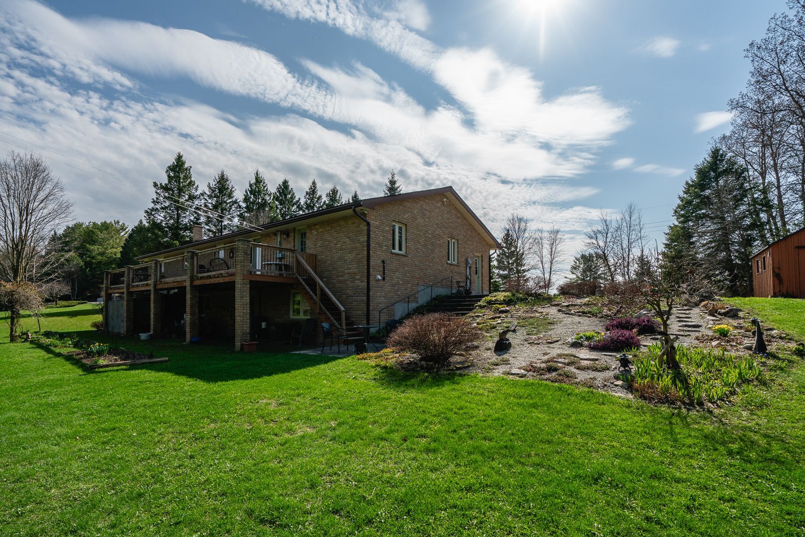 Rare opportunity to own a waterfront acreage just minutes from hanover, offering a gorgeous natural setting with a lovely bungalow, 2 storage sheds and only moments to the convenience of town amenities. Located on a paved road with wightman fibre optic internet, this property combines rural living with modern connectivity. The fully bricked 3+1 bedroom, 3 bathroom bungalow features a practical layout. The main floor offers an eat-in kitchen with solid wood hanover cabinetry, quartz countertops, and french doors leading to a large deck overlooking the forest and beatty saugeen river. The living room includes a picture window with views of the front covered porch, trees and gardens. There are three bedrooms, including a spacious l-shaped primary with large closet and direct access to the four-piece bathroom. A two-piece bathroom, laundry room, and attached double car garage complete the main level. The fully finished lower level includes a walk-out, living room with an airtight wood stove, family room with pocket french doors, a spacious bedroom, kitchenette, three-piece bathroom, 3 storage rooms--ideal for guests or multigenerational living. Other features include two automatic garage door openers, updated windows (2016), high-efficiency furnace, central air (2010), water system (with ro water treatment, iron filter, water softener), recycled asphalt driveway, generator, full appliance package and two storage sheds. This acreage is a private playground--whether you are fishing or tubing in the summer, snowshoeing in the winter, relaxing at the river or at the campfire, watching wildlife or gardening, every season offers a new way to enjoy outdoor life. Conveniently located just minutes from hanover's schools, hospital, and shopping, this waterfront property combines a peaceful rural setting with easy access to everyday amenities. Spacious with main floor just over 1600sq ft, lower level 1343, above grade finished approx 2400 sq ft with walkout.
