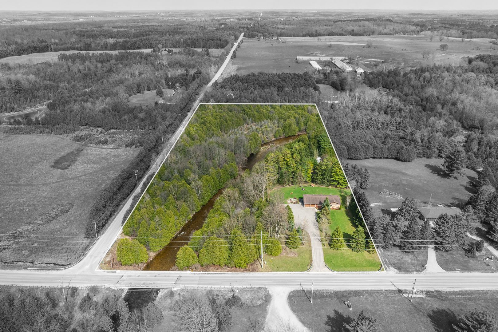 • Waterfront acreage minutes from town offers a natural and peaceful setting.
