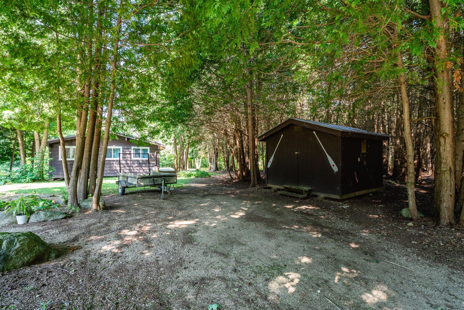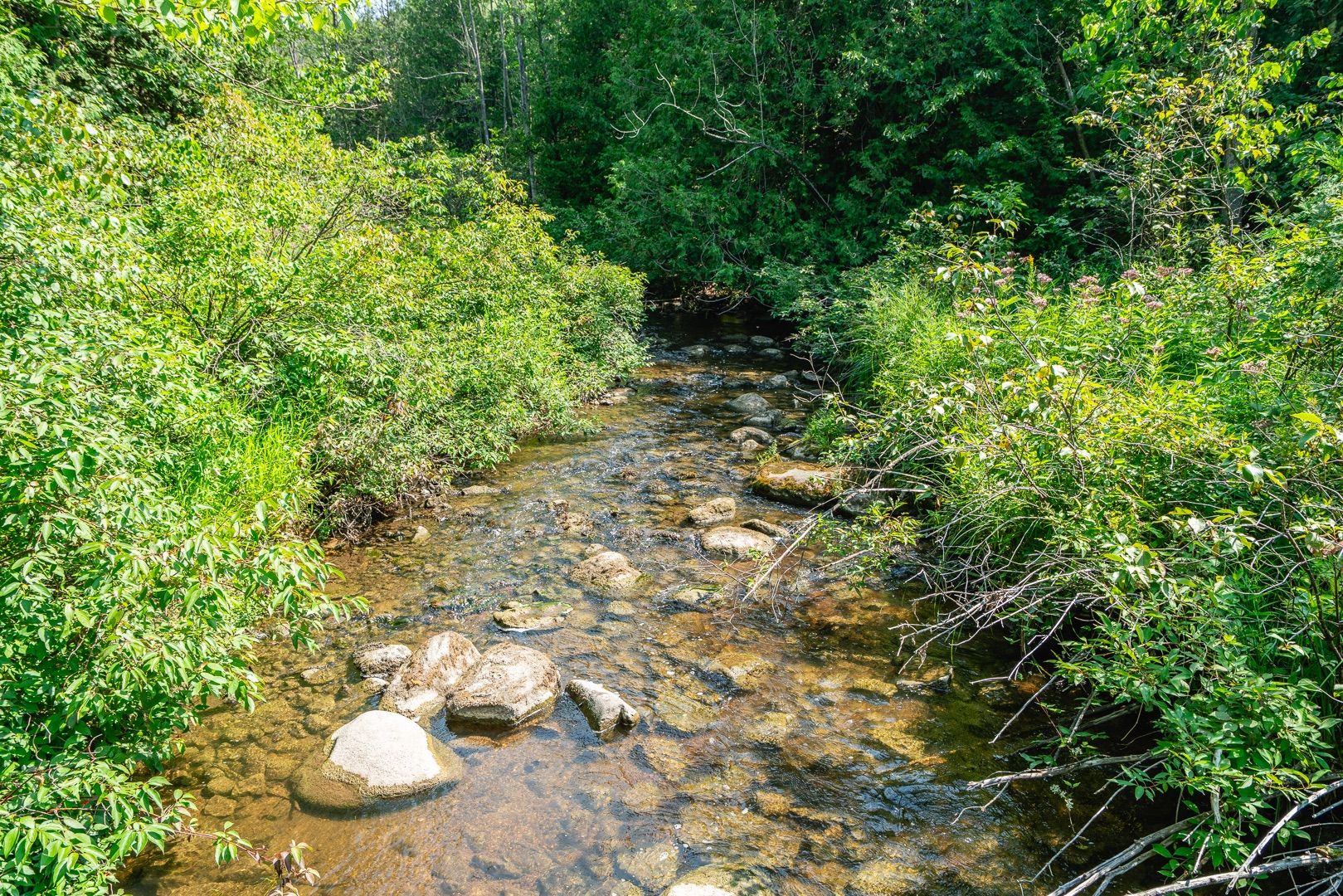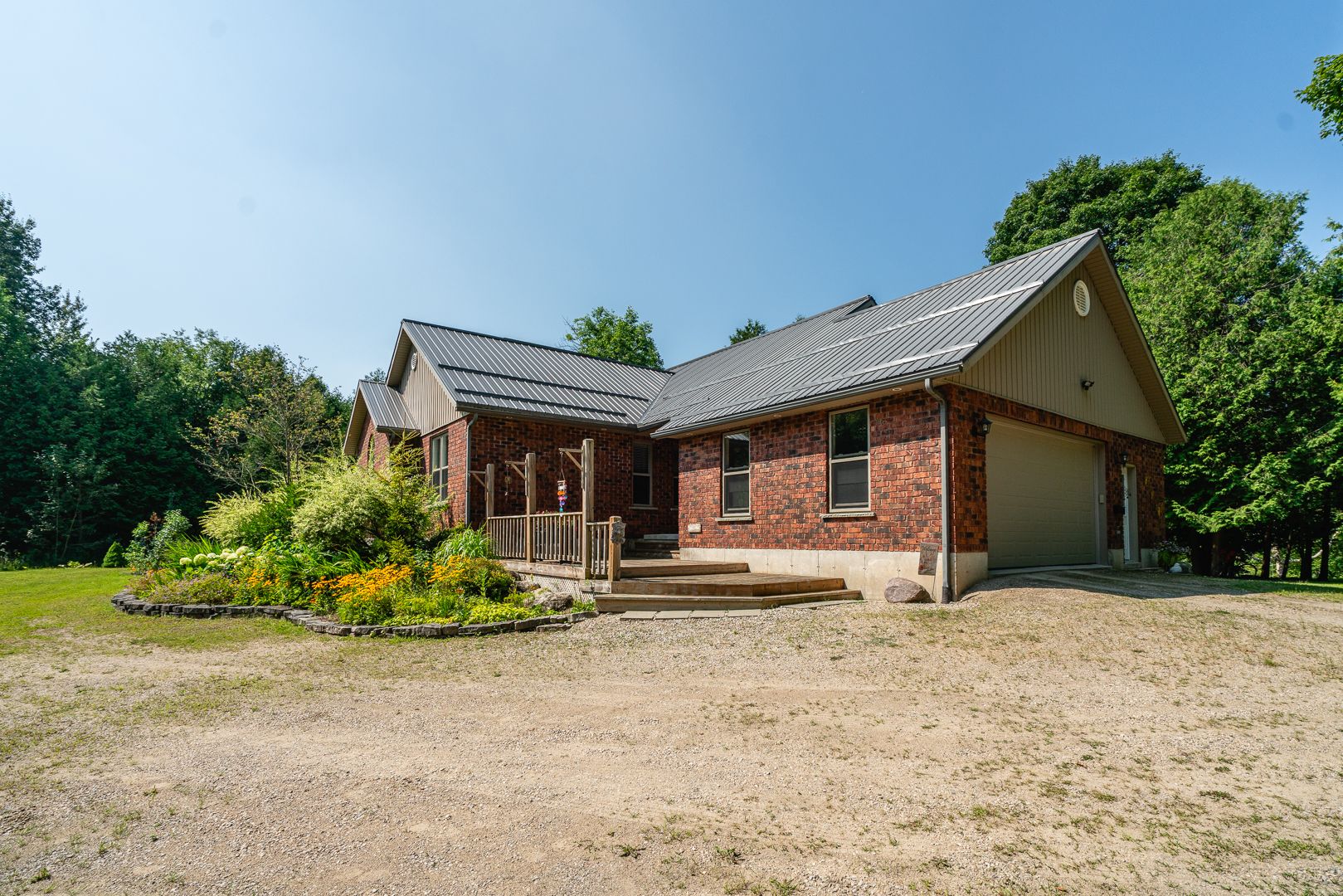 This 2006 brick bungalow sits on over 20 acres and comes complete with a 28' x 32' workshop, charming cottage, private pond, walking or atv trails, and the beautiful deer creek running through the property. Offering over 2800 sq. Ft. Of total living space, the home features a bright living room with soaring vaulted ceilings, a primary suite with a walk-in closet and 3-piece ensuite, and a versatile room perfect for a home office or 3rd main floor bedroom. The fully finished basement expands your living area with a large rec room, hobby room, office, 3rd full bath, tons of storage, a convenient walk-up to the outdoors, and a 4th sleeping area-ideal for guests or extended family. Appliances are included, and the attached two-car garage adds even more functionality. Step outside to expansive decks overlooking the pond, where frogs and turtles make their home, or cast a line in the creek and enjoy fishing right on your own property. Nature lovers will appreciate the abundance of wildlife and peaceful surroundings at every turn. Just steps from the house you'll find your newly renovated cottage, an ideal guest space, art studio filled with natural light, or quiet getaway. With its natural beauty and complete privacy, this property is a rare opportunity to own a country retreat with every feature you could ask for!