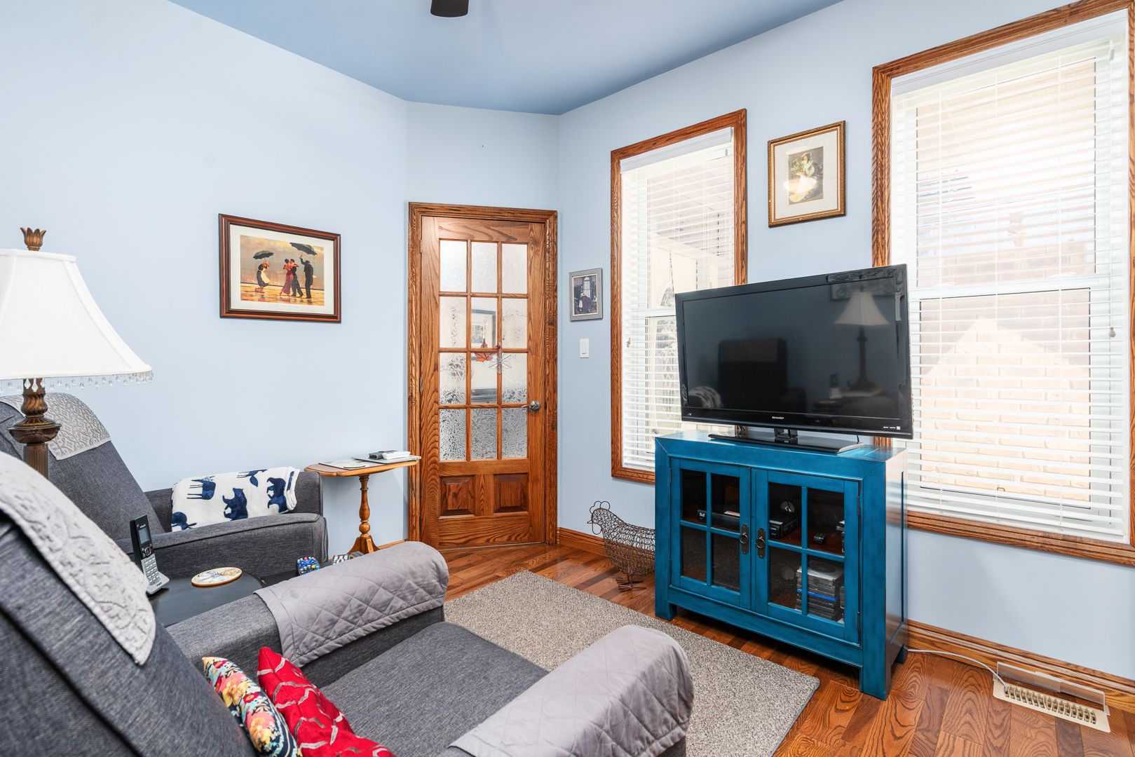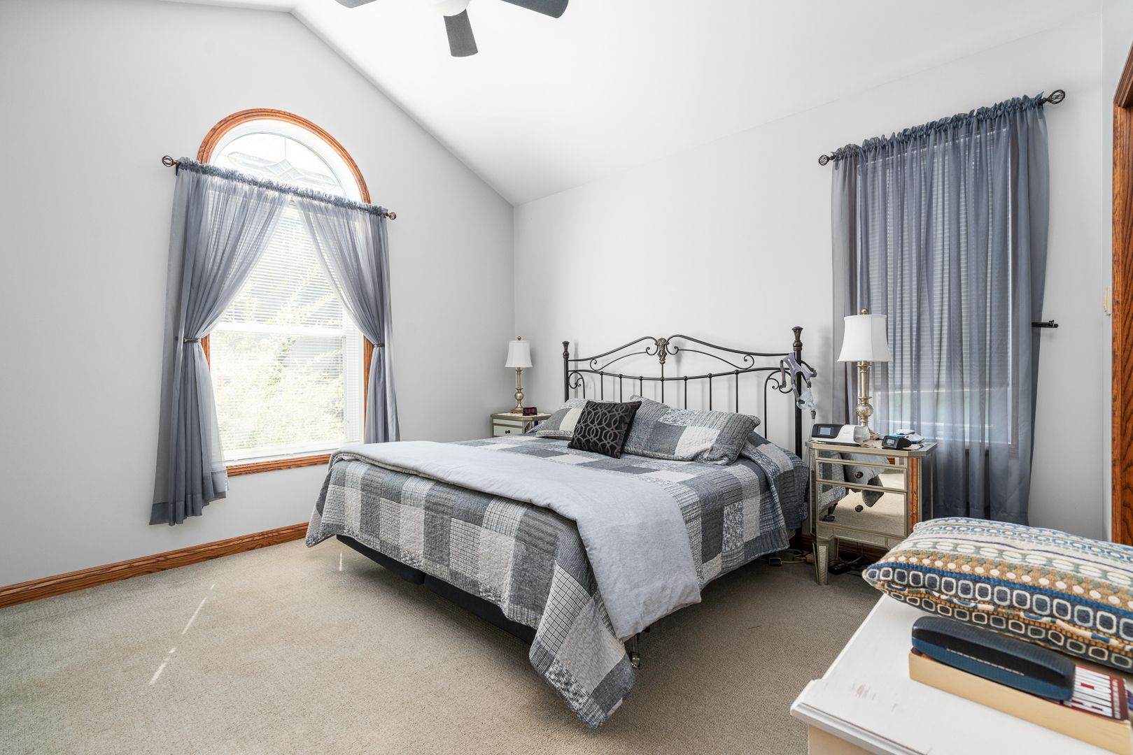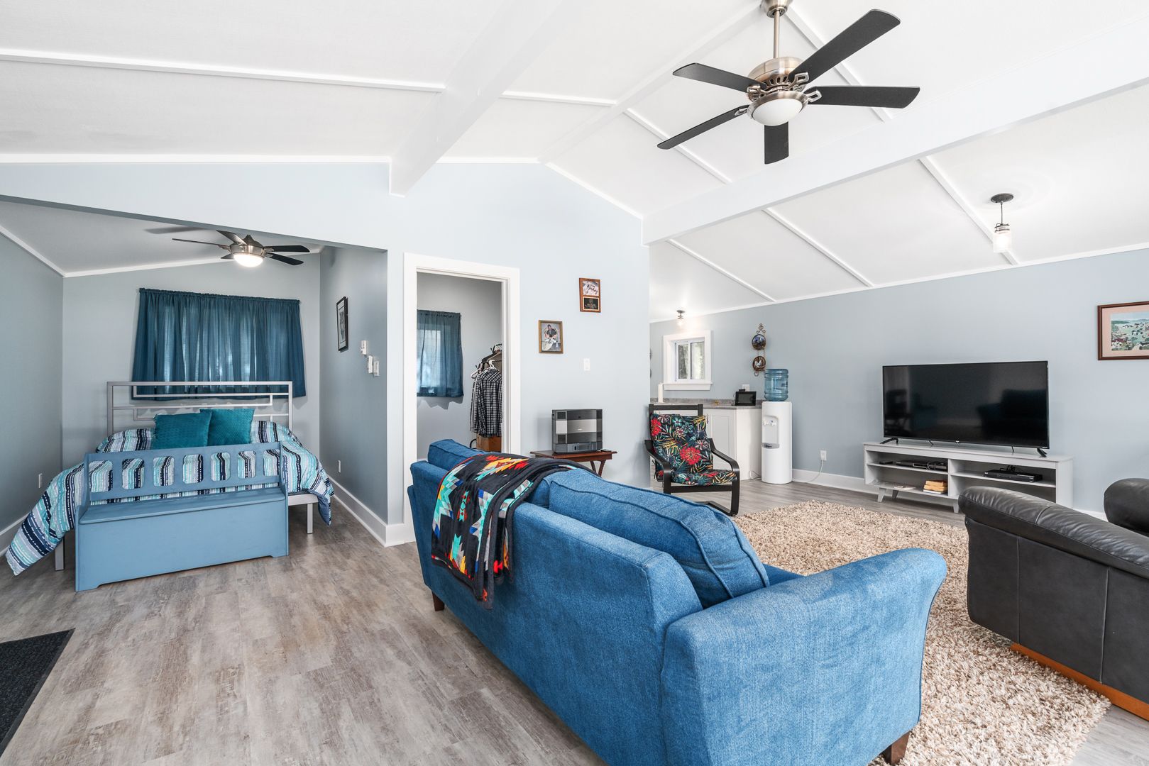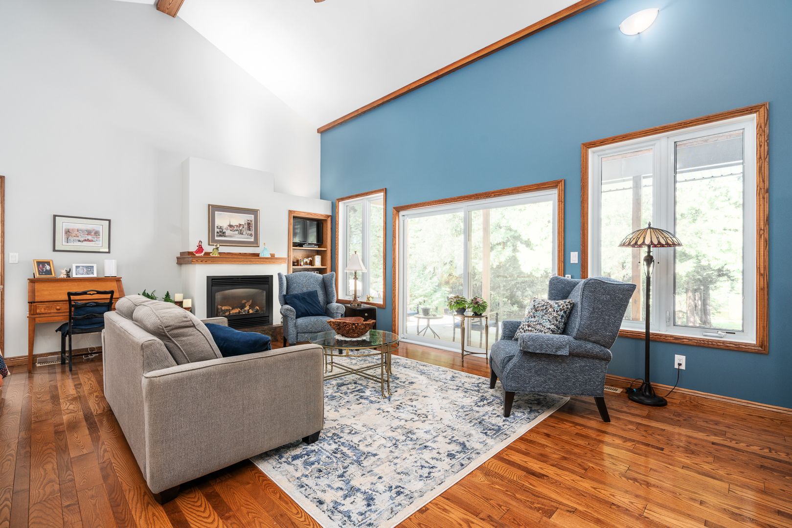 • Bright living room with high vaulted ceilings for an open feel.