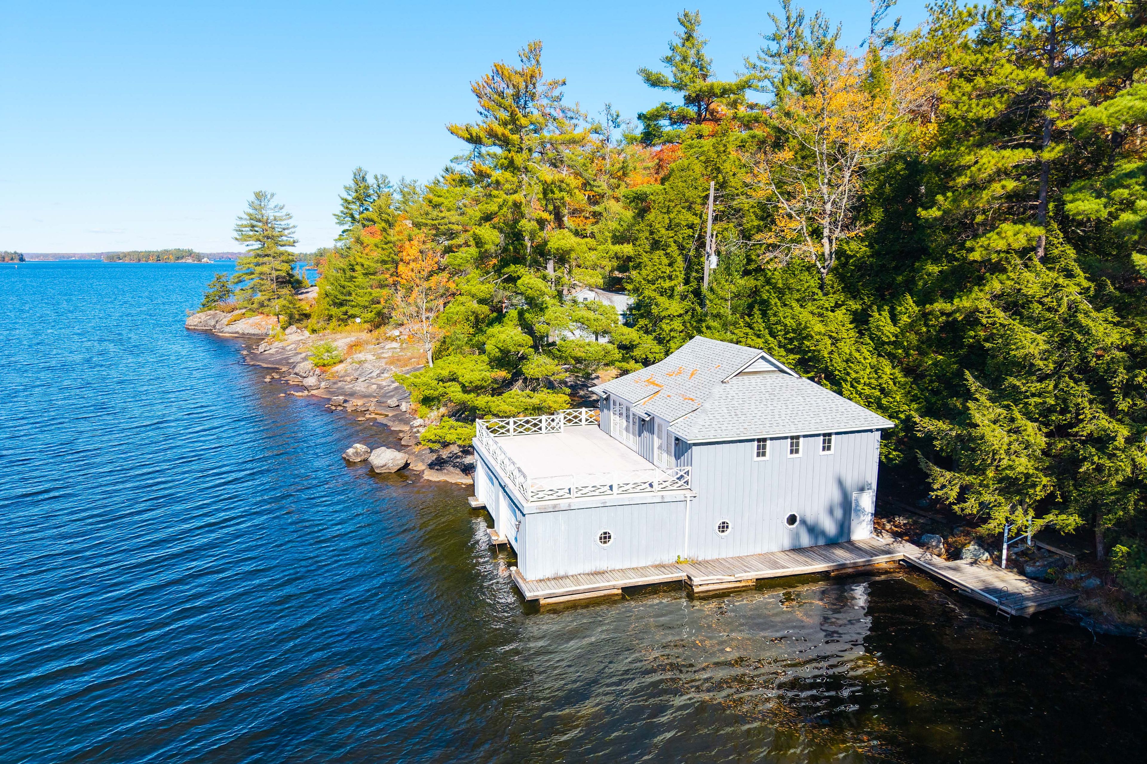 Discover 1076 birch point road - a rare and versatile opportunity on lake muskoka offering 390 feet of pristine shoreline and nearly 3 acres of privacy, with iconic northwest views and all-day sun. This timeless setting features granite outcroppings, gently sloping terrain, and a protected bay that's ideal for swimming, paddling, or relaxing at the water's edge. The charming 4-bedroom, 4-bathroom cottage blends vintage character with functionality - perfect for immediate enjoyment or as the foundation for your future vision. A standout feature is the two-storey boathouse with long slips, a spacious rooftop patio, and roughed-in living space above. Zoning approval is in place for a new 1,000 sq. Ft. Boathouse with living quarters - a significant and increasingly rare asset on lake muskoka. Located just five minutes from gravenhurst, this legacy-caliber property offers the perfect blend of natural beauty, privacy, and long-term potential in one of muskoka's most prestigious lakefront communities.