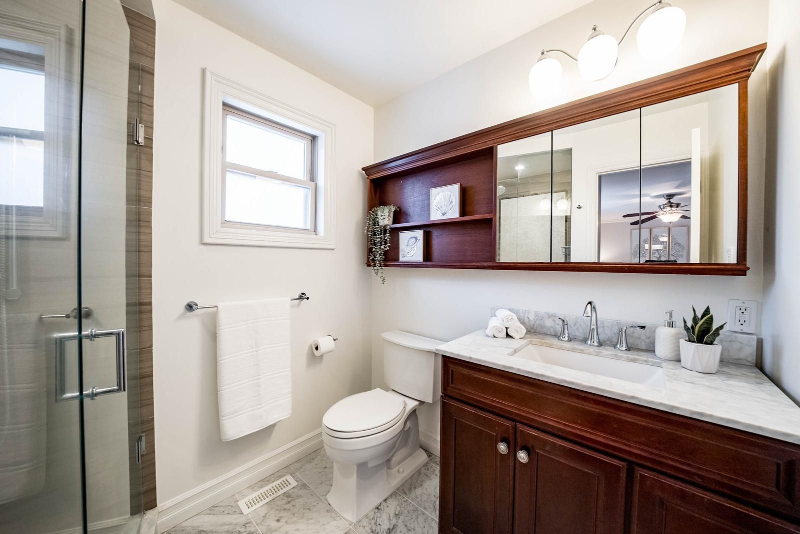 Welcome to 1 alderwood street, an elegant, turn-key detached home set within one of stouffville's most sought-after mature neighbourhoods. This beautifully maintained home features 4 bedrooms, 4 bathrooms, a finished basement, and a private backyard retreat with the added benefit of no sidewalk, delivering a lifestyle of comfort and sophistication. The main level is thoughtfully designed with formal living and dining spaces that feel both open and inviting. At the heart of the home, the renovated kitchen showcases quartz countertops, a substantial centre island with soft light-blue cabinetry, and premium appliances including miele, bosch, and wolf. The kitchen flows seamlessly into the family room, where a refined fireplace creates a warm focal point. Hardwood flooring throughout and a discreet 2-piece powder room complete the main floor. Upstairs, the primary suite offers a serene retreat complete with a 3-piece ensuite and his-and-hers closets, while three additional generously sized bedrooms share a well-appointed 4-piece bathroom. The finished basement enhances the home's versatility, featuring a stylish lounge, space for a home office, fitness area, 2-piece bathroom, laundry, and ample storage. Outdoors, the landscaped backyard is a true private oasis, featuring a custom-designed in-ground heated pool with a striking stone waterfall, surrounded by a slate patio that extends seamlessly to the dining area-ideal for entertaining. A covered porch with an adjoining deck further enhances the outdoor living experience, creating inviting spaces for relaxation and gatherings. Ideally located near top-rated schools, parks, shopping, and amenities, this property presents a rare opportunity to own a refined family home in a premier stouffville location.