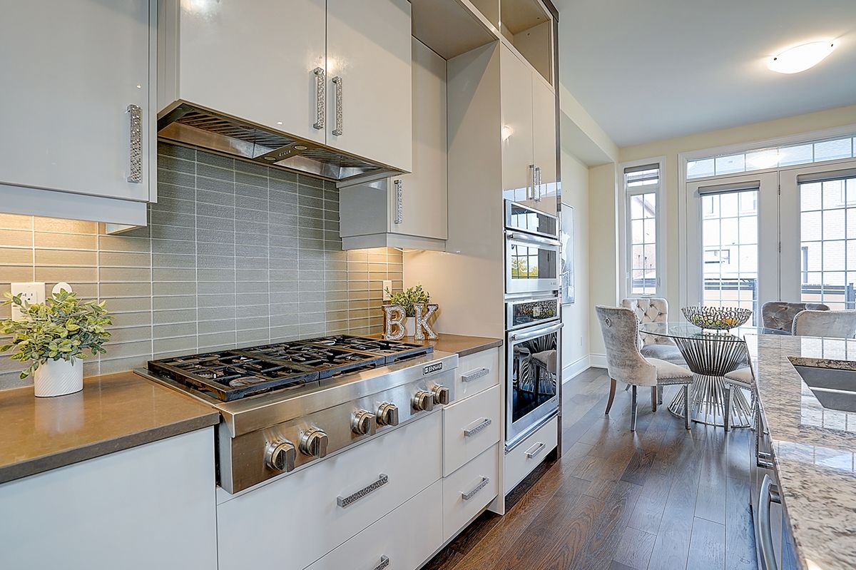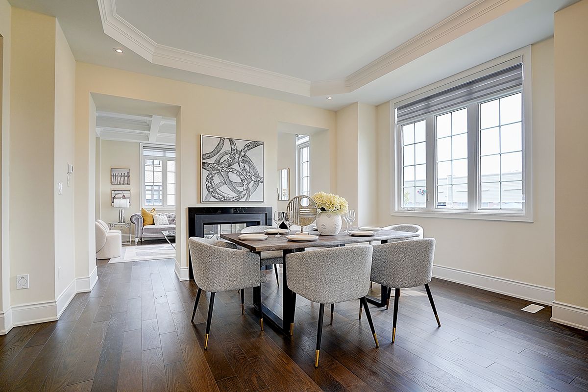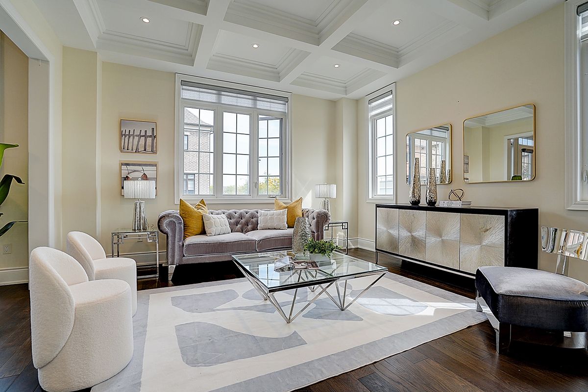 6-year new detached home, over 4000 sqf total living space (3036 sqf above ground), 4 spacious bedrooms on 2nd floor plus a 5th bedroom in basement; 3 full washrooms on 2nd floor, plus 4th 2pc washroom on main floor and 5th 3pc washroom in basement; premium corner lot in one of patterson's most coveted neighborhoods. Big windows facing east and south allow plenty of natural sunlight all day long. A grand foyer with double-entry doors and sleek porcelain floors. 10-ft ceilings on the main floor, 9-ft ceilings on the 2nd floor. Office on the main floor impresses with soaring 11-ft ceilings, while the elegant living and dining room features a double-sided gas fireplace, creating a warm and inviting atmosphere. Modern custom kitchen, equipped with built-in jenn air appliance, stone countertop, a center island with breakfast bar, and a spacious eat-in area that opens to the backyard. An adjoining family room with a coffered ceiling and southeast exposure, enhanced by pot lights and rich 5" engineered hardwood floors throughout. Central vacuum. Master bedroom a primary retreat with a 5-piece spa-inspired ensuite featuring an oversized seamless glass shower, double vanities, and sleek porcelain finishes. Convenient 2nd floor laundry adds modern practicality. The finished basement extends the living space with a large recreation room, a 5th bedroom, and a sound-proofed karaoke room, ideal for family fun and entertainment. Full house front and back with security cameras. Located steps from parks, scenic trails, boutique plazas, and directly across from eagles nest golf club. 5 minutes to maple go (ideal for commuters), mackenzie health hospital, st. Theresa of lisieux catholic hs, alexander mackenzie hs, and major highways.