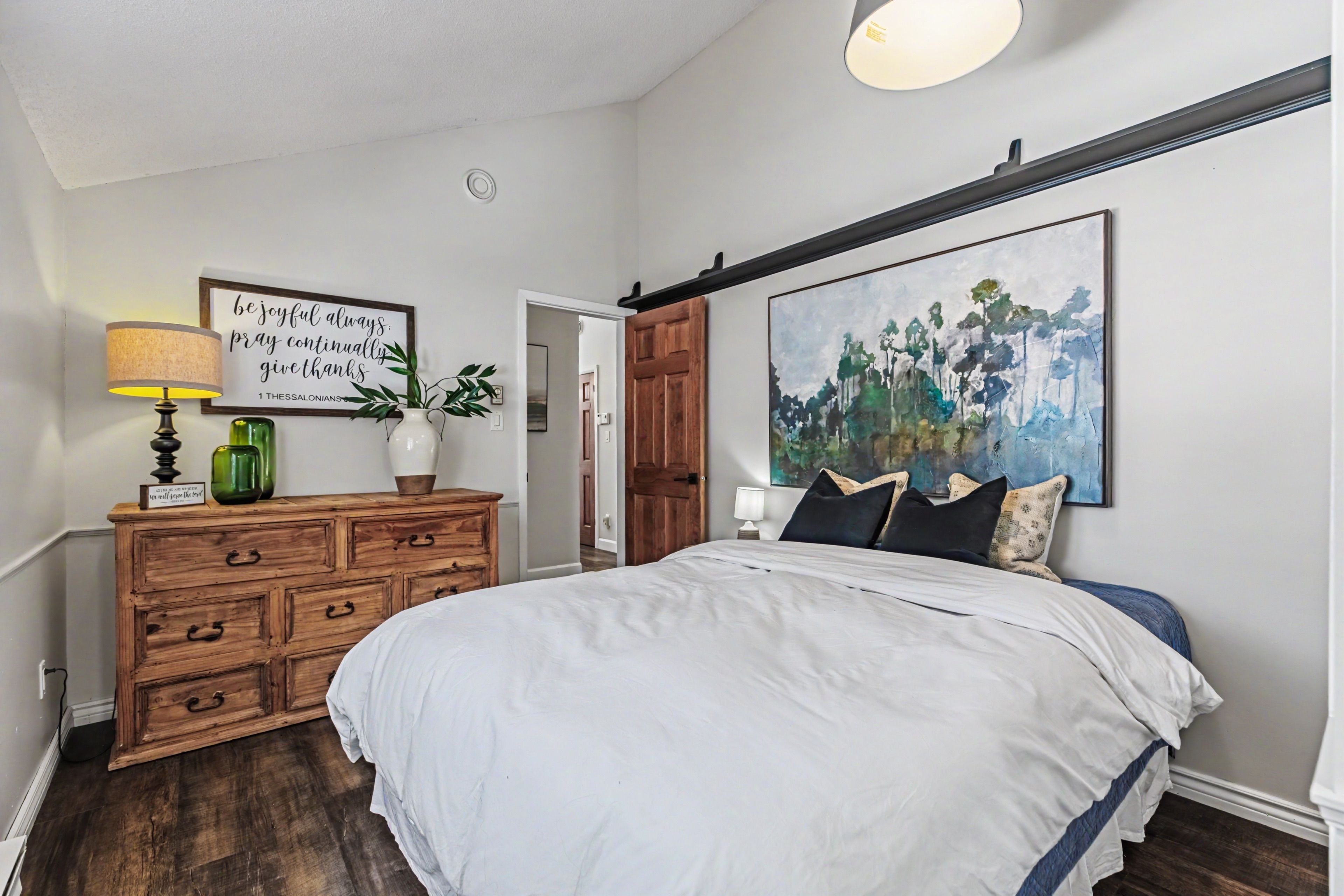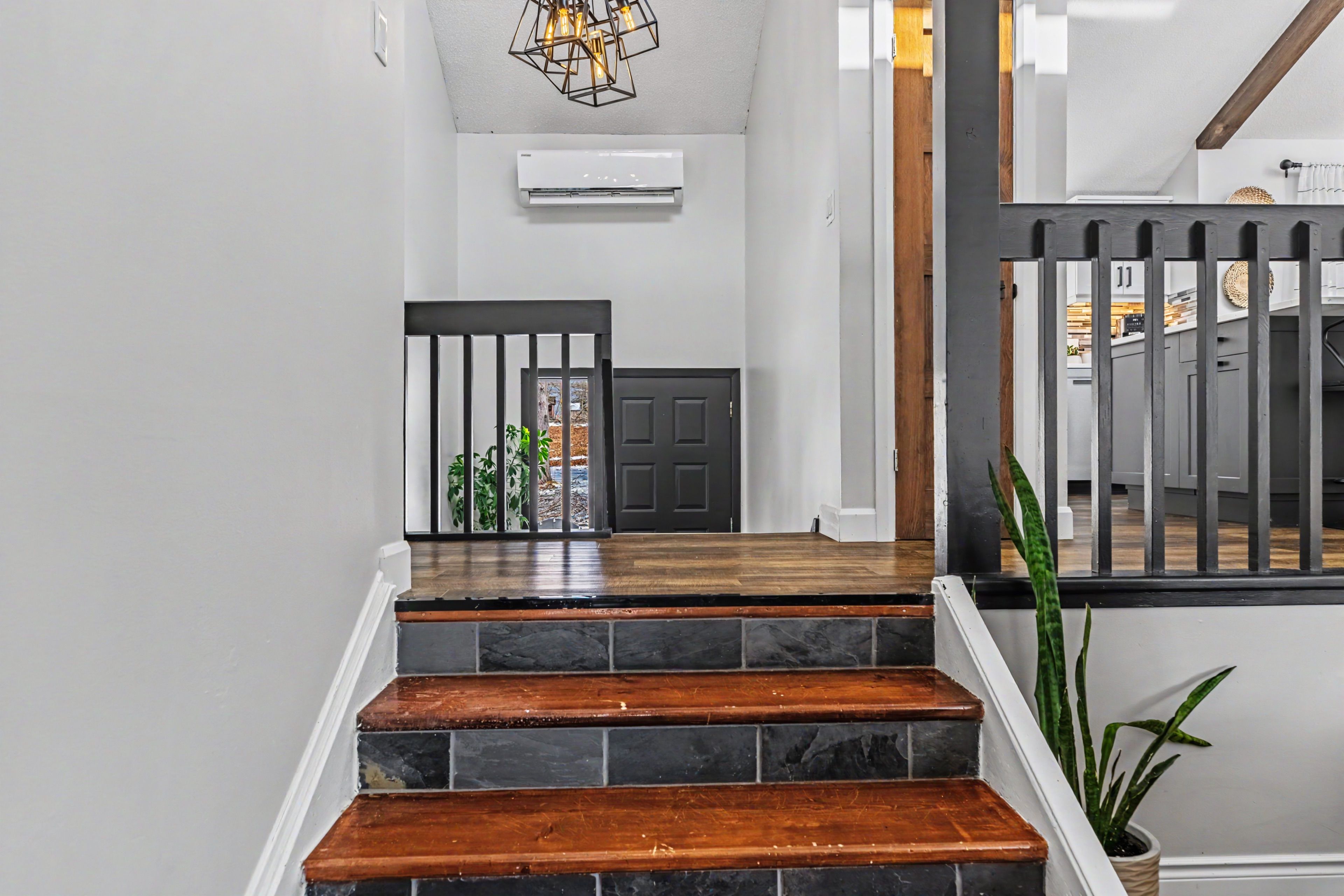 Tucked away on a quiet street in a sought after markdale neighbourhood, this meticulously maintained home offers a unique layout, bright living spaces, and comfortable indoor and outdoor living. The main level features an open-concept kitchen, dining, and living area designed for everyday living and easy entertaining. The kitchen includes a large island and modern finishes, while generous windows fill the space with natural light. The living room is enhanced by a vaulted ceiling that adds openness and character to the main living area. From the dining area, step out to the spacious back deck overlooking the backyard, an ideal setting for outdoor dining, relaxing evenings, or gathering with family and friends. The main floor includes three bedrooms, including a primary bedroom with walkout access to a private balcony, providing a peaceful spot to enjoy your morning coffee or unwind at the end of the day. The lower level offers additional living space with a cozy family room featuring a gas stove, a versatile fourth bedroom or office, an updated bathroom, and a laundry area. Interior access to the attached garage and additional storage space adds convenience to daily living. Outside, the property features attractive landscaping, a generous yard, and inviting outdoor spaces to enjoy throughout the seasons. Additional highlights include an updated kitchen, updated bathrooms, metal roof, owned water softener, a newer ductless heat pump for efficient heating and cooling, a single attached garage with ev charging capability, and a concrete driveway with parking for multiple vehicles. Located within walking distance to shops and everyday amenities, and close to local trails, golf, and hospital services, this home offers comfortable living in the heart of markdale.