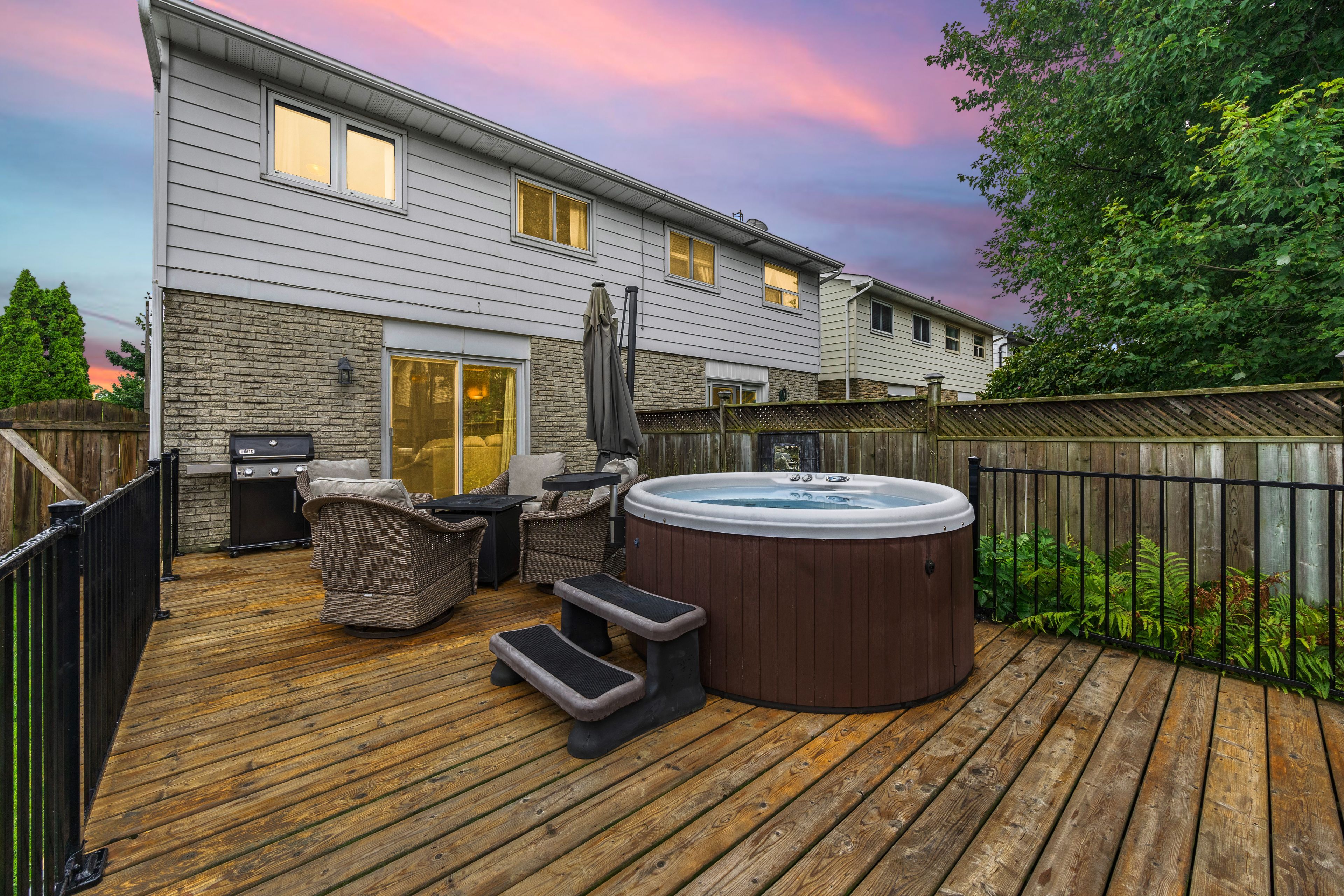 Welcome to this turn key semi-detached home in the heart of waterdown, offering comfort, convenience, and a great outdoor lifestyle. Situated on a large corner lot just minutes to major highways, you'll enjoy easy access to schools, shopping, restaurants, and all your favourite local amenities. A handy plaza is also located right across the street for added convenience. Inside, you'll find 3 bedrooms, 1. 5 bathrooms, and a thoughtful layout. The main floor features a bright living room with a cozy gas fireplace, hardwood floors, and a walkout to the back deck. The kitchen boasts granite countertops, a gas range, and a combined dining area, making it ideal for family meals or entertaining. Upstairs, hardwood floors continue throughout the spacious bedrooms, complemented by an updated 4-piece bathroom. The finished basement provides a versatile rec room perfect for a playroom, home office, or media space. Step outside and enjoy the oversized fenced yard with plenty of room for kids or pets to play. Relax on the deck, unwind in the hot tub, or take advantage of the large side yard with potential to expand the fence for added privacy. This home is close to schools, transit, and is only a short drive to lake ontario's beaches and parks. A fantastic opportunity to own a move-in ready home in one of waterdown's most desirable locations.
