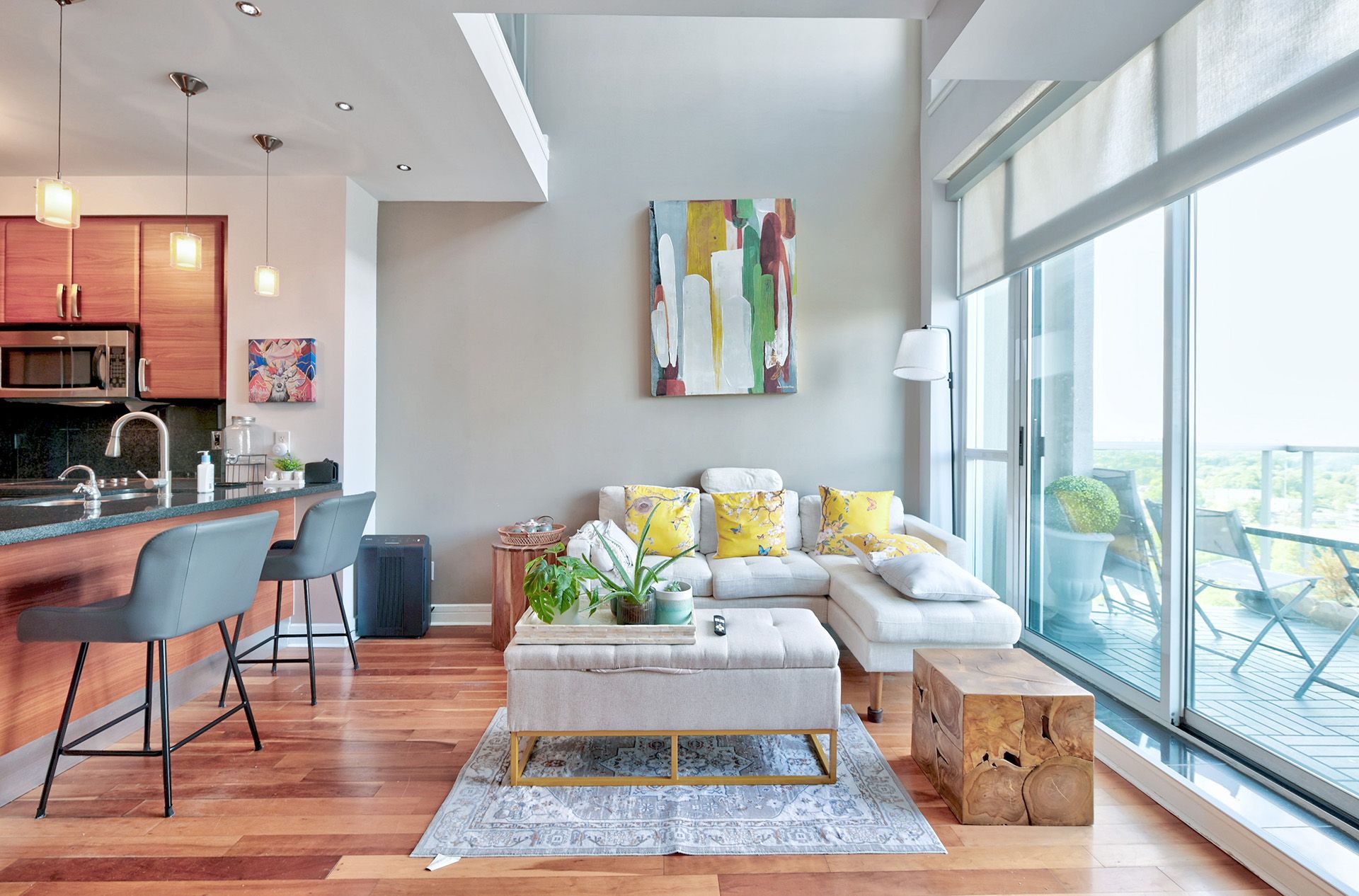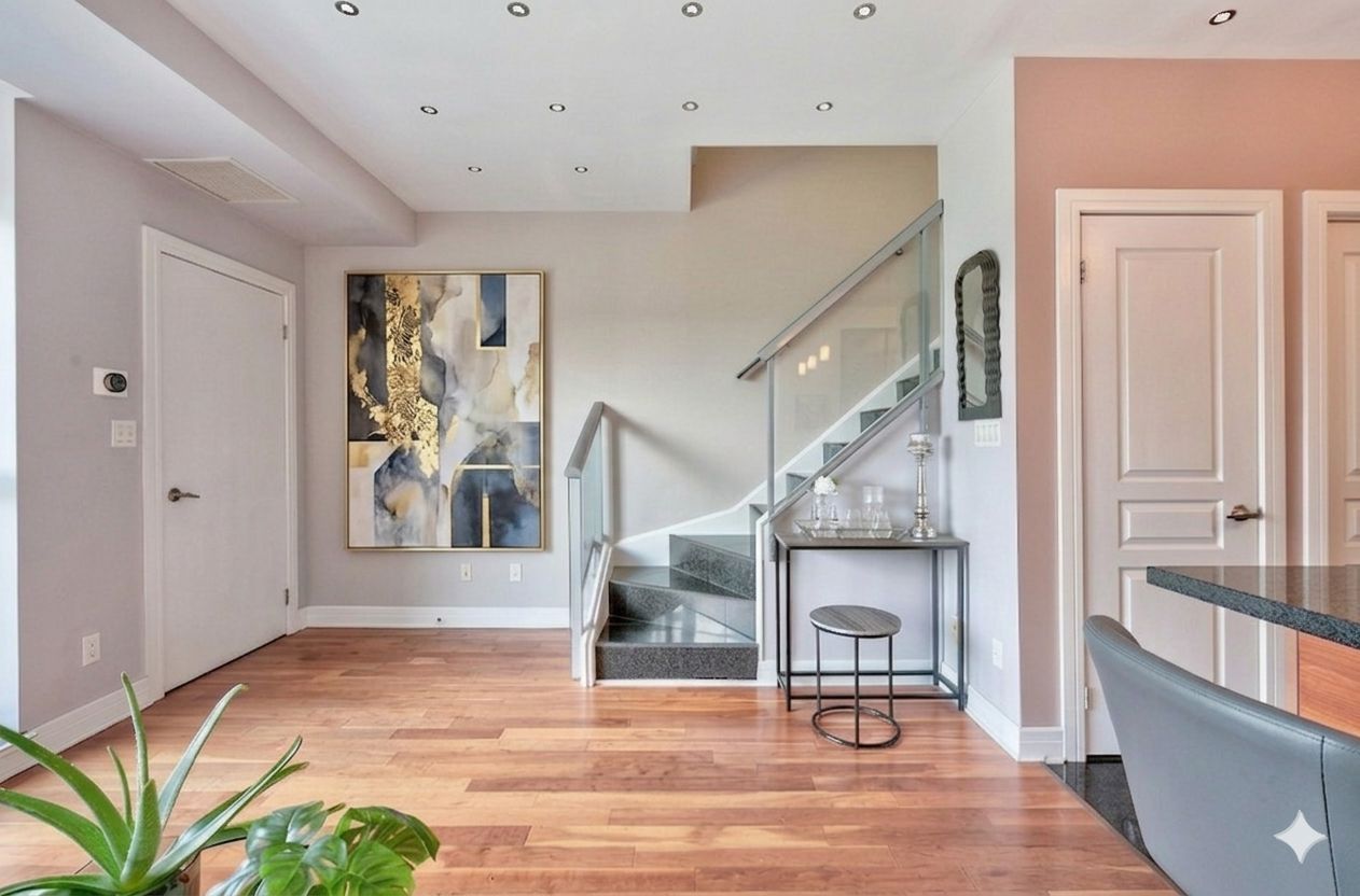 • Rich hardwood floors and floor-to-ceiling windows throughout.