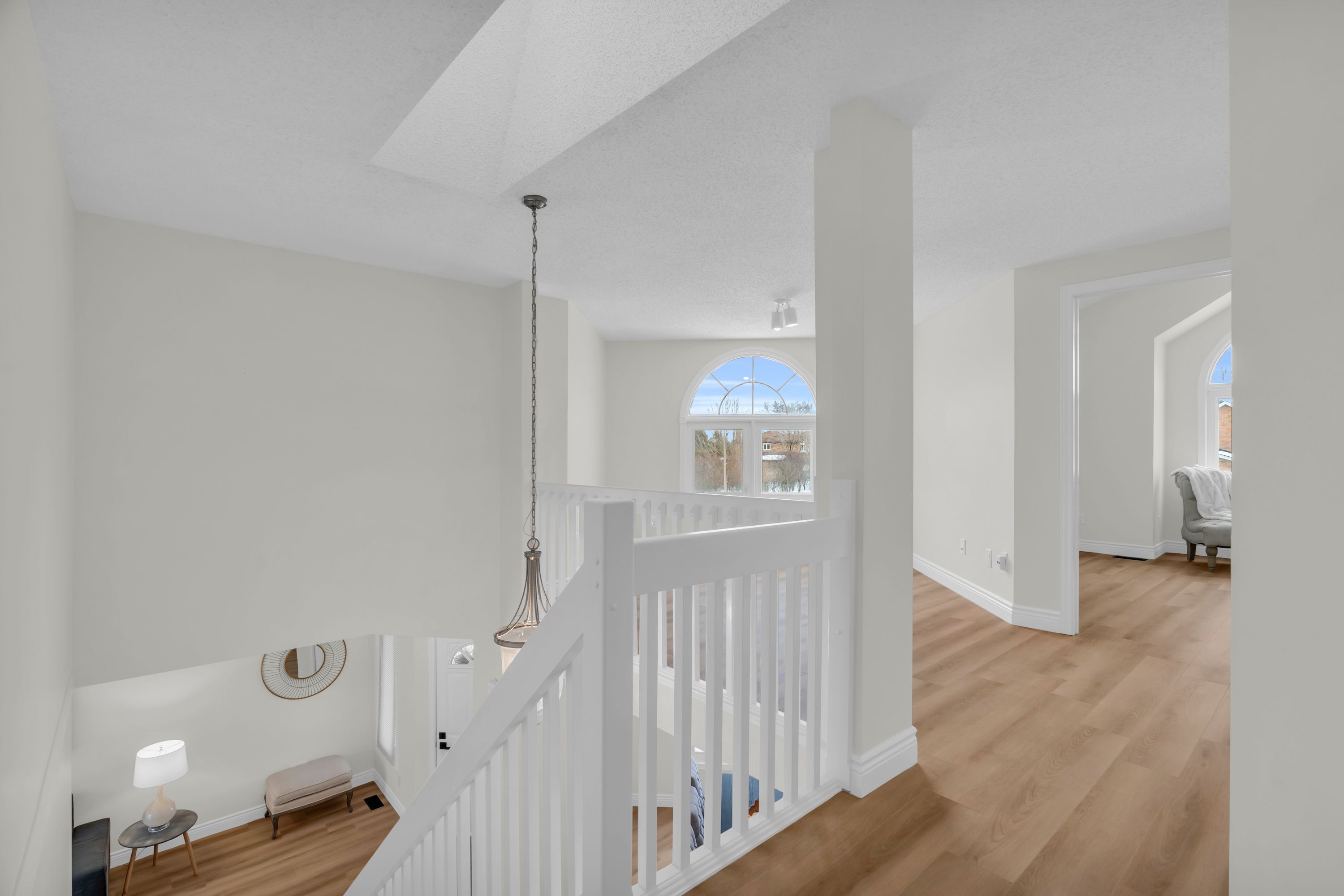 Welcome to 1 balfour court, a beautifully updated home offering over 2,072 sq ft of living space, ideally situated on a premium corner lot in a quiet cul-de-sac in guelph's sought-after kortright east neighbourhood. This spacious property features 3 generous bedrooms on the upper level, including an extended area off the primary bedroom that is perfect for a home office, nursery, or private retreat. The fully legal 2-bedroom basement apartment offers a separate entrance, full kitchen, living space, and excellent flexibility for multigenerational living or valuable rental income. The home has been thoughtfully refreshed with brand new flooring throughout and freshly painted from top to bottom, creating a bright, modern, and move-in ready feel. Enjoy the spacious backyard complete with a storage shed, along with ample parking for multiple vehicles. Located close to parks, schools, trails, the university of guelph, and everyday amenities, this versatile property presents an exceptional opportunity in one of guelph's most desirable family neighbourhoods.
