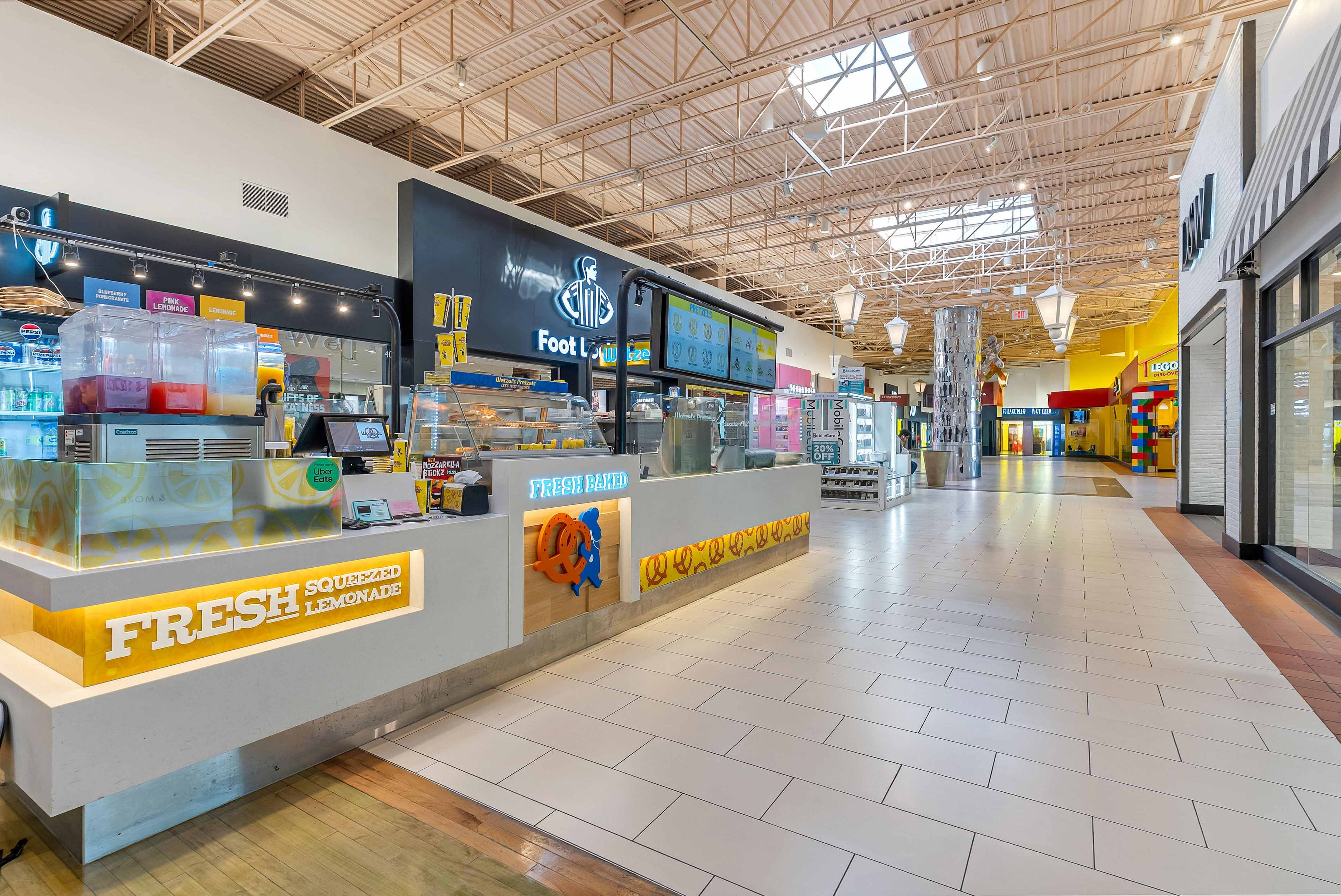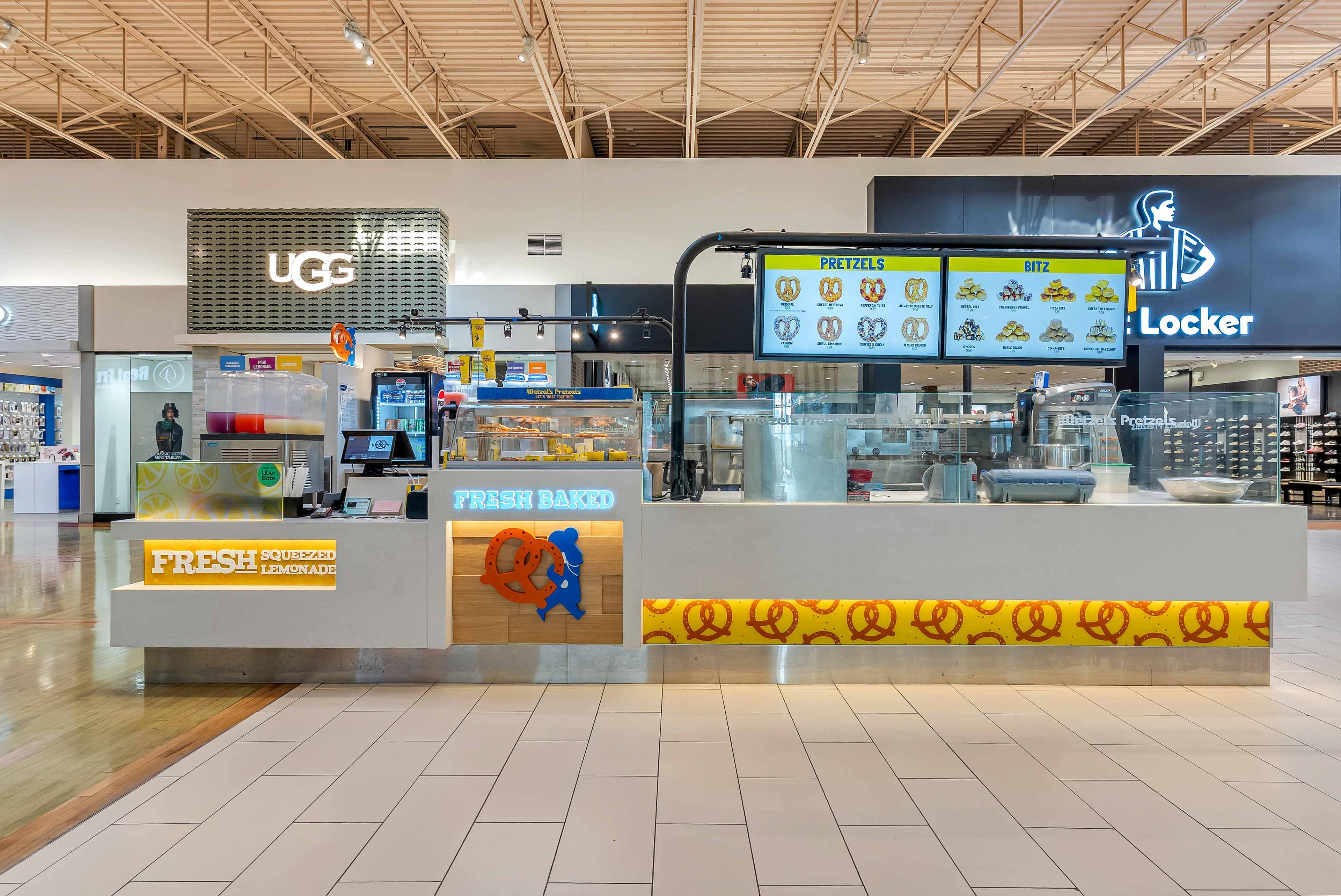 • Offers a variety of hand-rolled, freshly baked pretzel flavors.