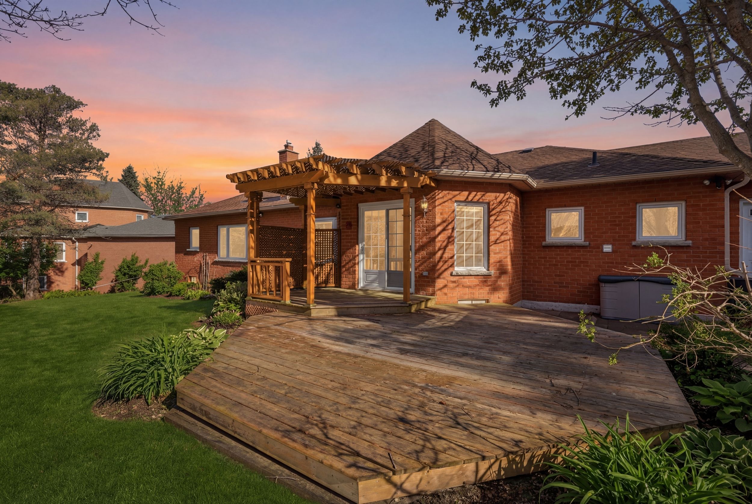 • Private backyard with patio and deck for summer gatherings.