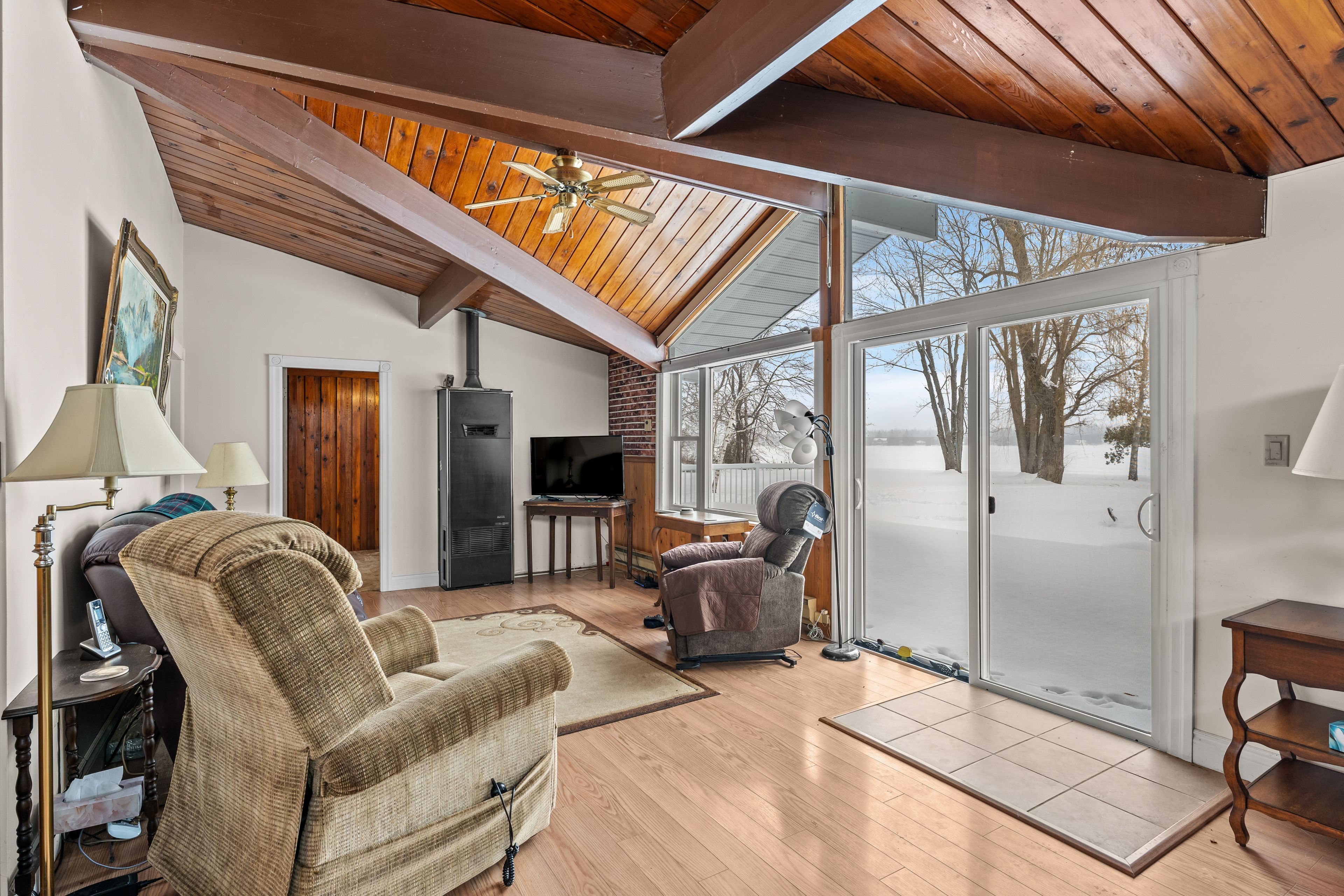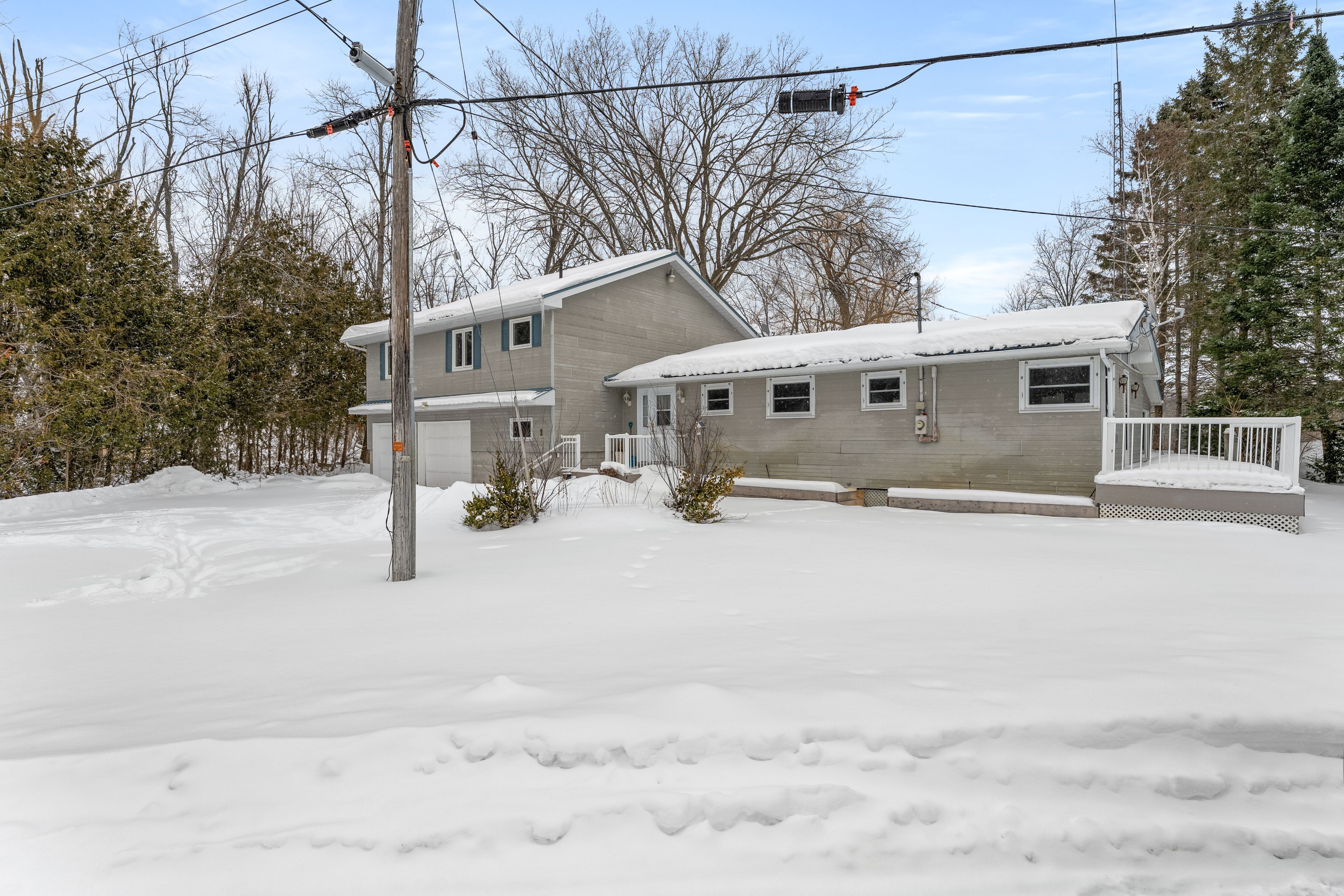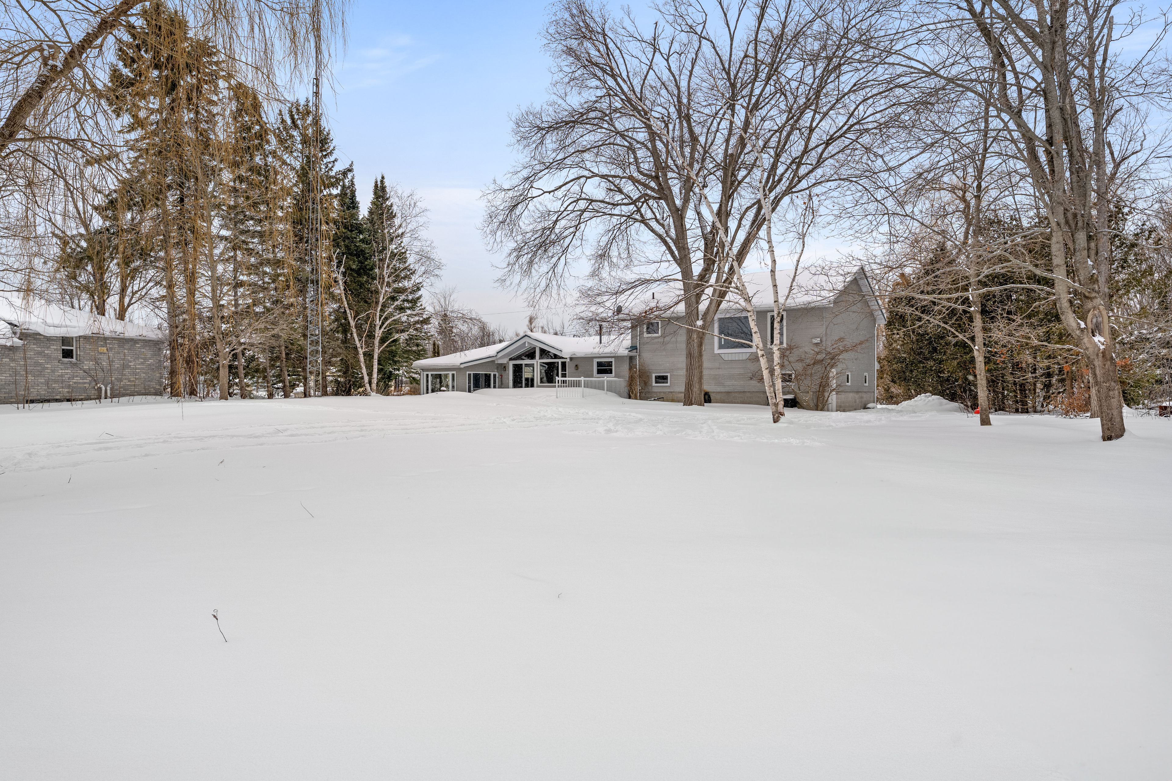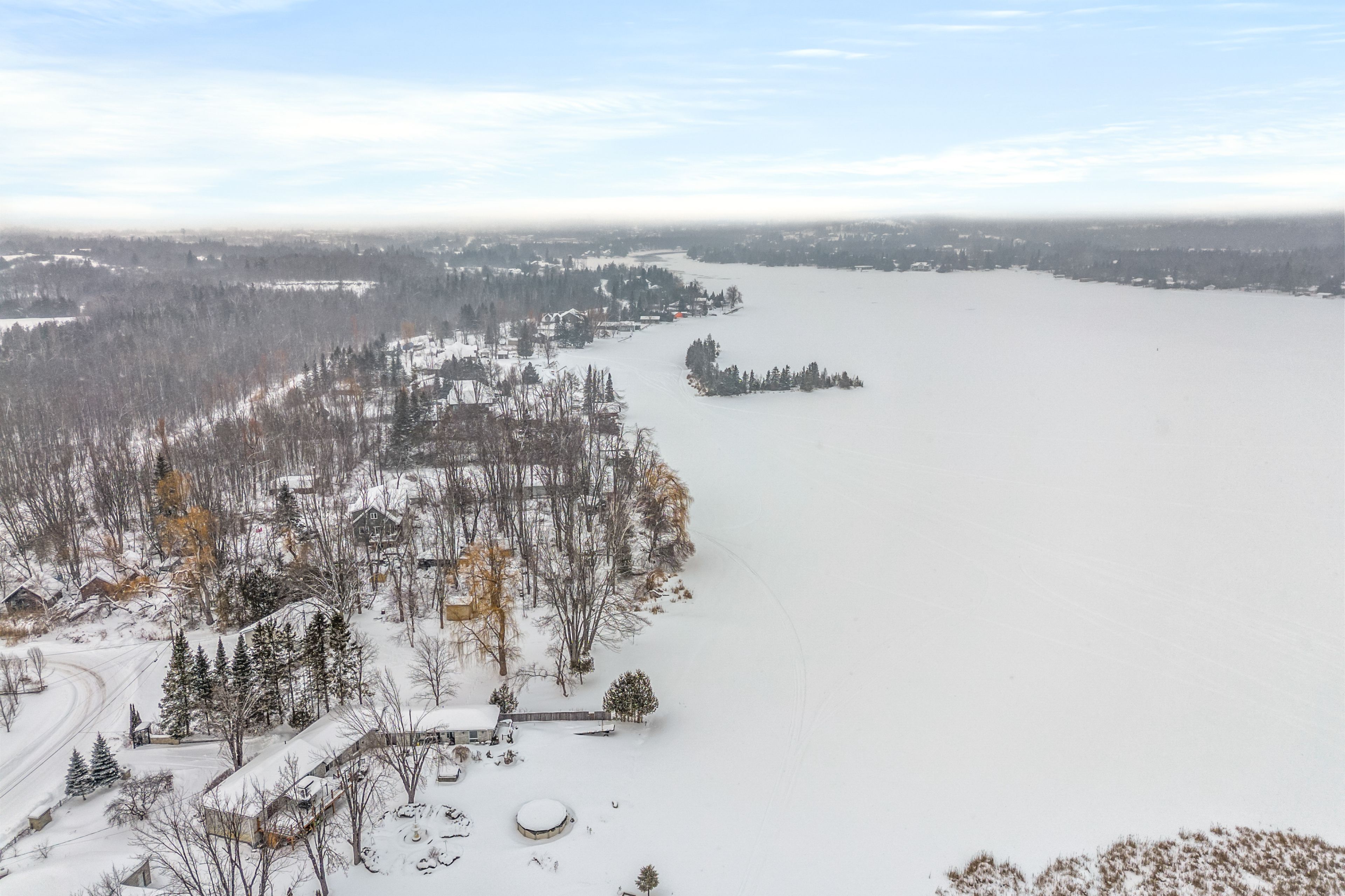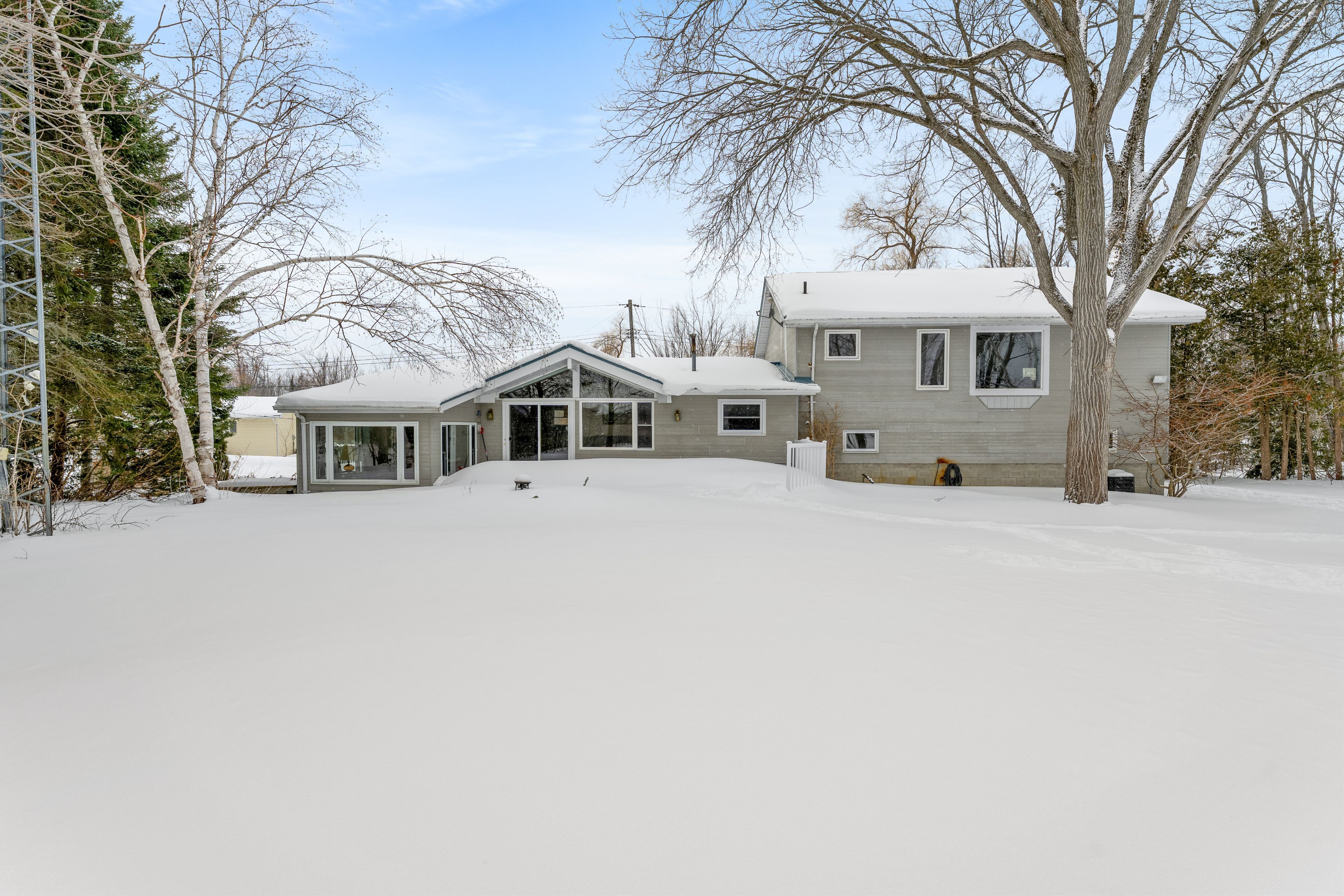 Affordable waterfront on sturgeon lake! This private property offers 160 feet of frontage on the beautiful shores of sturgeon lake, surrounded by tall trees and a serene, park-like setting. This four-season side-split home enjoys picturesque lake views and a peaceful natural environment. The open-concept main floor is designed to maximize the stunning water views, creating a bright and inviting living space. The home features four bedrooms, including an oversized primary suite overlooking the grounds and lake, complete with double closets and a 3-piece en-suite with jacuzzi tub. Additional bathrooms include a convenient 2-piece powder room on the main level and a fully updated 3-piece bath on the second floor. The newer sunroom offers the perfect place to relax and enjoy the privacy and surrounding nature year-round. The large double-car garage provides ample storage and workshop space with direct access into the home. Recent updates and features include a metal roof, updated windows throughout, multiple composite decks and porches, a four-season sunroom, forced-air wall furnace, and a sprinkler system to keep the grounds lush during the summer months. The natural shoreline provides an ideal habitat for wildlife and offers docking for fishing and waterfront enjoyment.