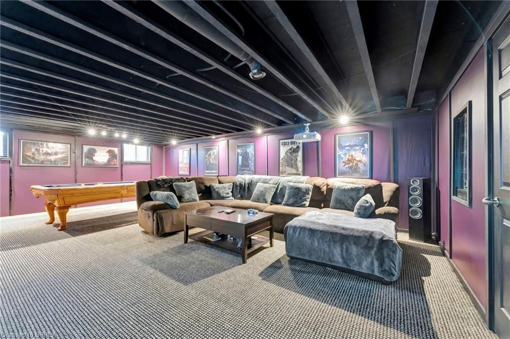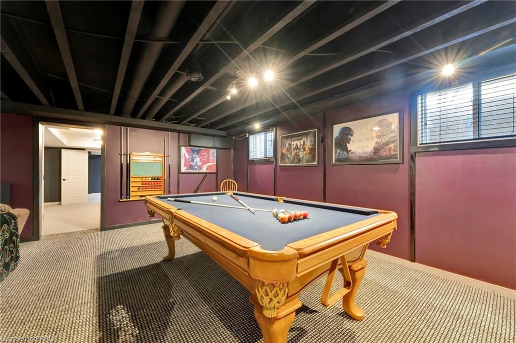 • Fully finished basement with a movie theatre, billiards room, and office.