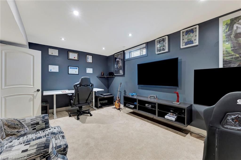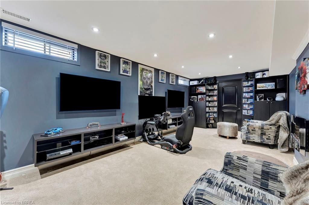 Welcome to 1 bowen lane, a show-stopping 4-bedroom, 3-bathroom home on a premium corner lot in the heart of west brant. Offering over 3,800 sq ft of finished living space, this beautifully maintained home delivers space, style, and standout features at every turn. The main level is designed for both everyday living and effortless entertaining, featuring a spacious kitchen with abundant counter space and a charming breakfast nook-perfect for morning routines or hosting lively gatherings. Two expansive living rooms, including one with a cozy fireplace, plus a formal dining area, provide exceptional flexibility for families and entertainers alike. Upstairs, you'll find three generously sized bedrooms, highlighted by a private primary retreat complete with a walk-in closet and ensuite bathroom. Downstairs, the fully finished basement truly elevates the home, offering a dedicated movie theatre, billiards room, exercise space, and office-your own all-in-one entertainment and work-from-home haven. Step outside to a beautifully landscaped, private backyard featuring a stamped concrete patio, vinyl fencing, and plenty of space to relax or entertain. An interlock double-wide driveway, ample storage throughout, and a heated garage add to the home's everyday convenience. Ideally located close to schools, parks, shopping, and dining, this exceptional property is move-in ready and not to be missed. Book your showing today-before someone else does.