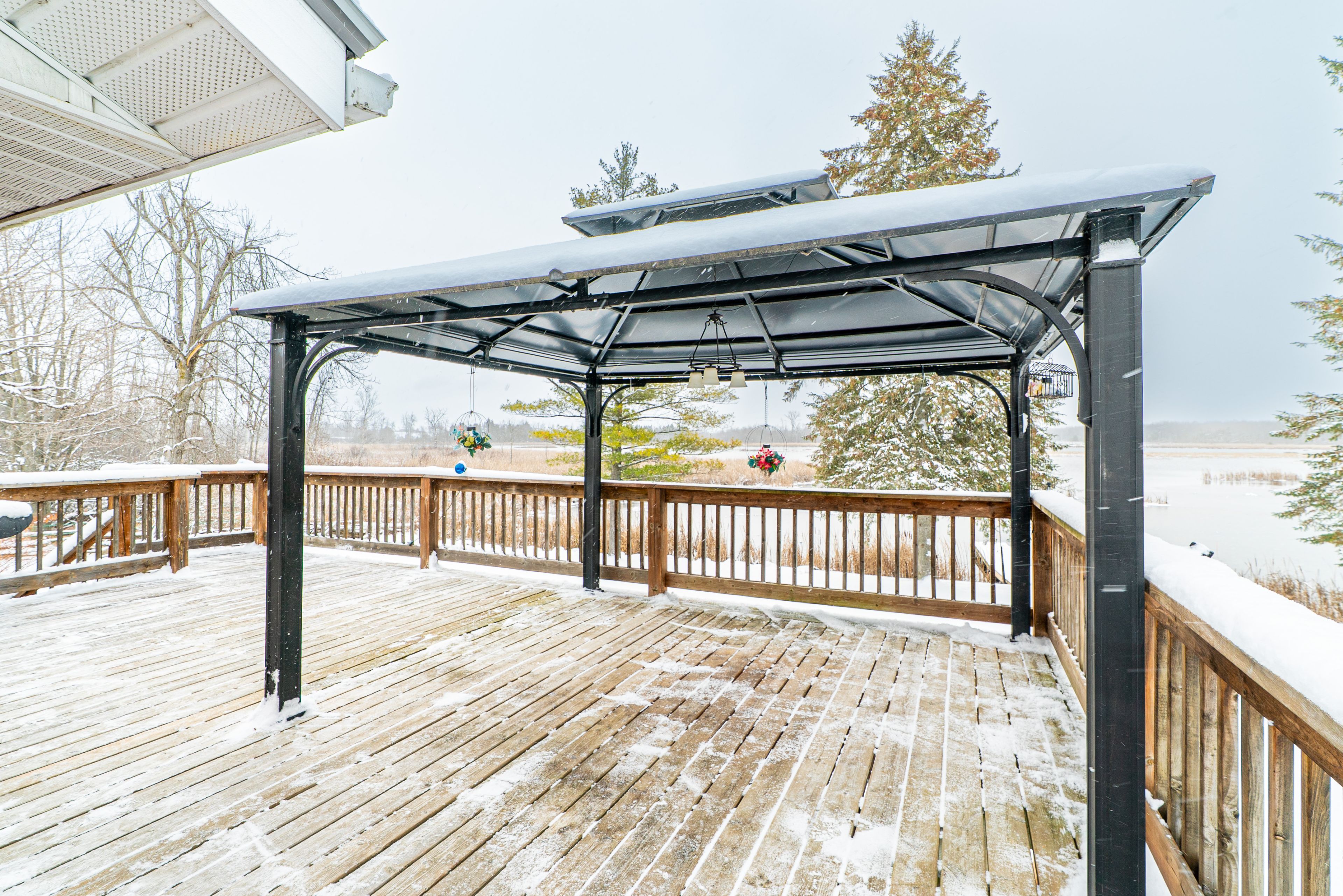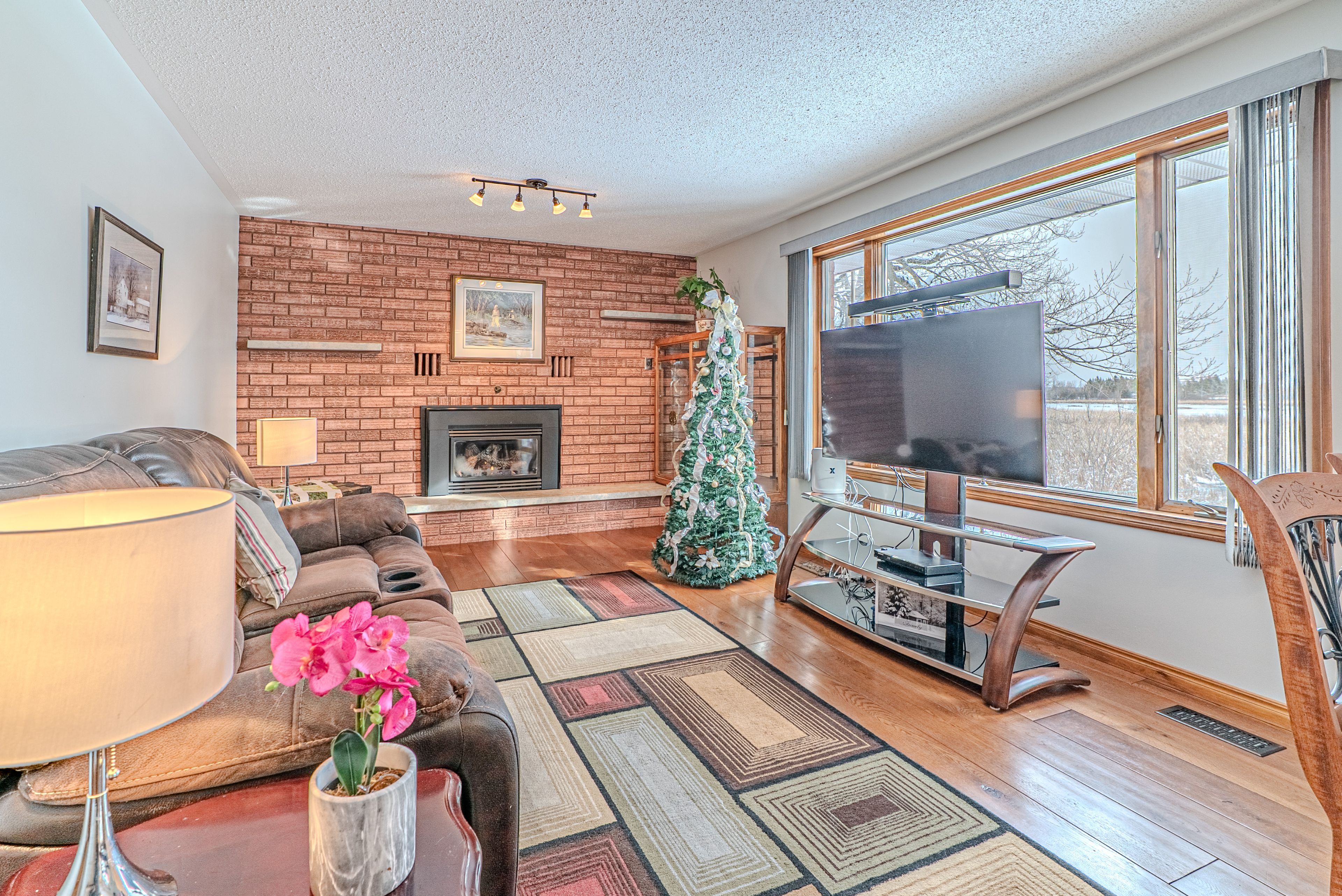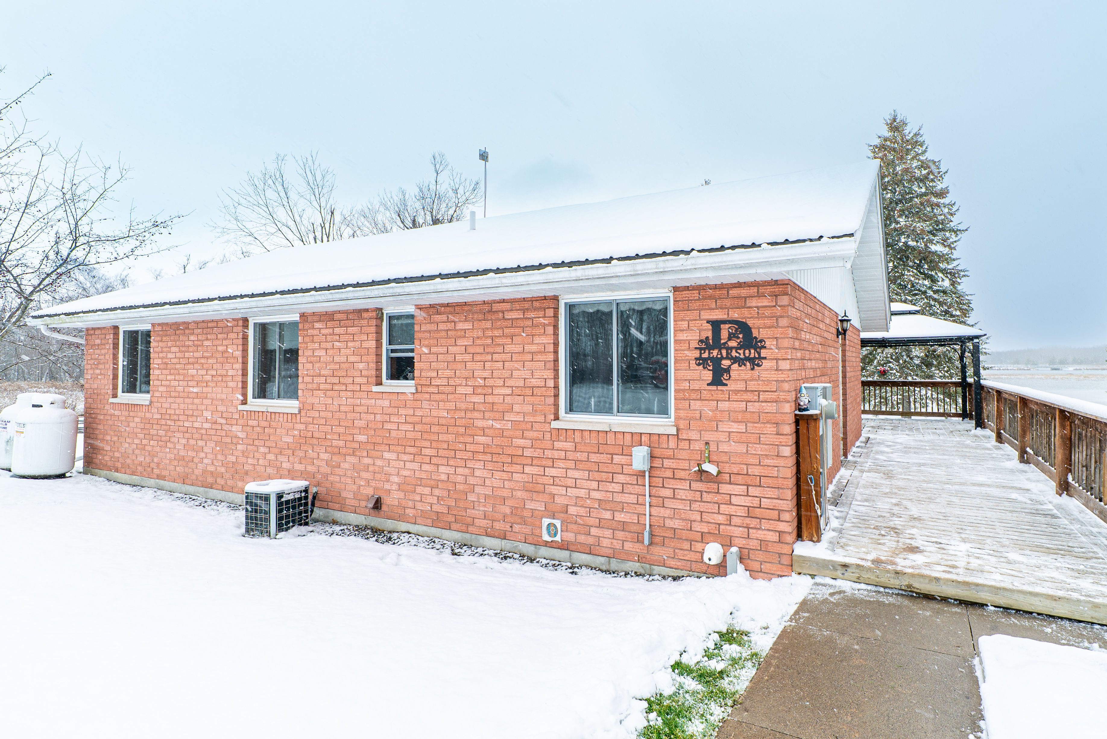Welcome to this charming bungalow set on 1. 17 acres with direct frontage on the scugog river, offering a peaceful setting. The main floor features a bright kitchen with hardwood floors and a walkout to the yard, a dining room with access to the deck, and a comfortable living room with a gas fireplace. Three bedrooms and a 4-piece bath complete the level. The fully finished walkout basement expands your living space with a cozy recreation room featuring a gas stove and bar area, an office, and a combined laundry/utility room. Outside the property impresses with a durable steel roof, a generac system installed in 2024, and a 35' x 60' quonset hut with a 14' door, ideal for storage, hobbies, or equipment. Enjoy direct waterfront access and the privacy of a spacious lot with still being minutes to lindsay and all amenities.