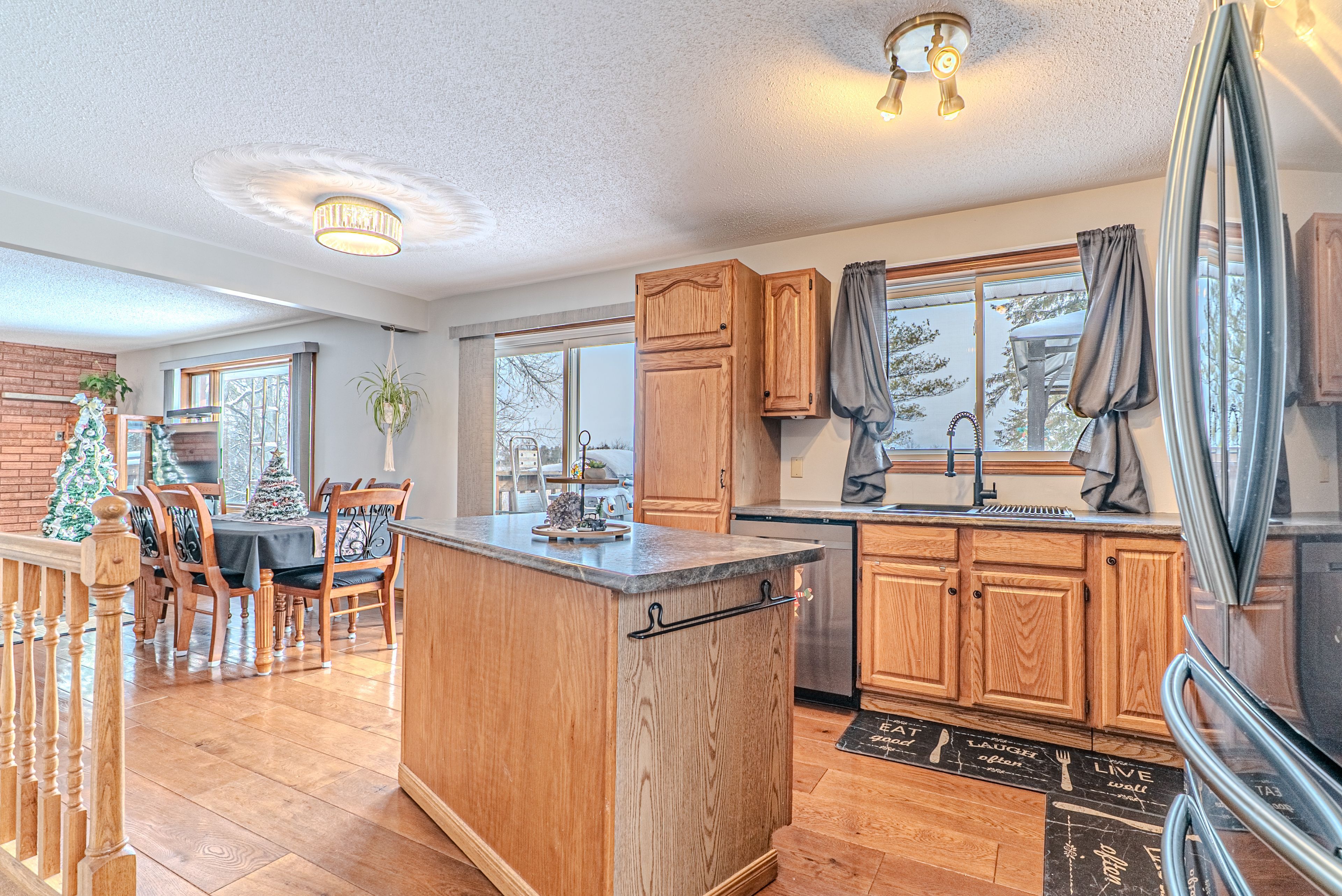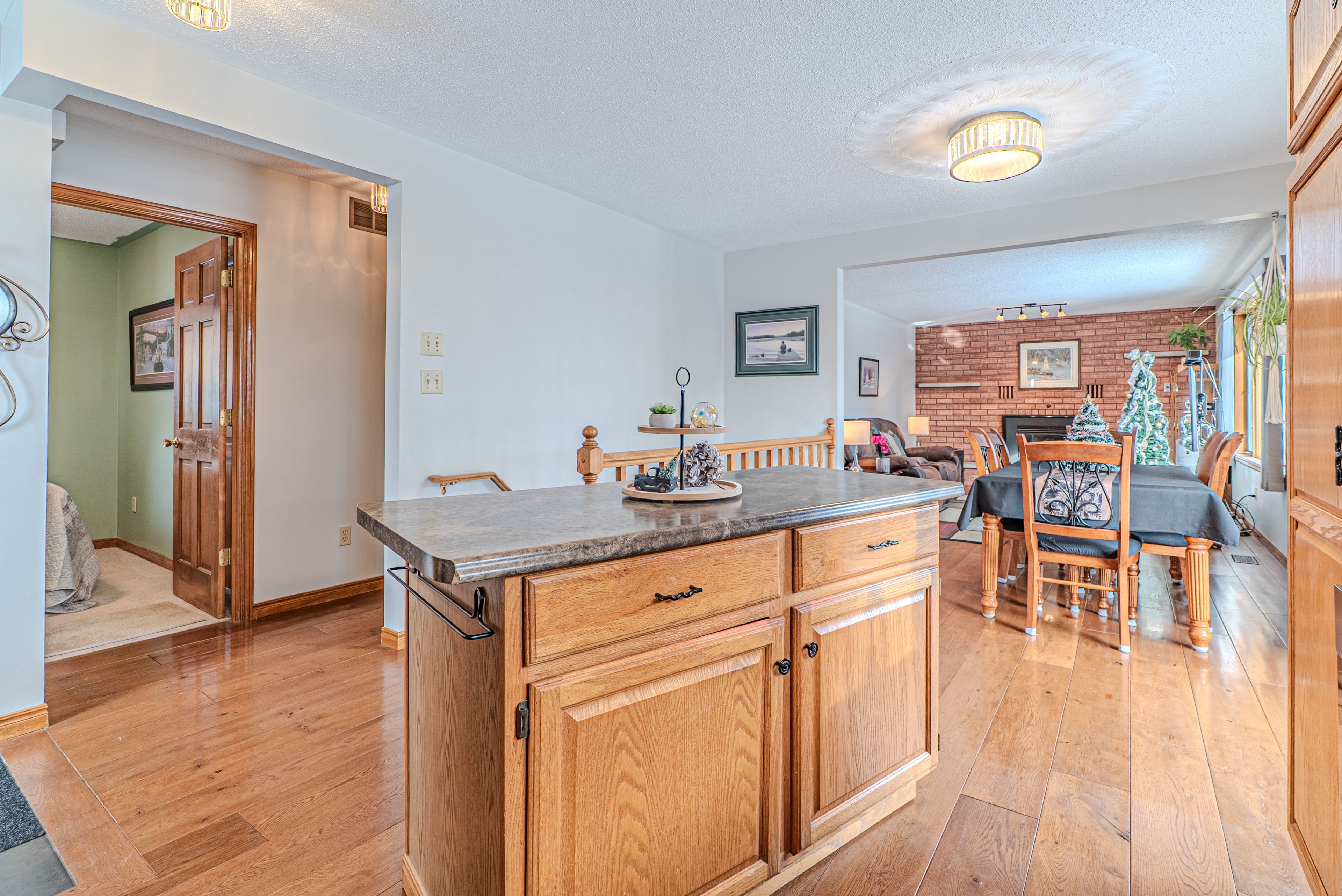 • Bright kitchen with hardwood floors and easy access to the yard.