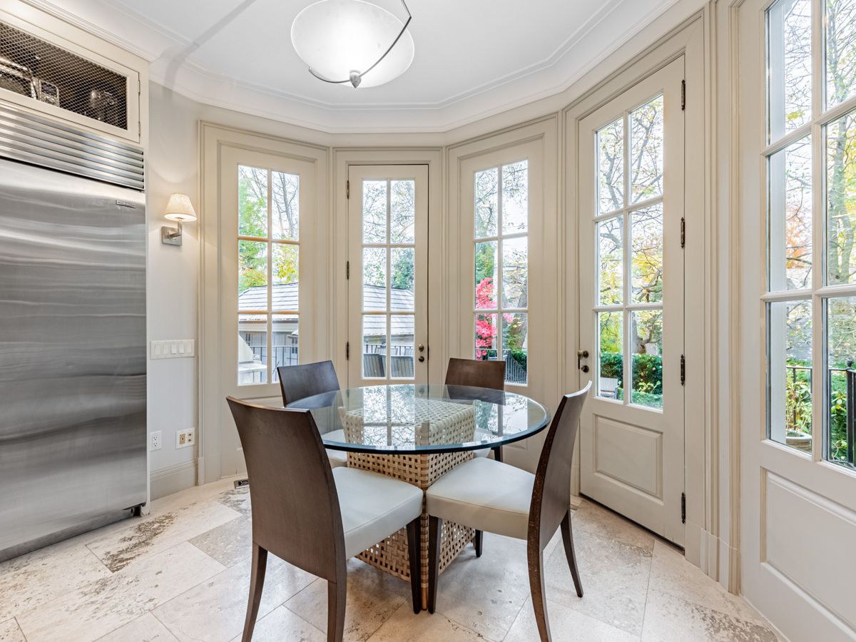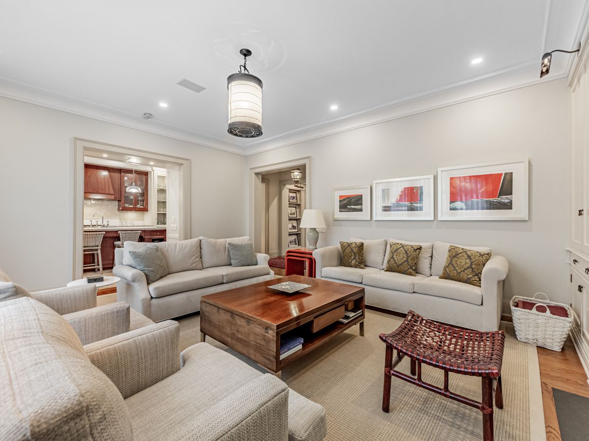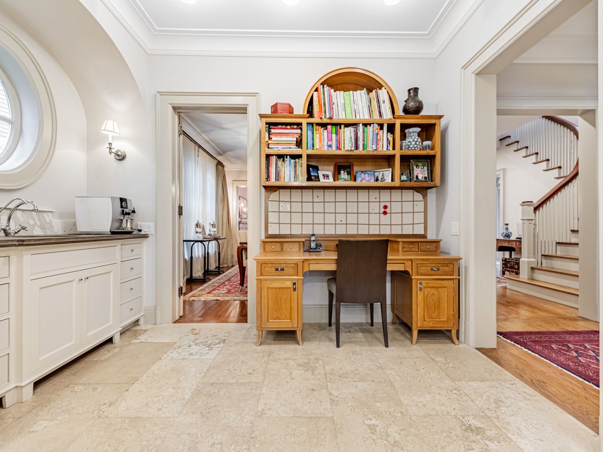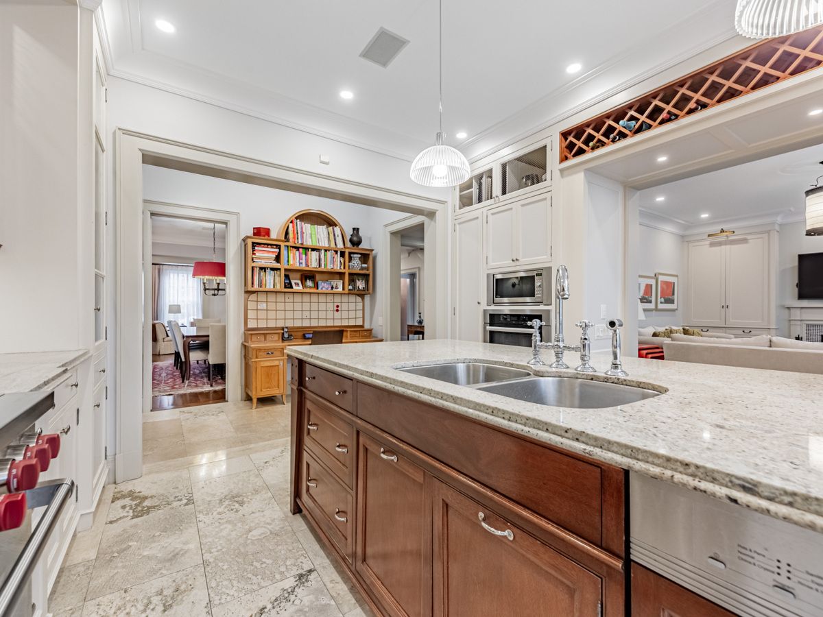 This exceptional residence, custom-designed in 2000 by the esteemed firm of katharine newman and peter cebulak, exemplifies luxurious living with the finest materials throughout. Lot pies out to 60 feet in rear. The home begins with a vestibule featuring an armoire closet and a chic two-piece powder room. The expansive layout flows effortlessly from the large foyer into spacious principal rooms, creating an airy and inviting atmosphere. The gourmet kitchen offers a coffee station, built-in desk, oversized island, and a bright breakfast room with french doors opening to an oversized terrace, perfect for al fresco dining or quiet relaxation. The adjacent family room features a fireplace, custom shelving, and walk-out access to the stone terrace. Separate living and dining rooms provide additional versatility. A mudroom with a separate entrance and ample closet space completes the main floor, which boasts 9'6" ceilings. Upstairs, the south-facing primary suite offers a walk-in closet and spa-like ensuite with dual vanities. Three additional generously sized bedrooms with abundant closet space and large windows, along with beautifully appointed bathrooms, complete this level. The lower level features heated floors, a large great room with built-in bookshelves and a wall-mounted tv, a gym/office with built-in desks, and a fifth bedroom with a large closet. A fully-finished laundry room with ample storage, a walk-in wine cellar, and an additional four-piece bath provide exceptional convenience. The spectacular stone terrace leads to professionally landscaped gardens with a stone bbq area. The detached stone garage, built in 2010, complements the homes exterior and features a heated driveway. Ideally located within walking distance to the best private schools (bss and ucc, )as well as shops, restaurants, transit, and places of worship. This home offers the perfect blend of luxury, convenience, and style!