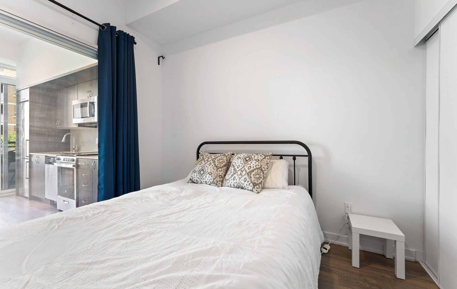• Modern 1-bedroom condo with 9-foot ceilings and stylish quartz countertops.