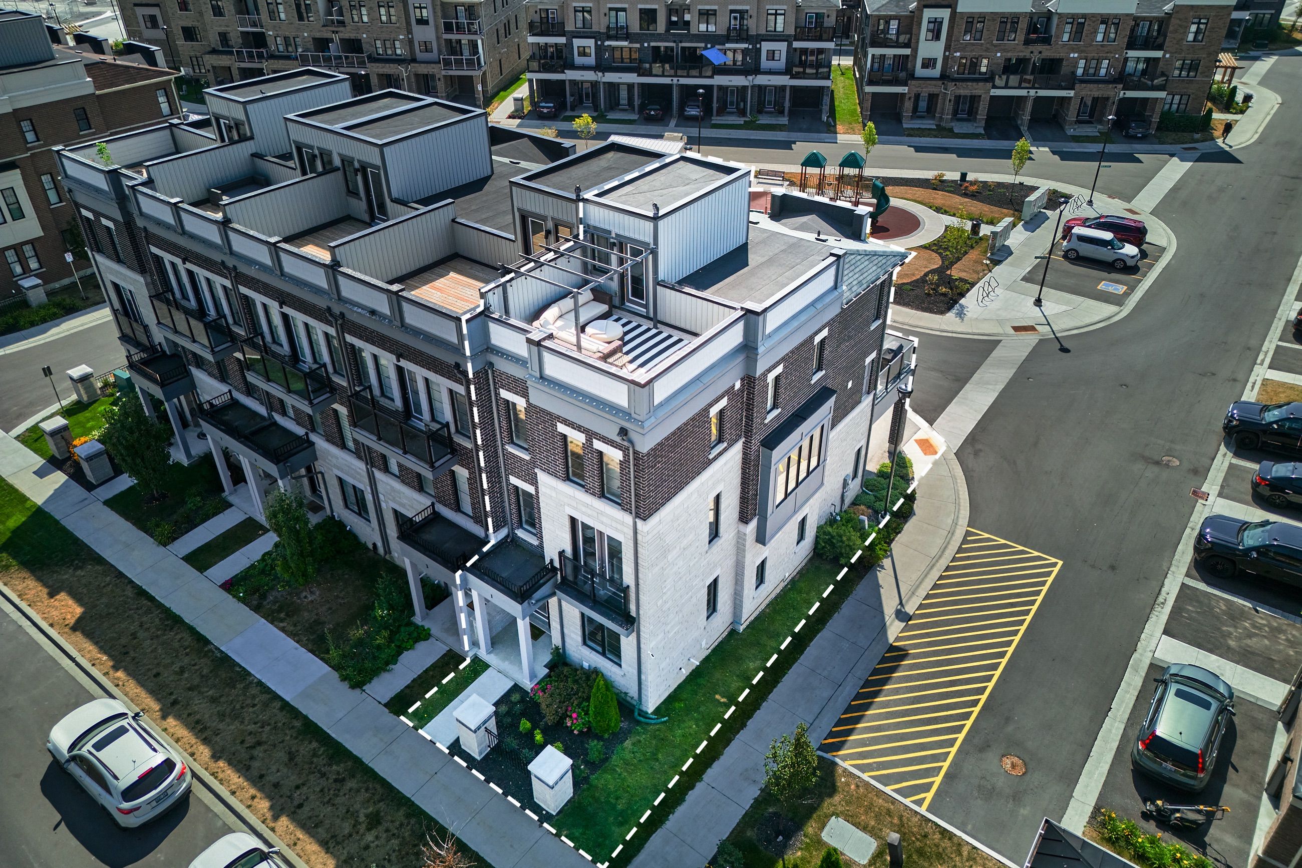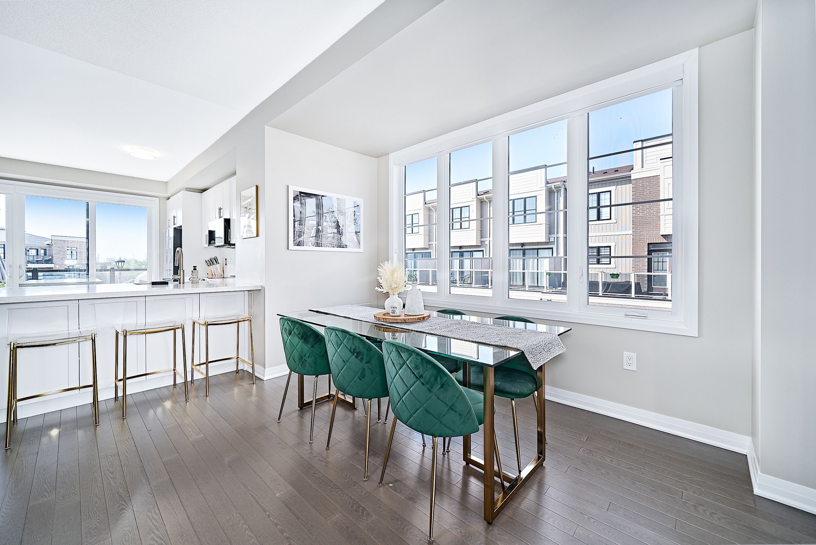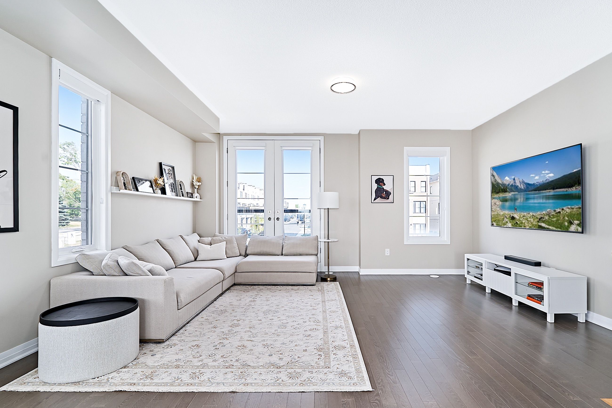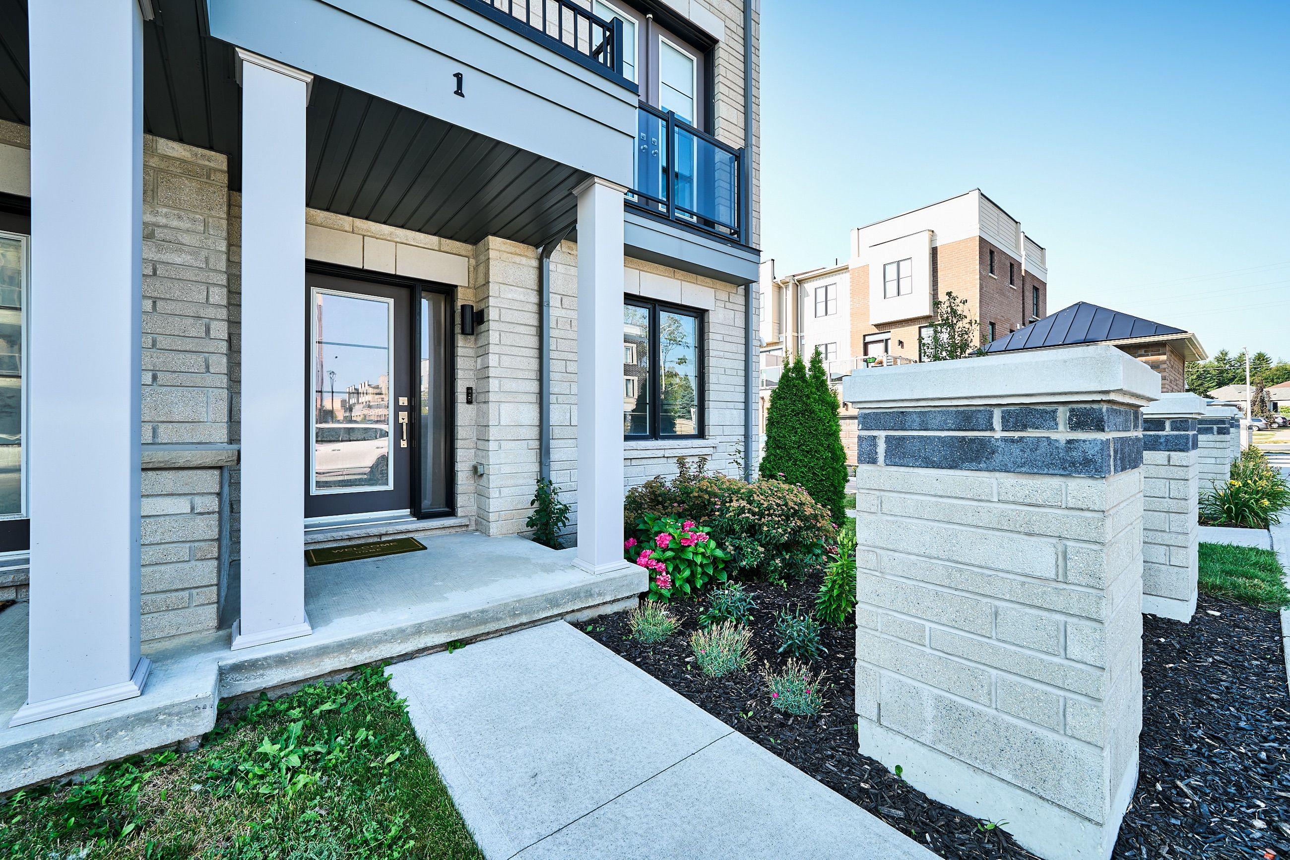 This exquisite 4-bedroom, 4-bathroom end-unit townhouse spans over 2,200 sq ft. - where over $50,000 in premium upgrades elevate modern luxury. Boasting 9-foot ceilings throughout, this home features an open-concept main level with massive windows, flooding the space with natural light and showcasing gleaming hardwood floors that extend to the staircase. Custom blinds offer uv protection while ensuring the sunlight fills the home. The gourmet kitchen, renovated in 2024, is a chefs dream with a stainless steel samsung bespoke double-door fridge featuring an auto-filling water jug and dual ice cube sizes, a matching bespoke stove, dishwasher, and over-the-range microwave. Quartz countertops and backsplash add elegance, while the coffee bar (2025) includes a quartz counter, pot lights, pantry, appliance garage, and bar fridge. Large sliding glass doors lead to a 200 sq ft balcony, perfect for entertaining. The lower level offers a versatile bedroom or office, full bathroom, and mudroom, ideal for guests. Upstairs, the primary suite impresses with a walk-in closet and a luxurious 3-piece ensuite with a walk-in shower and quartz countertop. Bedroom 2 features a private balcony, and a 240 sq ft rooftop terrace provides a stunning retreat. A main-floor powder room adds convenience. 2 car driveway plus 1. 5 garage parking spaces. Located in a vibrant townhouse community with a kids playground, this home is steps from an elementary school, high school, tennis courts, park, and splash park. Enjoy proximity to shopping, restaurants, coffee shops, and the bowmanville go station. Historic downtown bowmanville, trails, and the beachfront are a short drive away. With extensive upgrades and an unbeatable location, this townhouse is a rare gem!