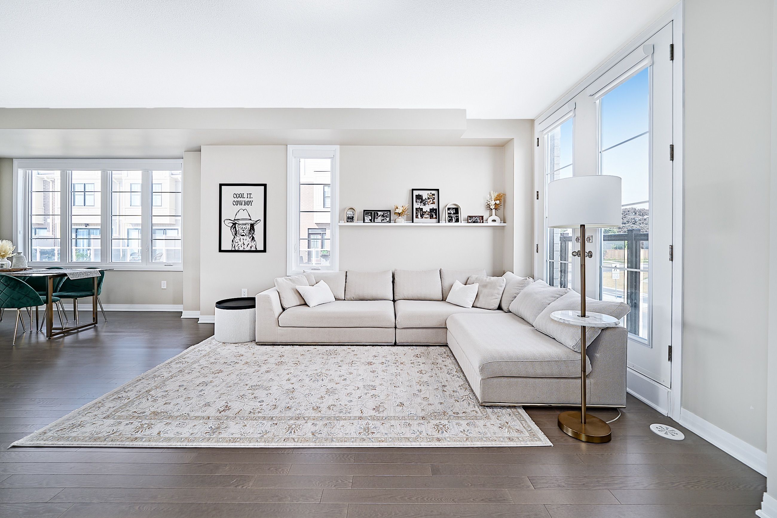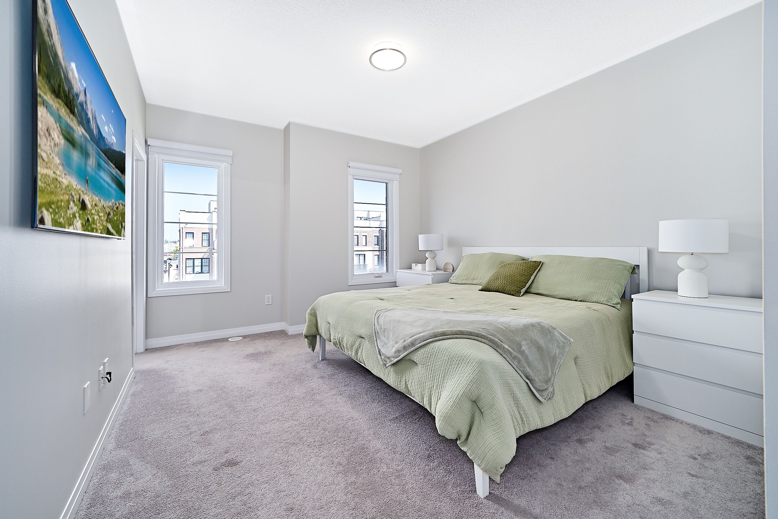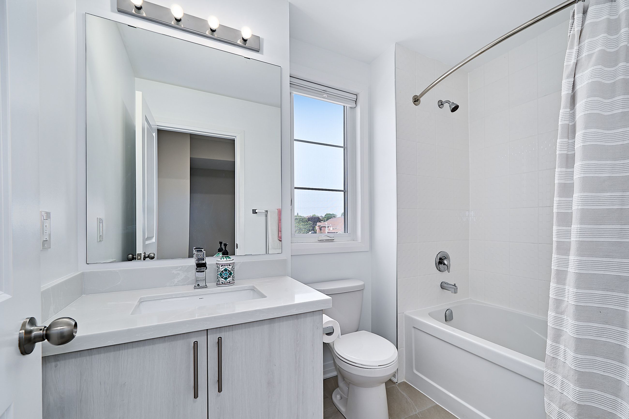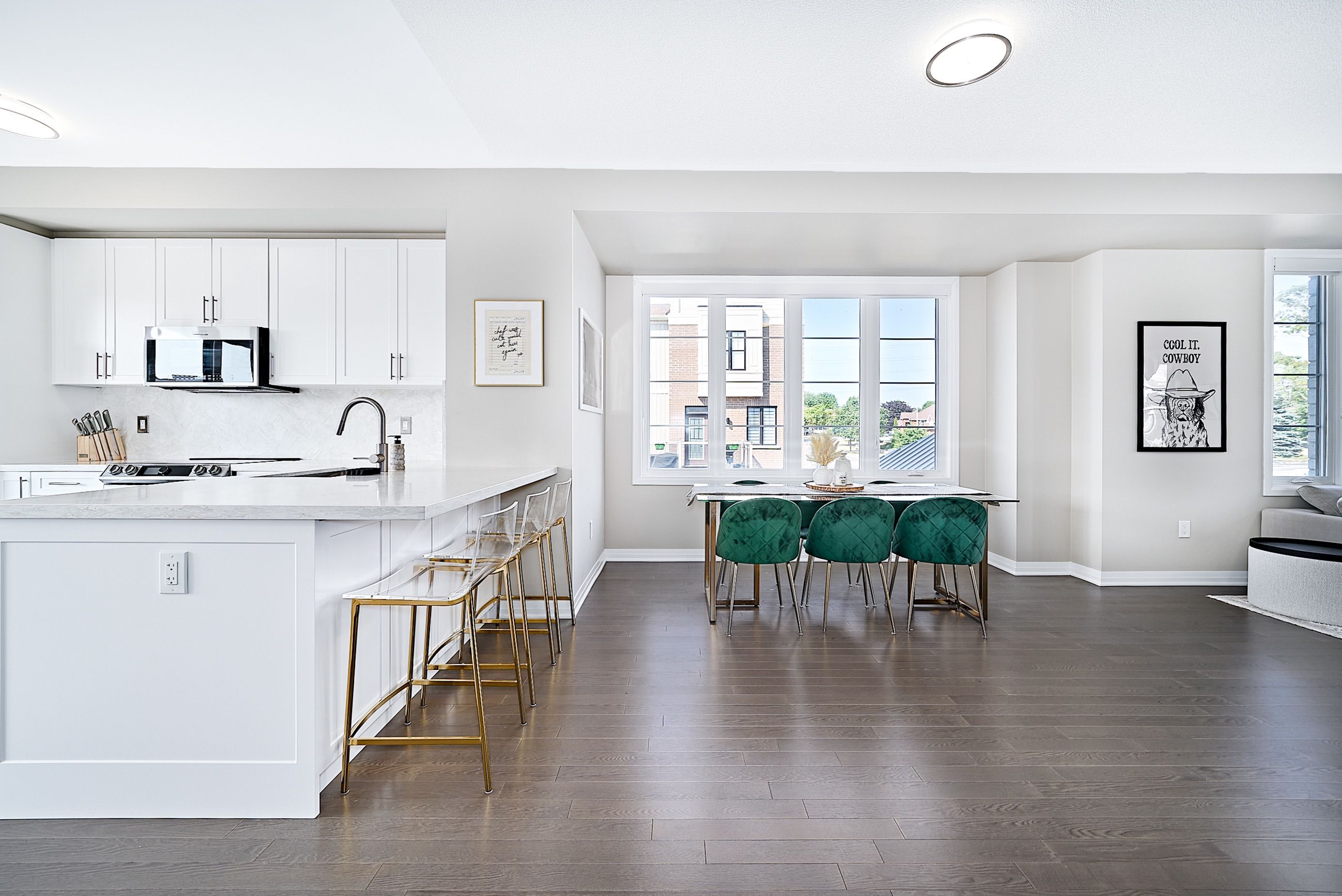 This exquisite 4-bedroom, 4-bathroom end-unit townhouse spans over 2,200 sq ft. - where over $50,000 in premium upgrades elevate modern luxury. Boasting 9-foot ceilings throughout, this home features an open-concept main level with massive windows, flooding the space with natural light and showcasing gleaming hardwood floors that extend to the staircase. Custom blinds offer uv protection while ensuring the sunlight fills the home. The gourmet kitchen, renovated in 2024, is a chefs dream with a stainless steel samsung bespoke double-door fridge featuring an auto-filling water jug and dual ice cube sizes, a matching bespoke stove, dishwasher, and over-the-range microwave. Quartz countertops and backsplash add elegance, while the coffee bar (2025) includes a quartz counter, pot lights, pantry, appliance garage, and bar fridge. Large sliding glass doors lead to a 200 sq ft balcony, perfect for entertaining. The lower level offers a versatile bedroom or office, full bathroom, and mudroom, ideal for guests. Upstairs, the primary suite impresses with a walk-in closet and a luxurious 3-piece ensuite with a walk-in shower and quartz countertop. Bedroom 2 features a private balcony, and a 240 sq ft rooftop terrace provides a stunning retreat. A main-floor powder room adds convenience. 2 car driveway plus 1. 5 garage parking spaces. Located in a vibrant townhouse community with a kids playground, this home is steps from an elementary school, high school, tennis courts, park, and splash park. Enjoy proximity to shopping, restaurants, coffee shops, and the bowmanville go station. Historic downtown bowmanville, trails, and the beachfront are a short drive away. With extensive upgrades and an unbeatable location, this townhouse is a rare gem!