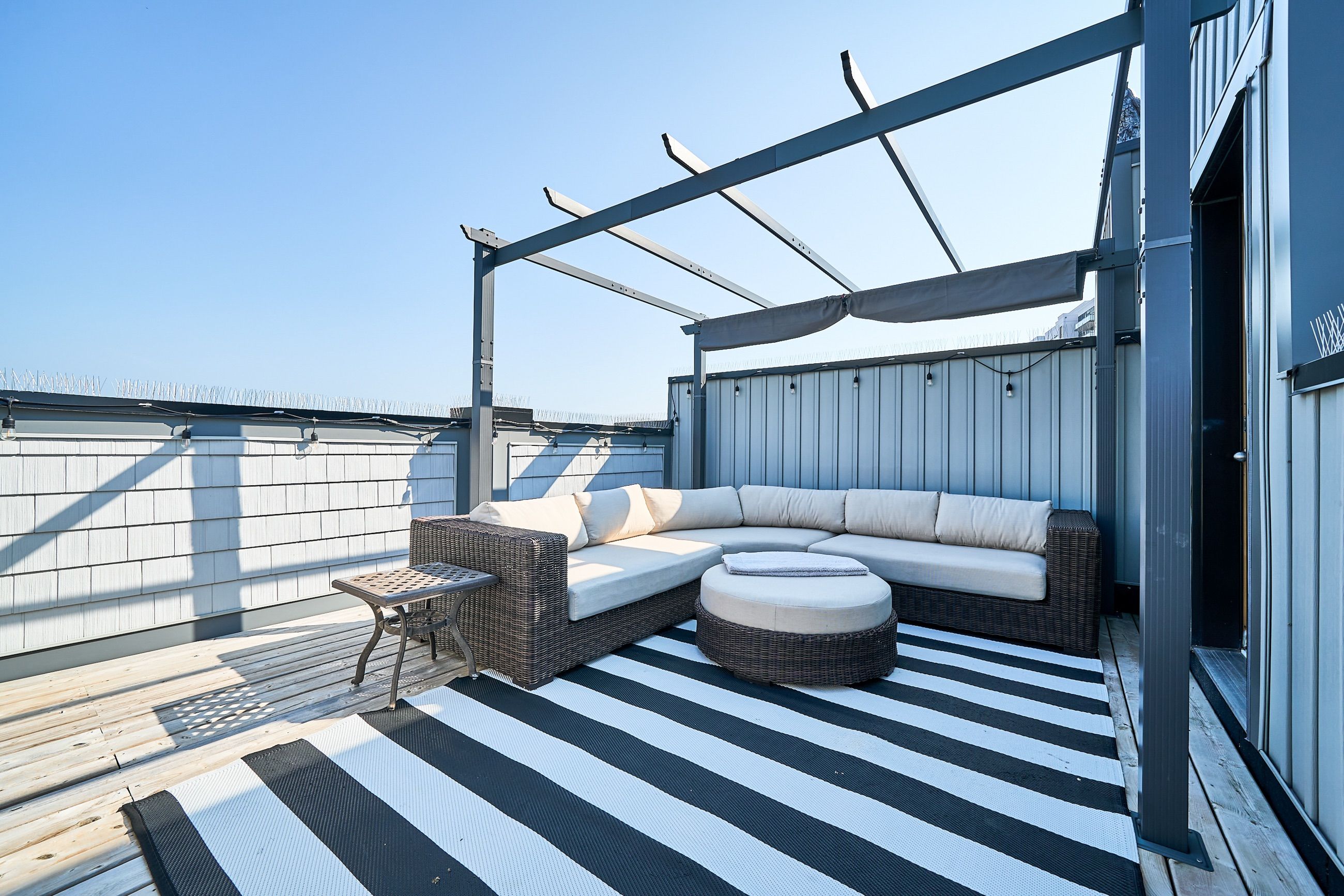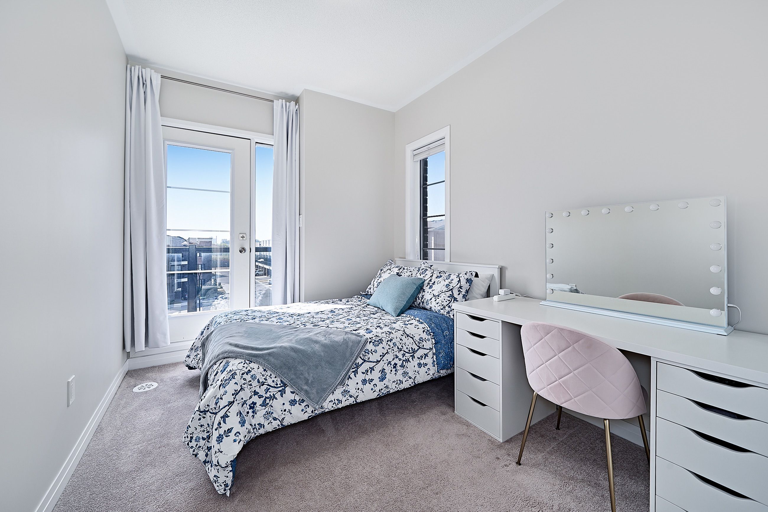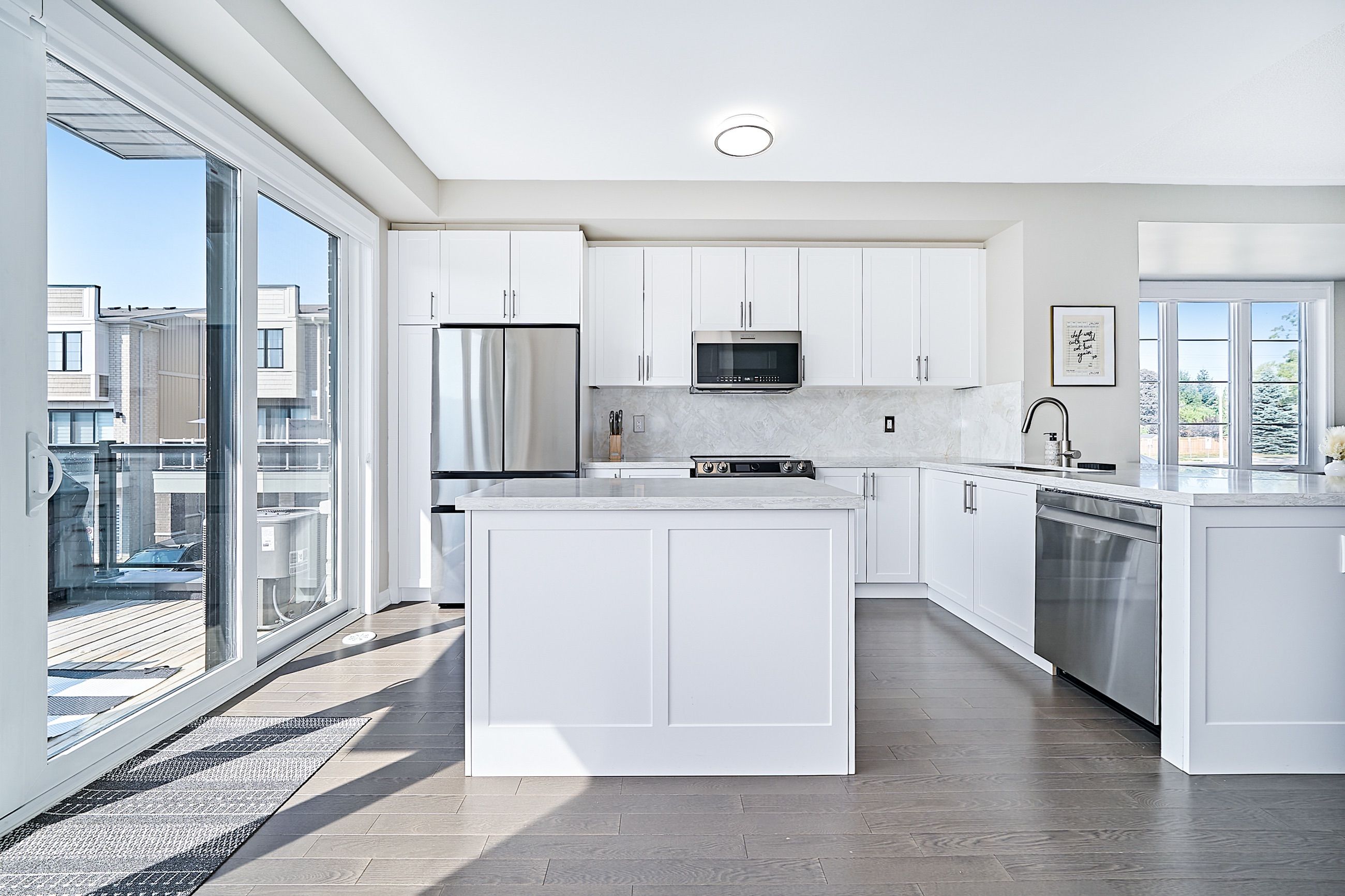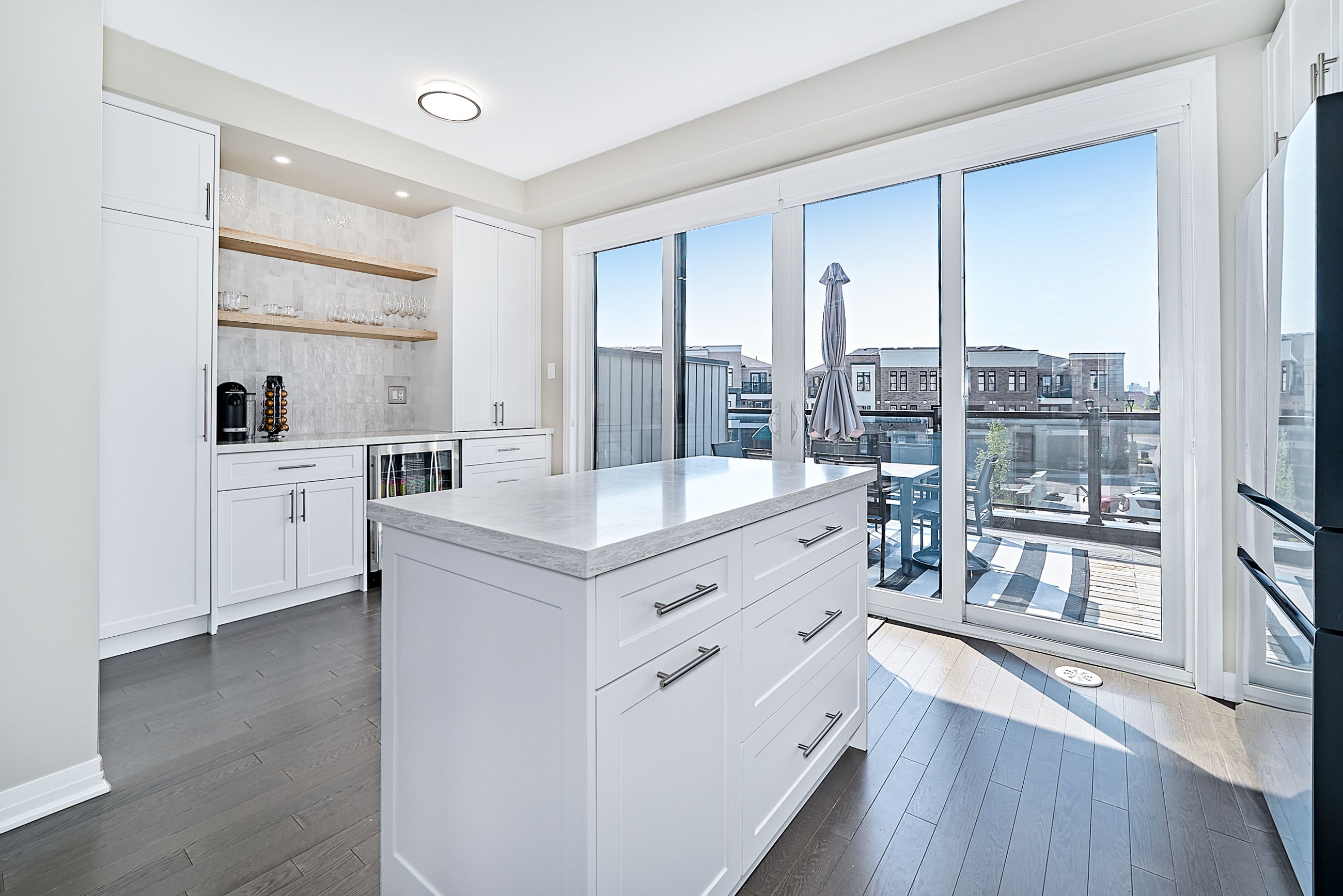 This exquisite 4-bedroom, 4-bathroom end-unit townhouse spans over 2,200 sq ft. - where over $50,000 in premium upgrades elevate modern luxury. Boasting 9-foot ceilings throughout, this home features an open-concept main level with massive windows, flooding the space with natural light and showcasing gleaming hardwood floors that extend to the staircase. Custom blinds offer uv protection while ensuring the sunlight fills the home. The gourmet kitchen, renovated in 2024, is a chefs dream with a stainless steel samsung bespoke double-door fridge featuring an auto-filling water jug and dual ice cube sizes, a matching bespoke stove, dishwasher, and over-the-range microwave. Quartz countertops and backsplash add elegance, while the coffee bar (2025) includes a quartz counter, pot lights, pantry, appliance garage, and bar fridge. Large sliding glass doors lead to a 200 sq ft balcony, perfect for entertaining. The lower level offers a versatile bedroom or office, full bathroom, and mudroom, ideal for guests. Upstairs, the primary suite impresses with a walk-in closet and a luxurious 3-piece ensuite with a walk-in shower and quartz countertop. Bedroom 2 features a private balcony, and a 240 sq ft rooftop terrace provides a stunning retreat. A main-floor powder room adds convenience. 2 car driveway plus 1. 5 garage parking spaces. Located in a vibrant townhouse community with a kids playground, this home is steps from an elementary school, high school, tennis courts, park, and splash park. Enjoy proximity to shopping, restaurants, coffee shops, and the bowmanville go station. Historic downtown bowmanville, trails, and the beachfront are a short drive away. With extensive upgrades and an unbeatable location, this townhouse is a rare gem!