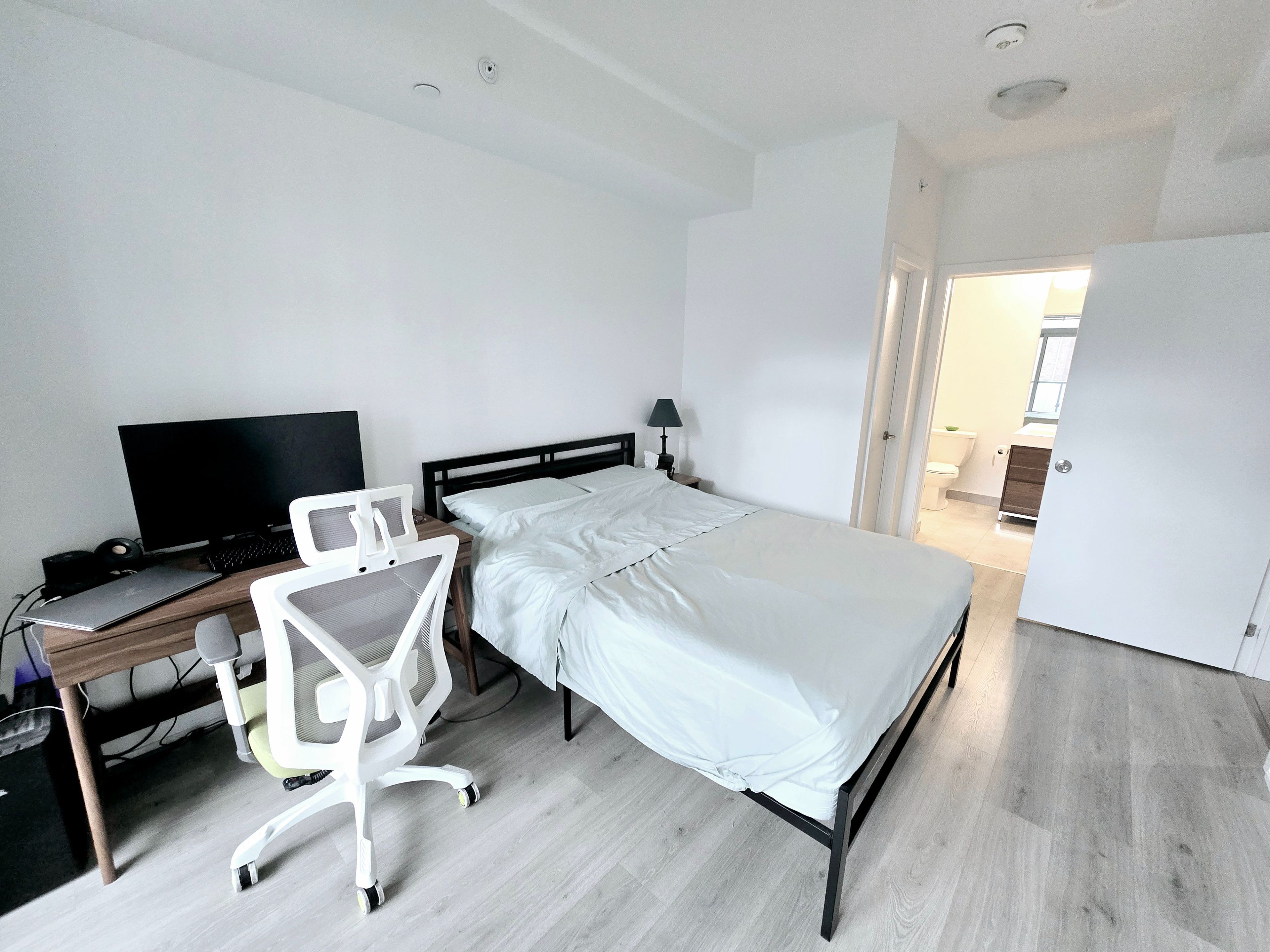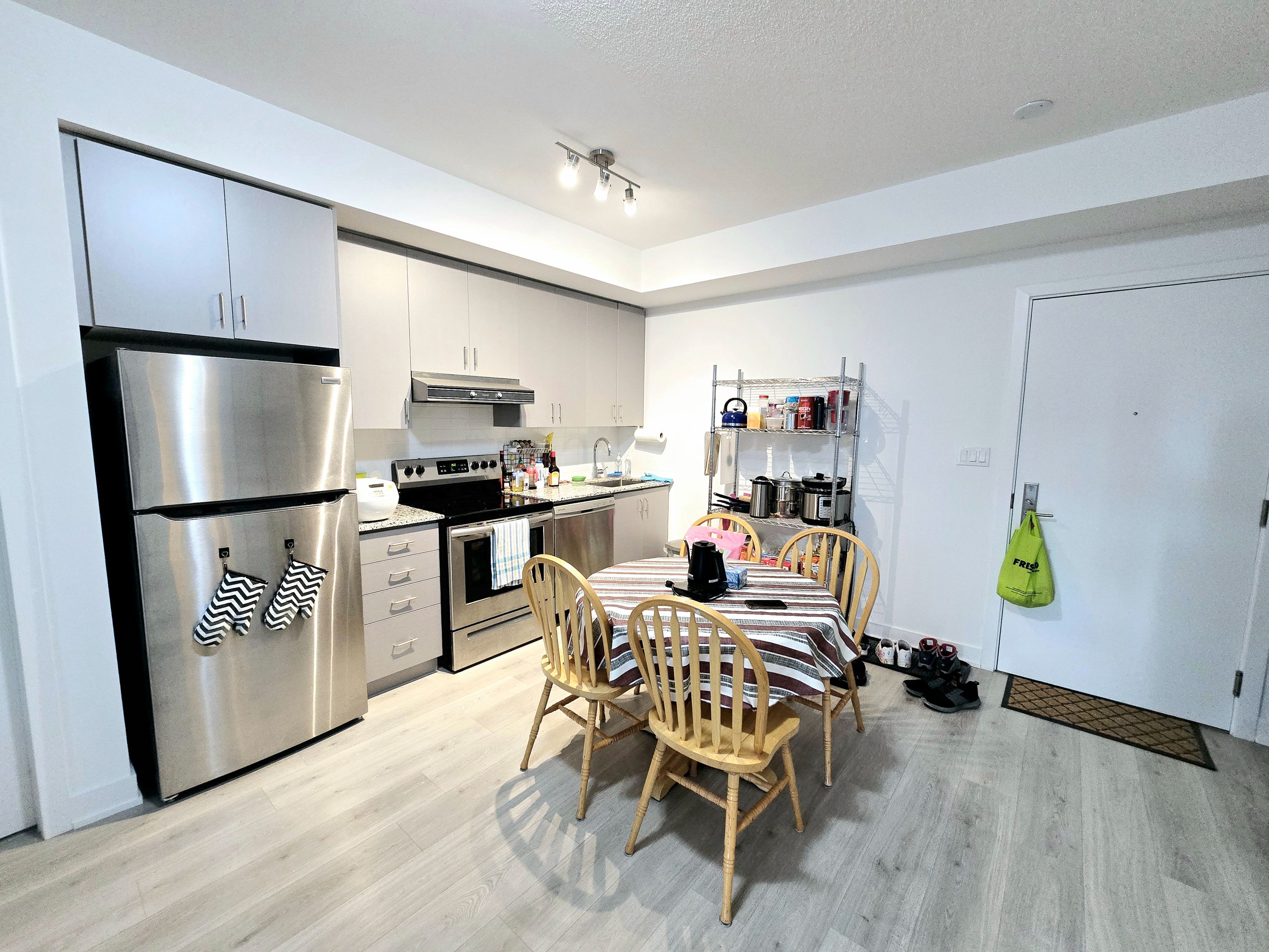Union condos built by aspen ridge homes, bright & spacious 2 bedroom + 2 bathroom unit (both ensuite), with 9 ft ceiling & laminate flooring throughout. Sun-filled south view with a huge balcony. Open concept kitchen with quartz countertop & stainless steel appliances. Steps to all amenities include mount joy go station, supermarkets, restaurants, schools, parks, banks, public transit, home depot, shopper drug mart & much more... 1 underground parking & 1 locker included.