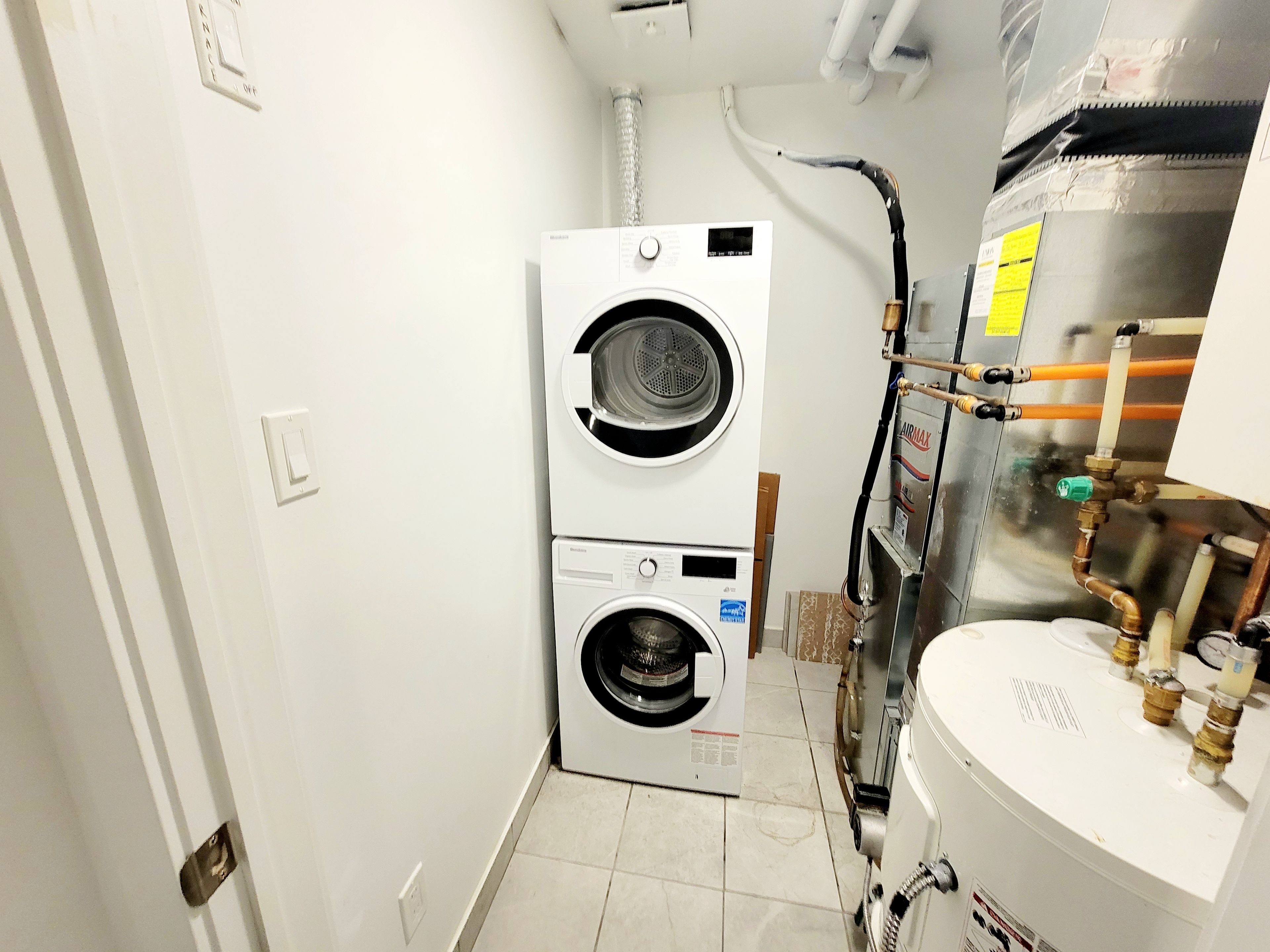 • Modern kitchen featuring quartz countertops and stainless steel appliances.