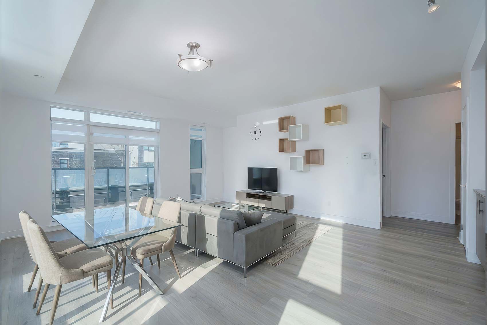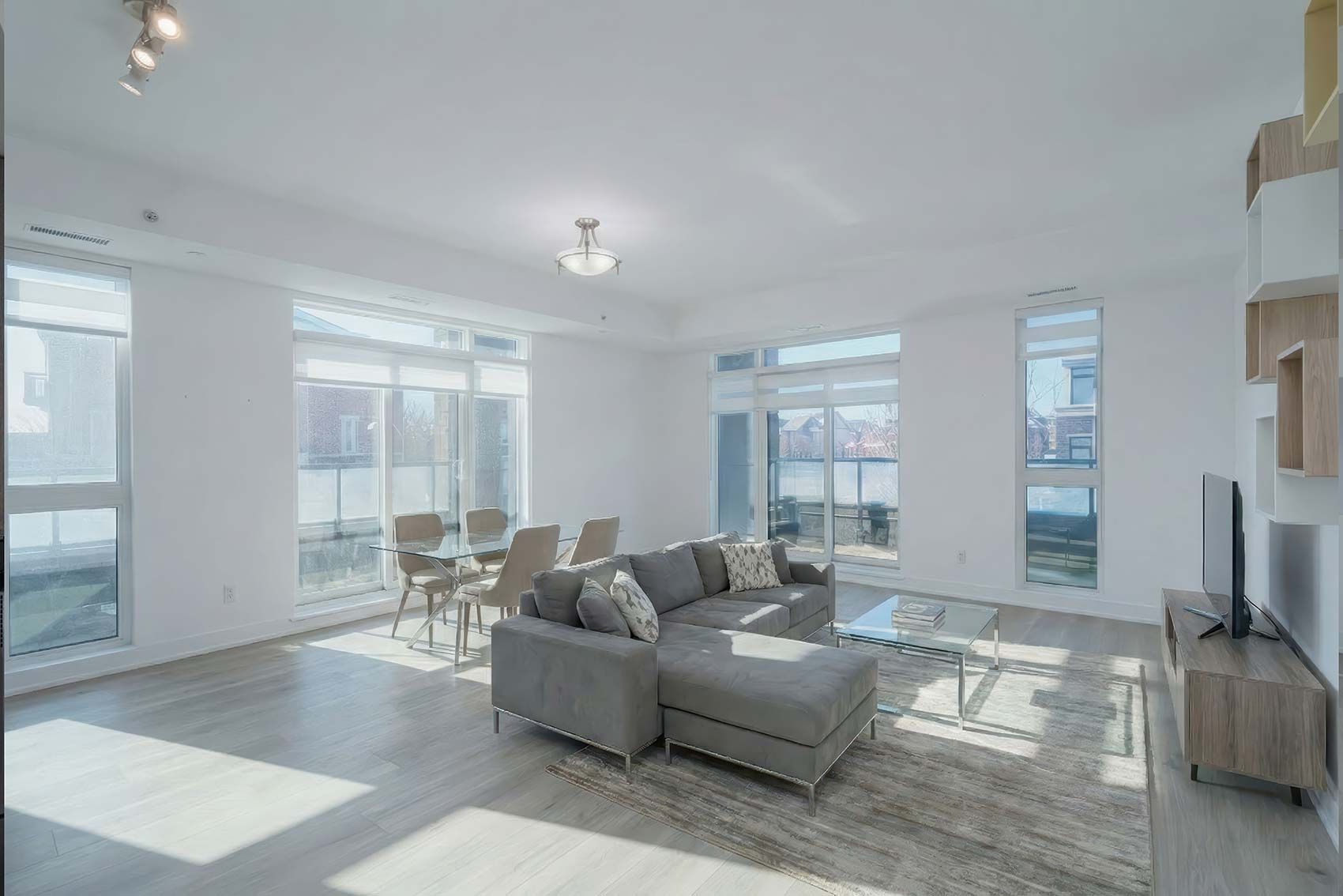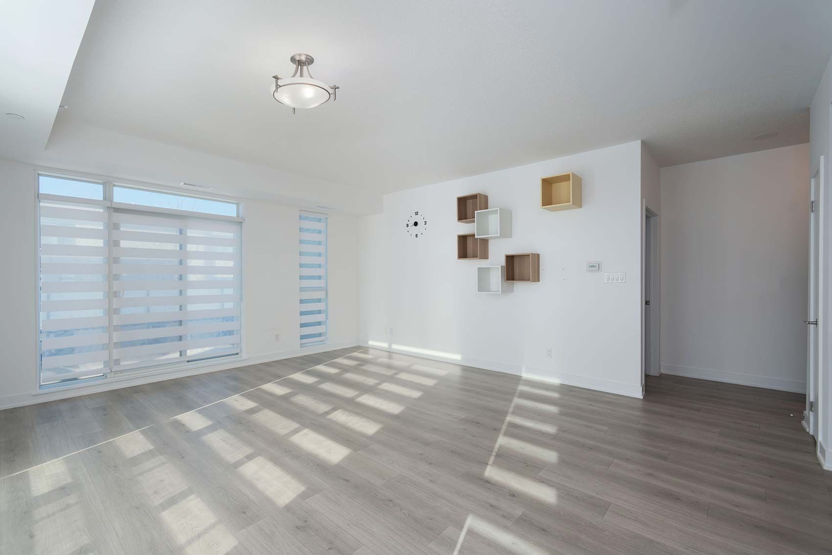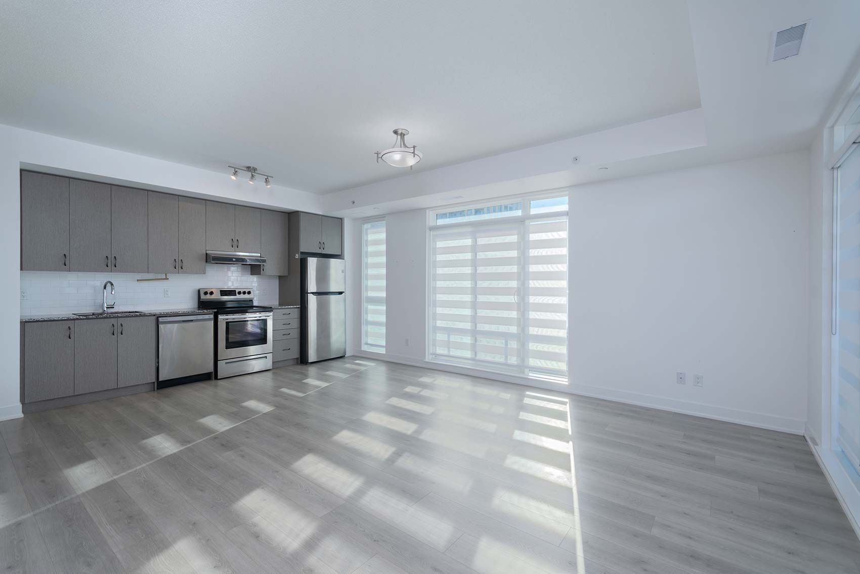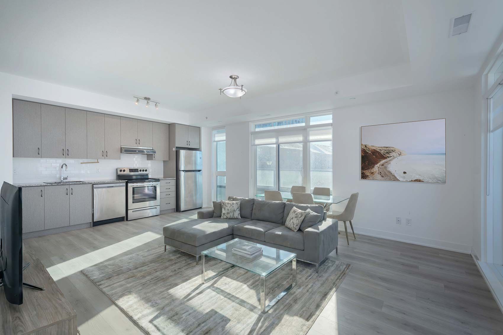 • Open-concept living area easily accommodates various furniture layouts.