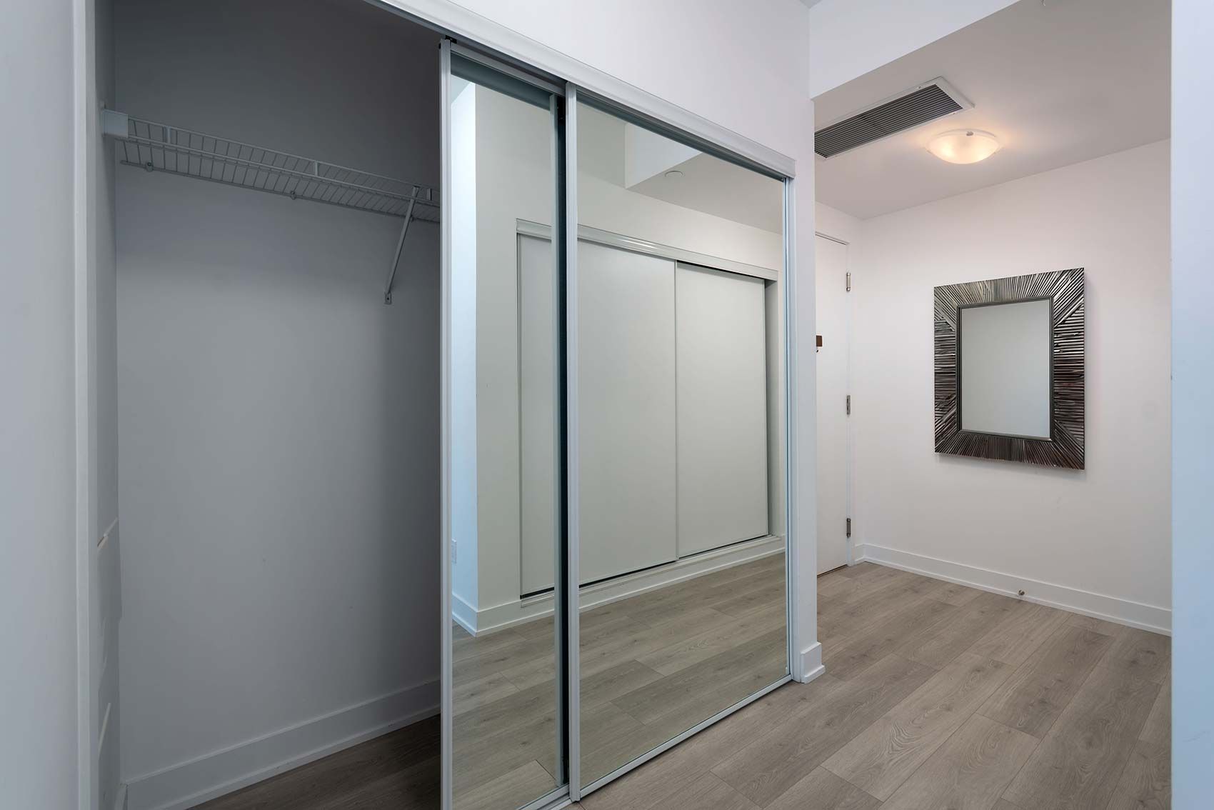 An exceptional new corner residence by aspen ridge, offering refined living in a prime, established location. This bright and expansive condo features over 1,000 sq. Ft. Of thoughtfully designed interior space, complemented by a 273 sq. Ft. Wrap-around balcony with seamless walk-outs from every room-perfect for indoor-outdoor living. The open-concept main living area is both elegant and versatile, effortlessly accommodating a variety of furniture layouts. Designer finishes include sleek laminate flooring, dramatic floor-to-ceiling windows, dual walk-outs, and stainless steel appliances, creating a lightfilled and contemporary atmosphere throughout. The primary suite is a true retreat, showcasing a spa-inspired ensuite, expansive wall-to-wall closets with three sliding doors, and direct access to the balcony. The generously sized second bedroom also enjoys its own private walk-out, ideal for guests or a refined home office. Additional conveniences include underground parking and a private locker. Ideally situated within walking distance to mount joy go station, parks, plazas, fine dining, and everyday amenities, with effortless access to markville mall and highways 7, 407, and 404-offering both luxury and connectivity.