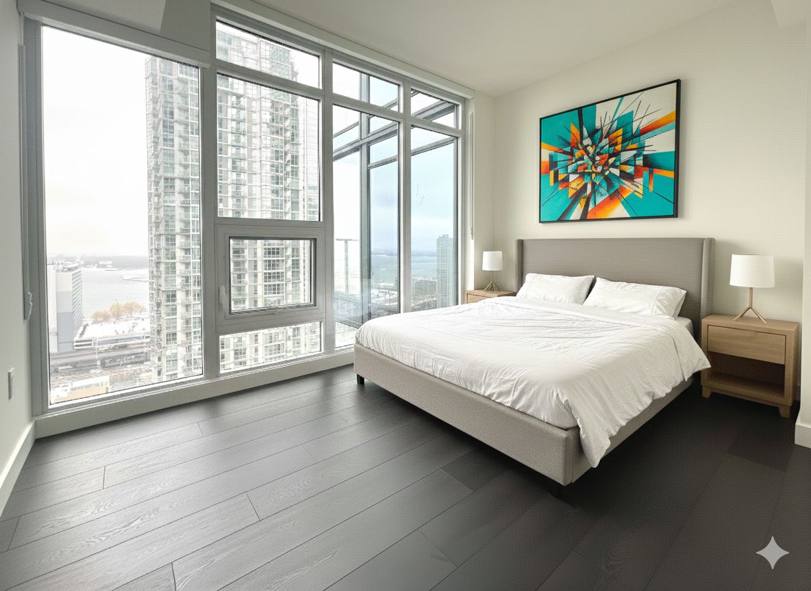 Brand new iconic landmark condo at concord canada house! This stunning southeast-facing three-bedroom corner residence is ideally located in the heart of downtown toronto. Offering 908 sq. Ft. Of interior living space plus a 125 sq. Ft. Oversized heated balcony, the suite boasts unobstructed views of lake ontario. Sun-filled interiors feature floor-to-ceiling windows, a sleek modern kitchen with integrated top-of-the-line miele appliances, and premium finishes throughout. Residents enjoy world-class amenities, including 24-hour concierge service, indoor pool, fully equipped fitness centre, wine lounge, social and entertainment lounges. Just steps to the cn tower, rogers centre, transit, parks, waterfront trails, dining, entertainment, and chinatown. A rare opportunity to be the first homeowner in this exceptional residence-don't miss it! Some pictures are made by ai