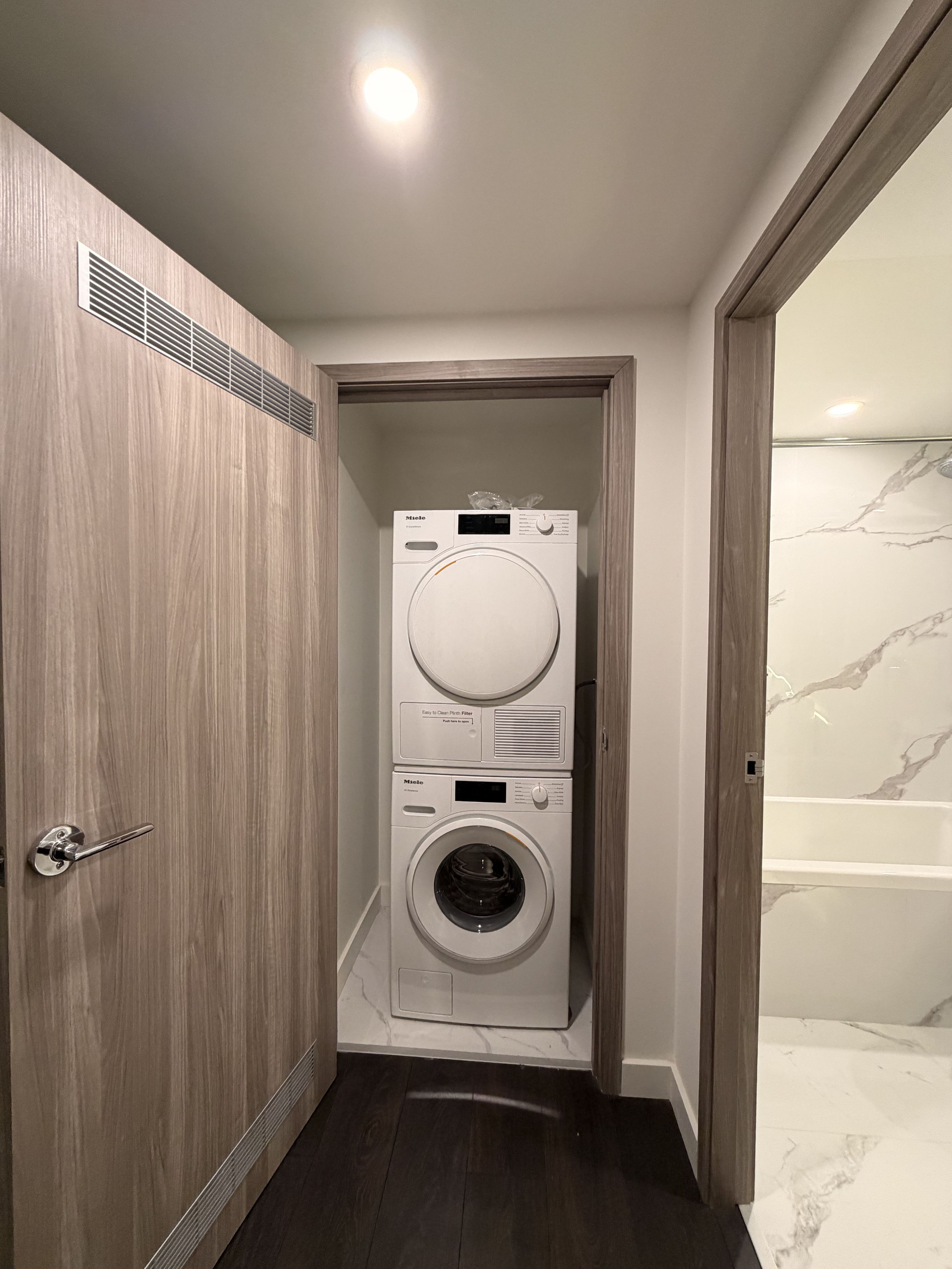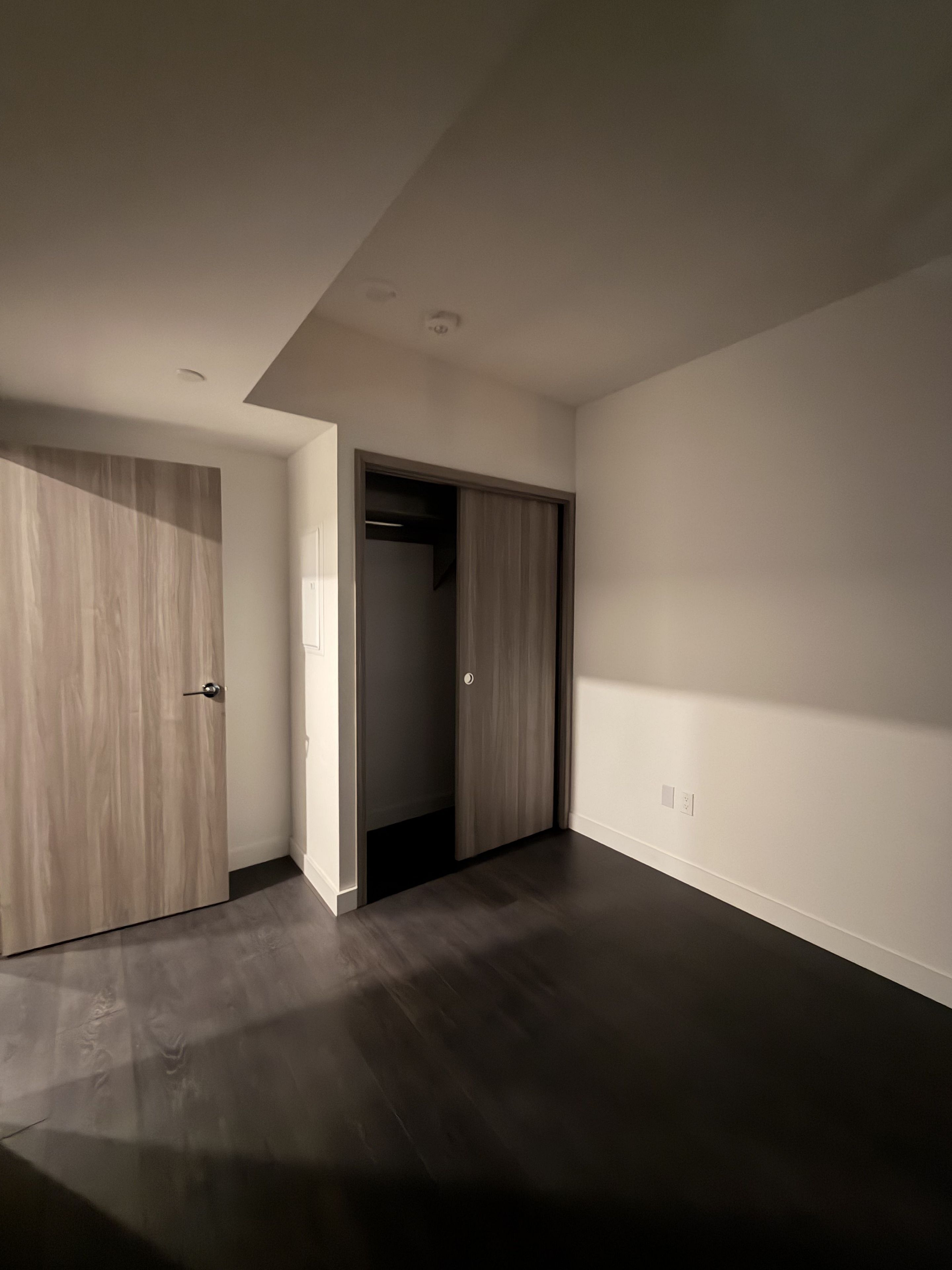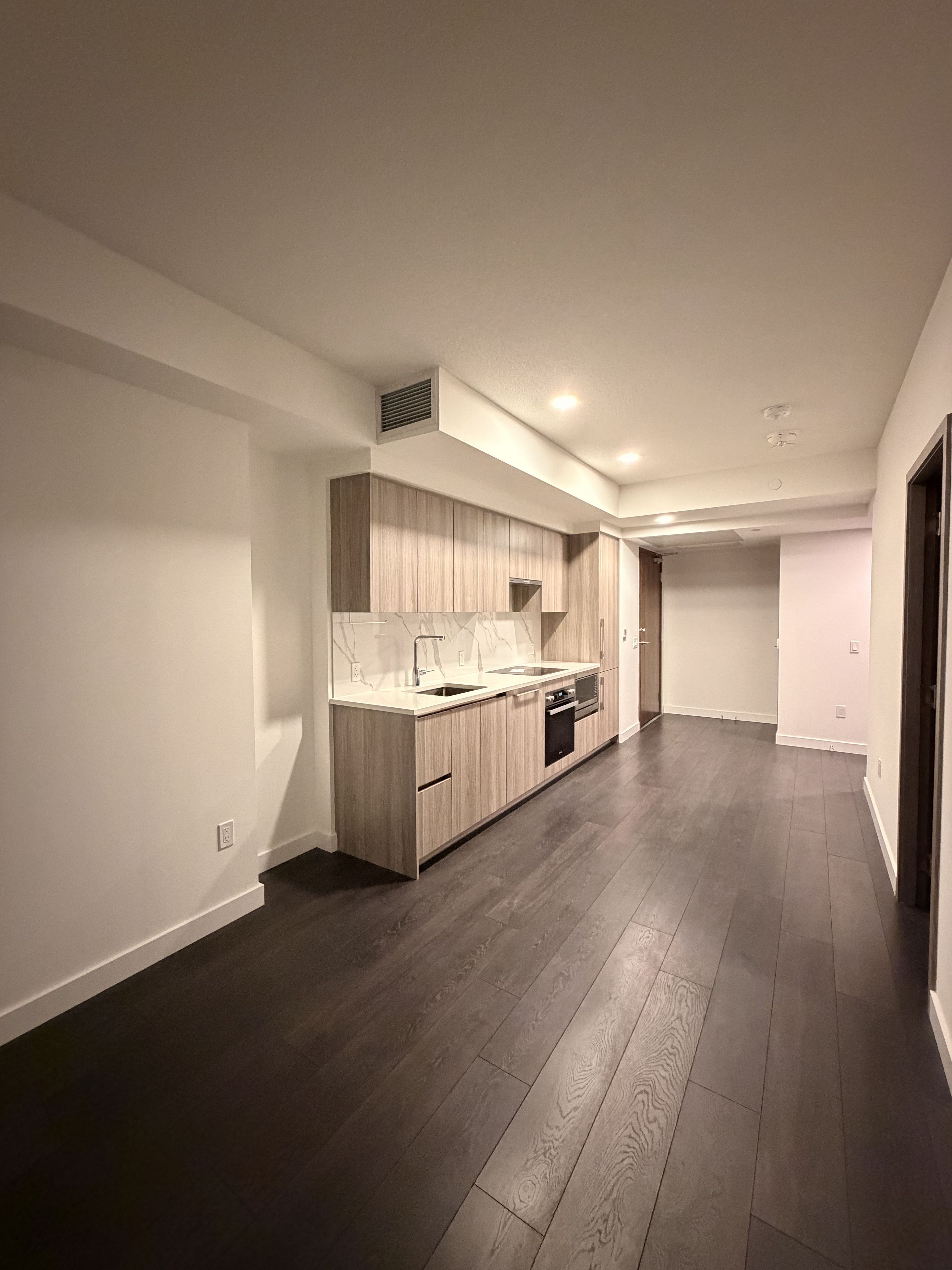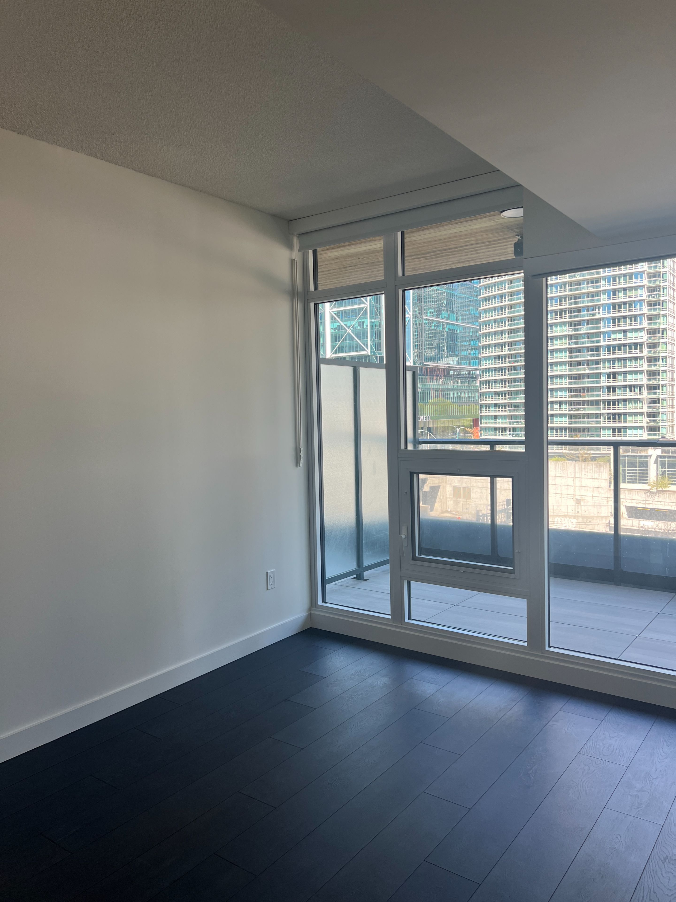 • Bright modern unit with floor-to-ceiling windows and open balcony.