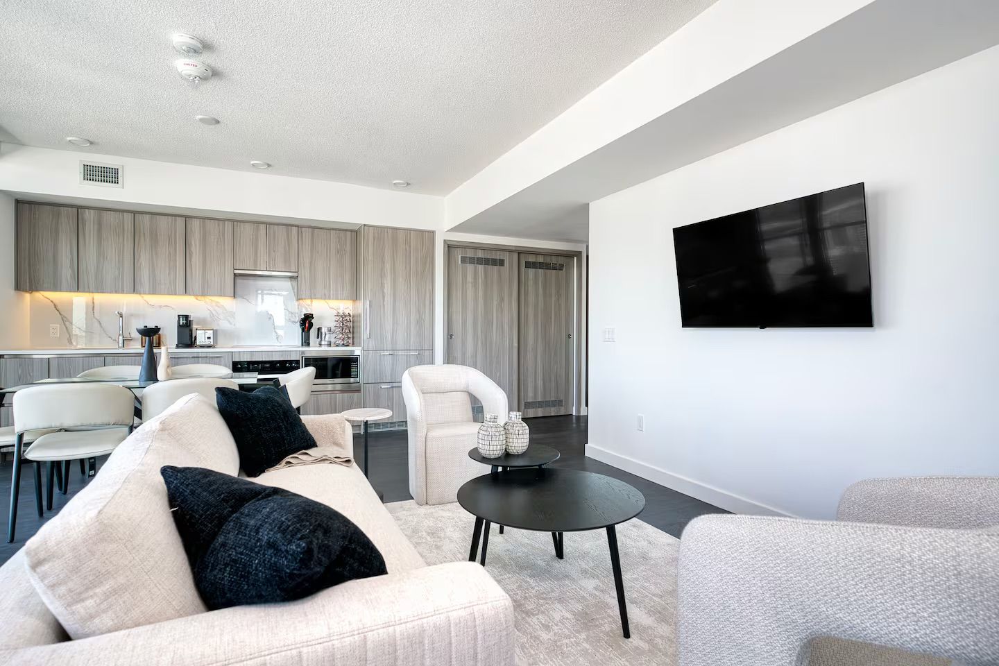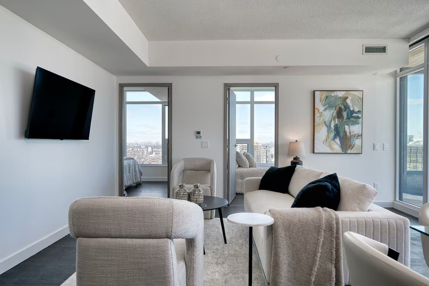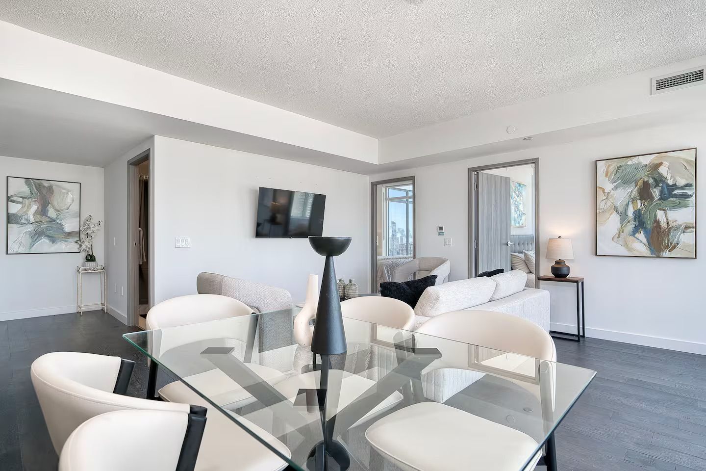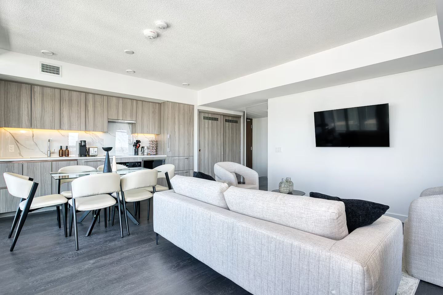 Wake up to sweeping city views in this stylish 2 bed, 2 bath luxury suite at iconic concord canada house. Designed for comfort and sophistication, this modern condo offers spacious bedrooms, sleek finishes, and resort-style amenities including an indoor pool, spa, fitness centre, yoga studio, rooftop terrace, and 24/7 concierge. Steps from the cn tower, waterfront, scotiabank arena, dining, shopping, and transit. This unit comes furnished with beautiful furniture making it move in ready!