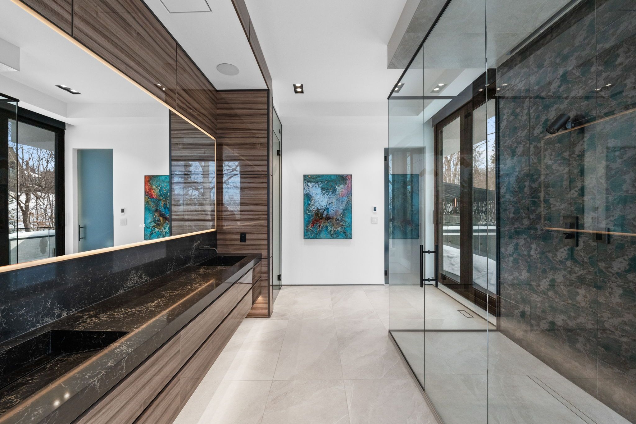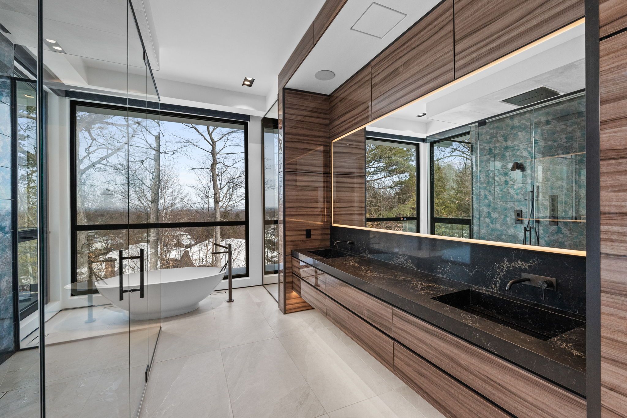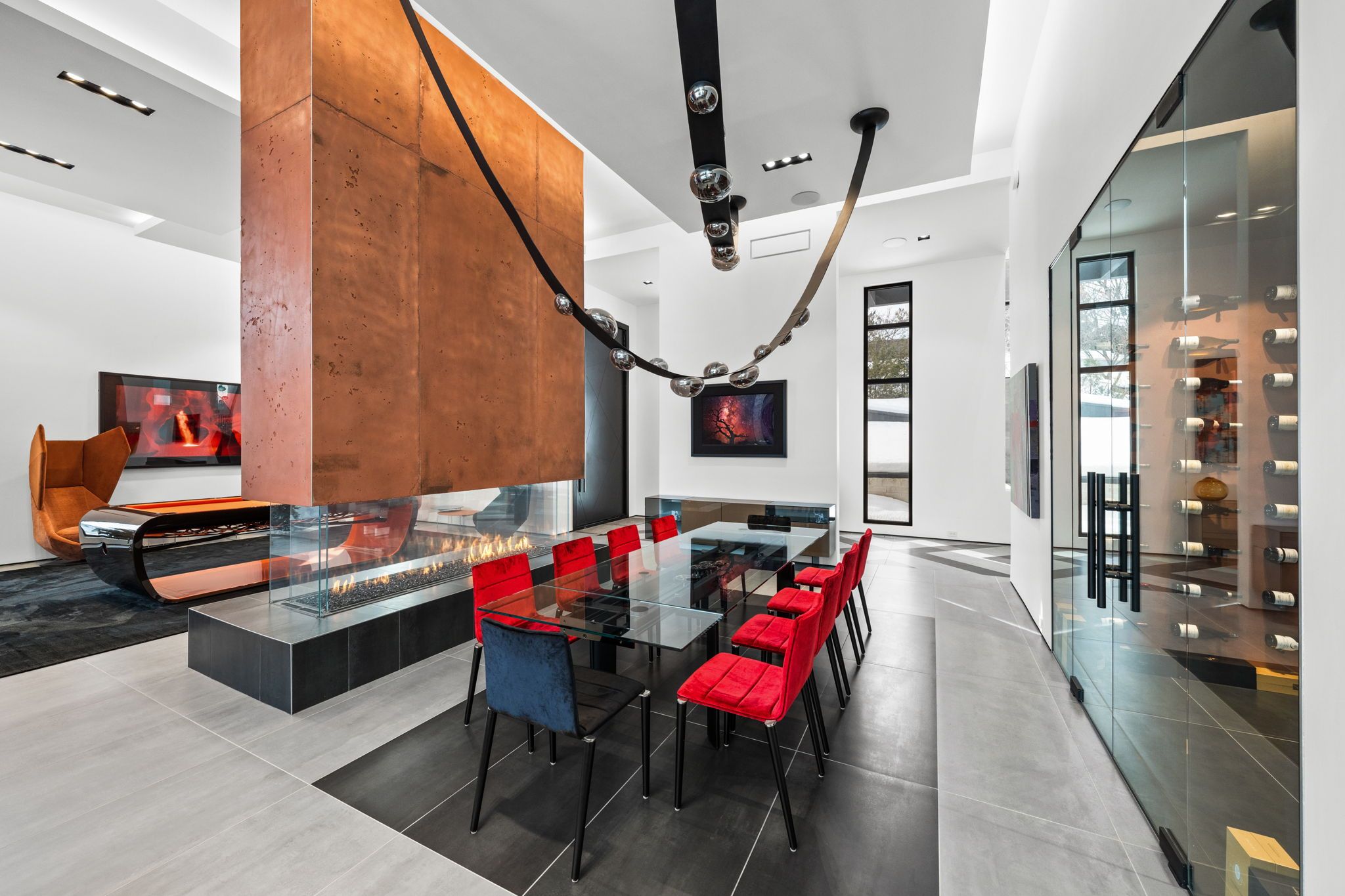 This extraordinary custom-built residence is a statement in modern design and uncompromising craftsmanship. Starting with its massive front door as you enter with a concrete and steel feature wall and open riser, floating stairs complimented by a 3-level custom built chandelier. A copper fireplace and wine cellar surround the dining room with custom artwork and light fixtures. At the heart of the home is a spectacular chef's kitchen designed for both everyday living and grand entertaining. Featuring premium appliances, custom cabinetry and exquisite stone surfaces. The space is complemented by a fully equipped, hidden pantry that allows preparation and hosting to remain seamless while maintaining the refined aesthetic of the main kitchen. The home offers generously proportioned bedrooms designed as private retreats, paired with beautifully appointed bathrooms showcasing high-end fixtures, custom vanities and spa-inspired finishes. The primary suite is particularly exceptional, featuring stunning views of the gatineau hills, custom walk-in closet, built-in miele coffee machine, humidor and a luxurious ensuite reminiscent of the world's finest hotels. An integrated elevator provides effortless access to every level of the home. Designed for both relaxation and entertainment, the lower level is a true lifestyle destination. Enjoy a private wellness experience with a dedicated sauna and professionally designed fitness room, along with a cinema-quality home theatre. For recreation and leisure, the home also features a state-of-the-art golf simulator and a covered exterior hot tub accessible by all bedrooms creating a private retreat to unwind while overlooking an enclosed sports court. Every detail of this exceptional residence reflects a commitment to modern sophistication, architectural beauty and the highest standard of luxury living. An extraordinary opportunity for those seeking a truly elevated lifestyle.