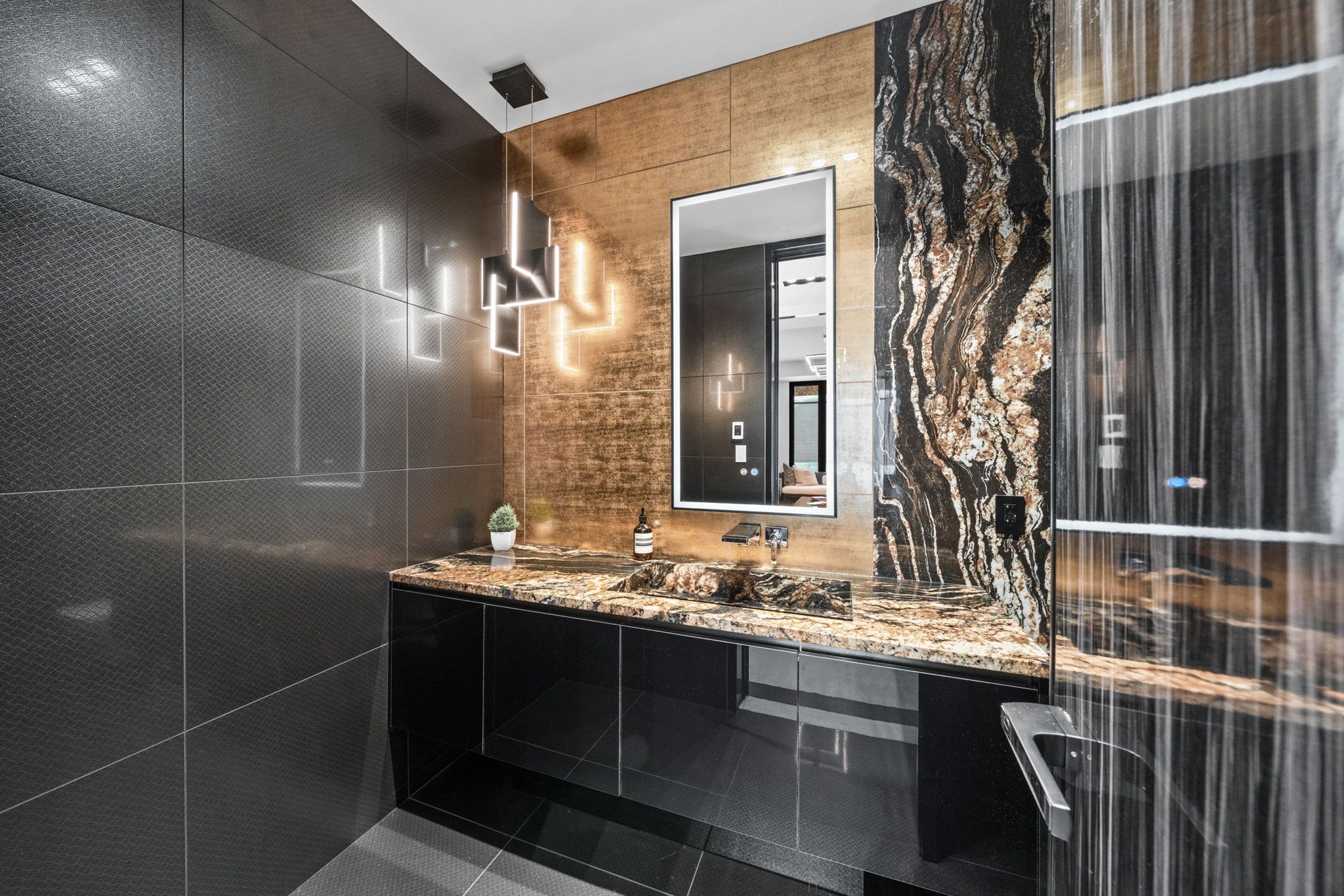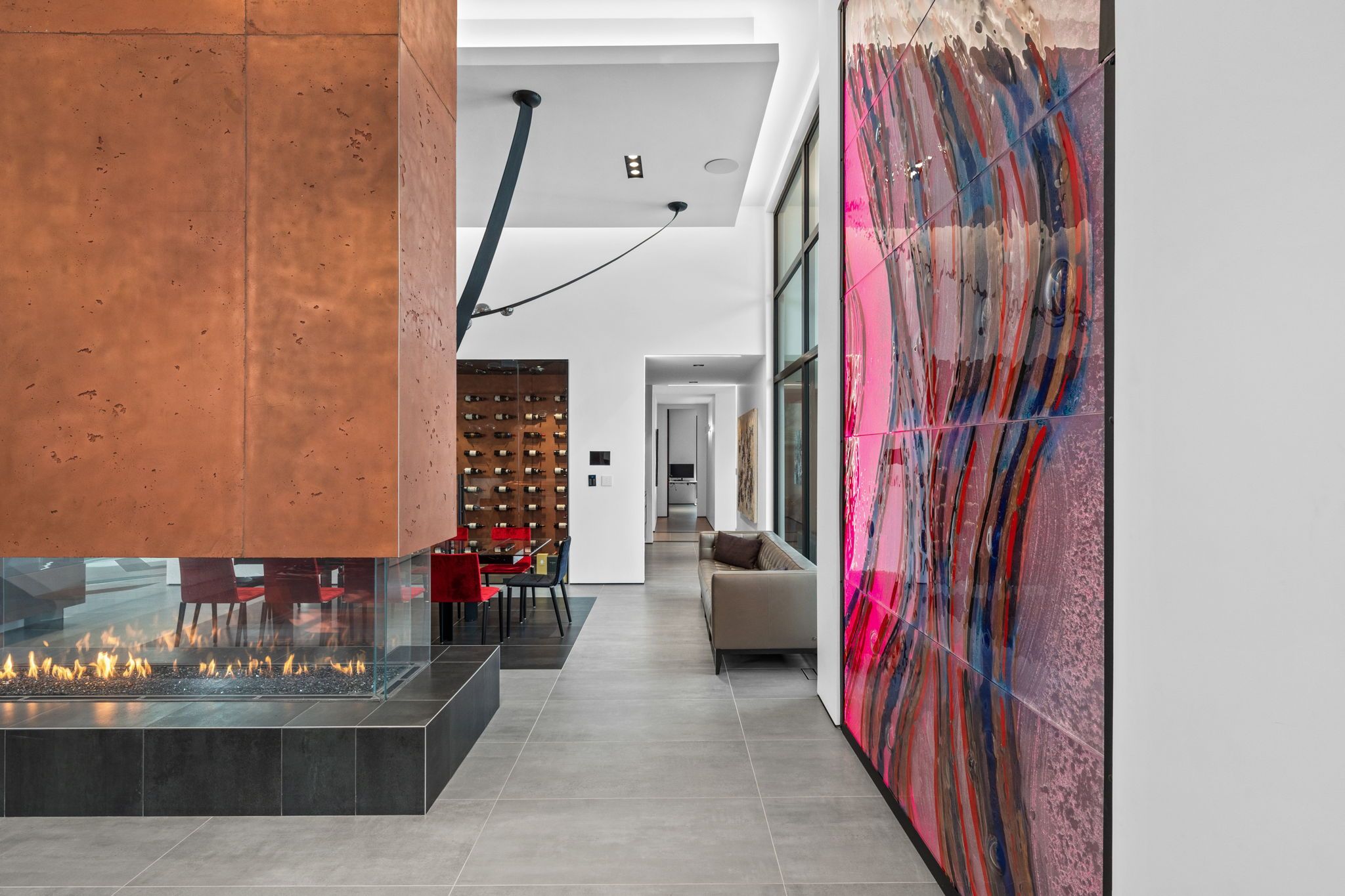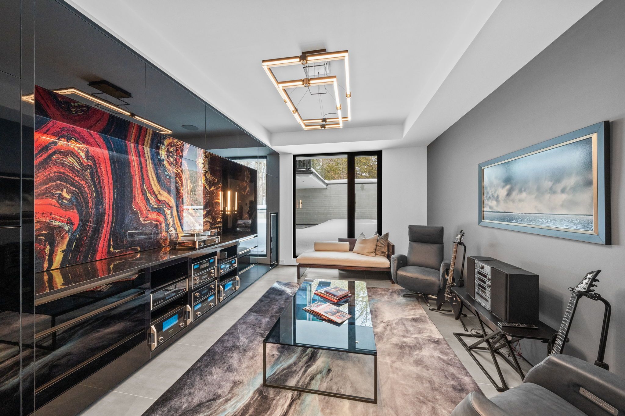 This extraordinary custom-built residence is a statement in modern design and uncompromising craftsmanship. Starting with its massive front door as you enter with a concrete and steel feature wall and open riser, floating stairs complimented by a 3-level custom built chandelier. A copper fireplace and wine cellar surround the dining room with custom artwork and light fixtures. At the heart of the home is a spectacular chef's kitchen designed for both everyday living and grand entertaining. Featuring premium appliances, custom cabinetry and exquisite stone surfaces. The space is complemented by a fully equipped, hidden pantry that allows preparation and hosting to remain seamless while maintaining the refined aesthetic of the main kitchen. The home offers generously proportioned bedrooms designed as private retreats, paired with beautifully appointed bathrooms showcasing high-end fixtures, custom vanities and spa-inspired finishes. The primary suite is particularly exceptional, featuring stunning views of the gatineau hills, custom walk-in closet, built-in miele coffee machine, humidor and a luxurious ensuite reminiscent of the world's finest hotels. An integrated elevator provides effortless access to every level of the home. Designed for both relaxation and entertainment, the lower level is a true lifestyle destination. Enjoy a private wellness experience with a dedicated sauna and professionally designed fitness room, along with a cinema-quality home theatre. For recreation and leisure, the home also features a state-of-the-art golf simulator and a covered exterior hot tub accessible by all bedrooms creating a private retreat to unwind while overlooking an enclosed sports court. Every detail of this exceptional residence reflects a commitment to modern sophistication, architectural beauty and the highest standard of luxury living. An extraordinary opportunity for those seeking a truly elevated lifestyle.