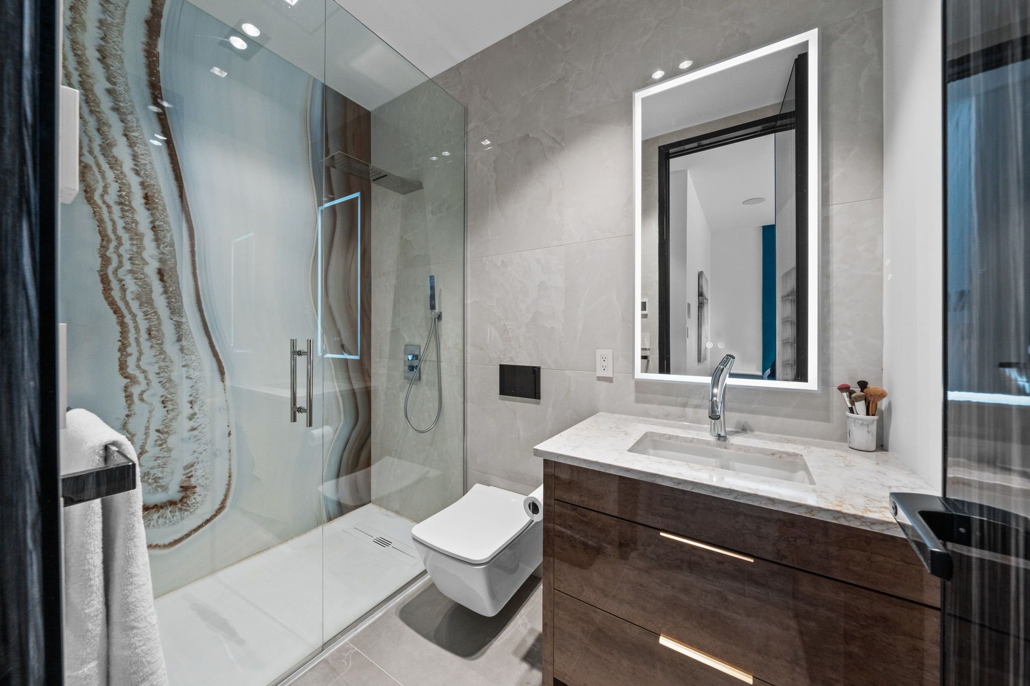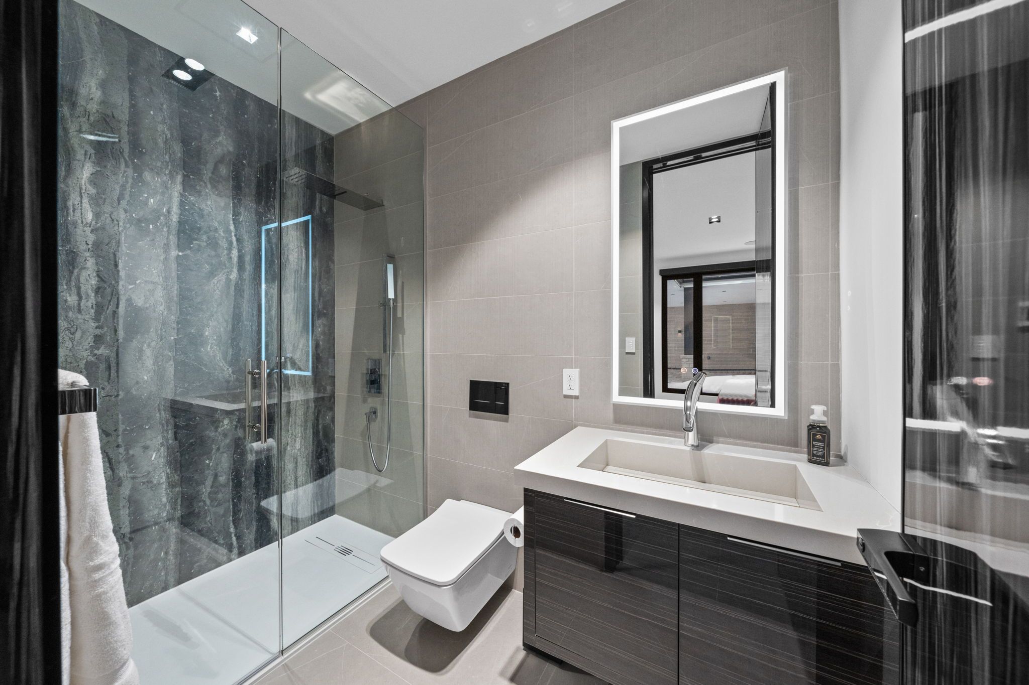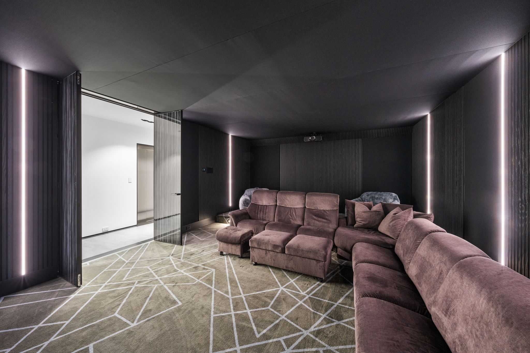 • Private wellness area featuring sauna, fitness room, and cinema-quality theatre.