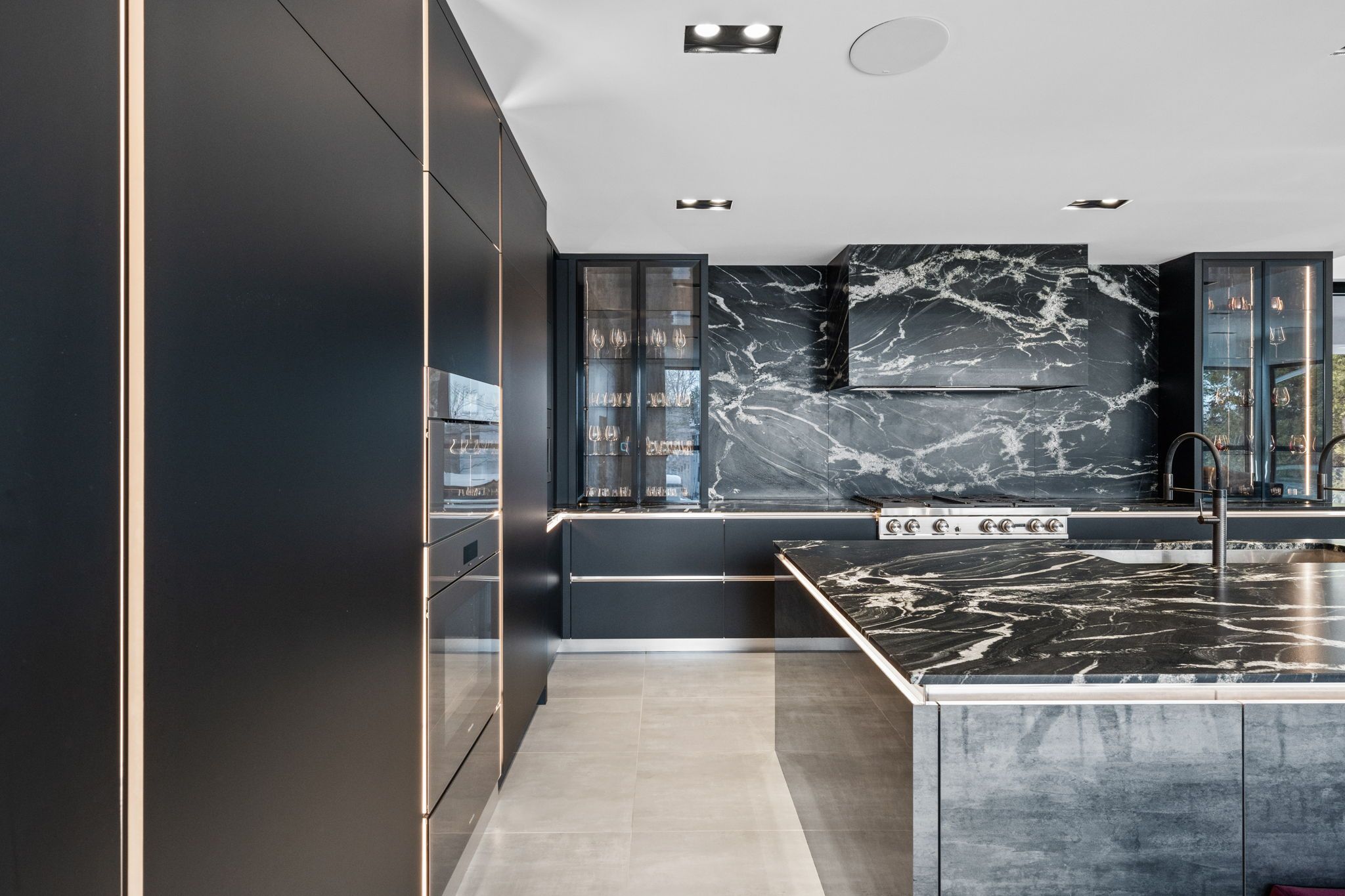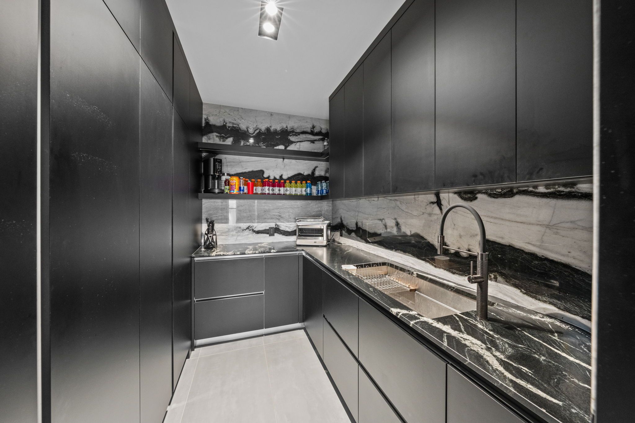 • Impressive chef's kitchen with premium appliances and hidden pantry.
