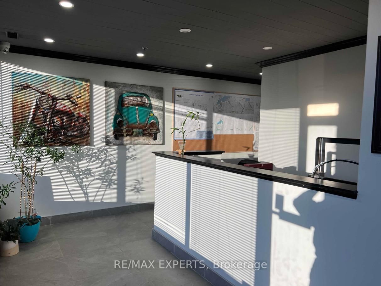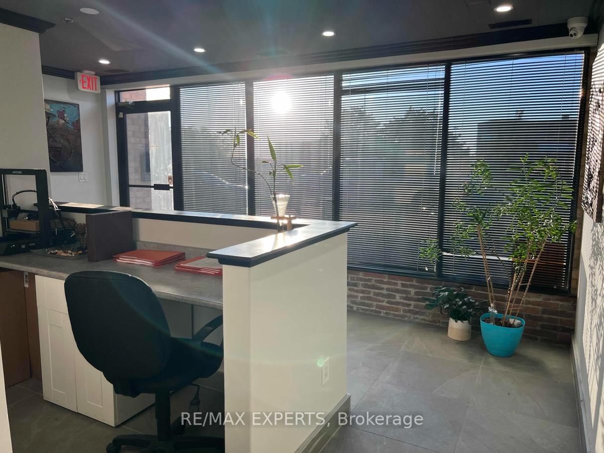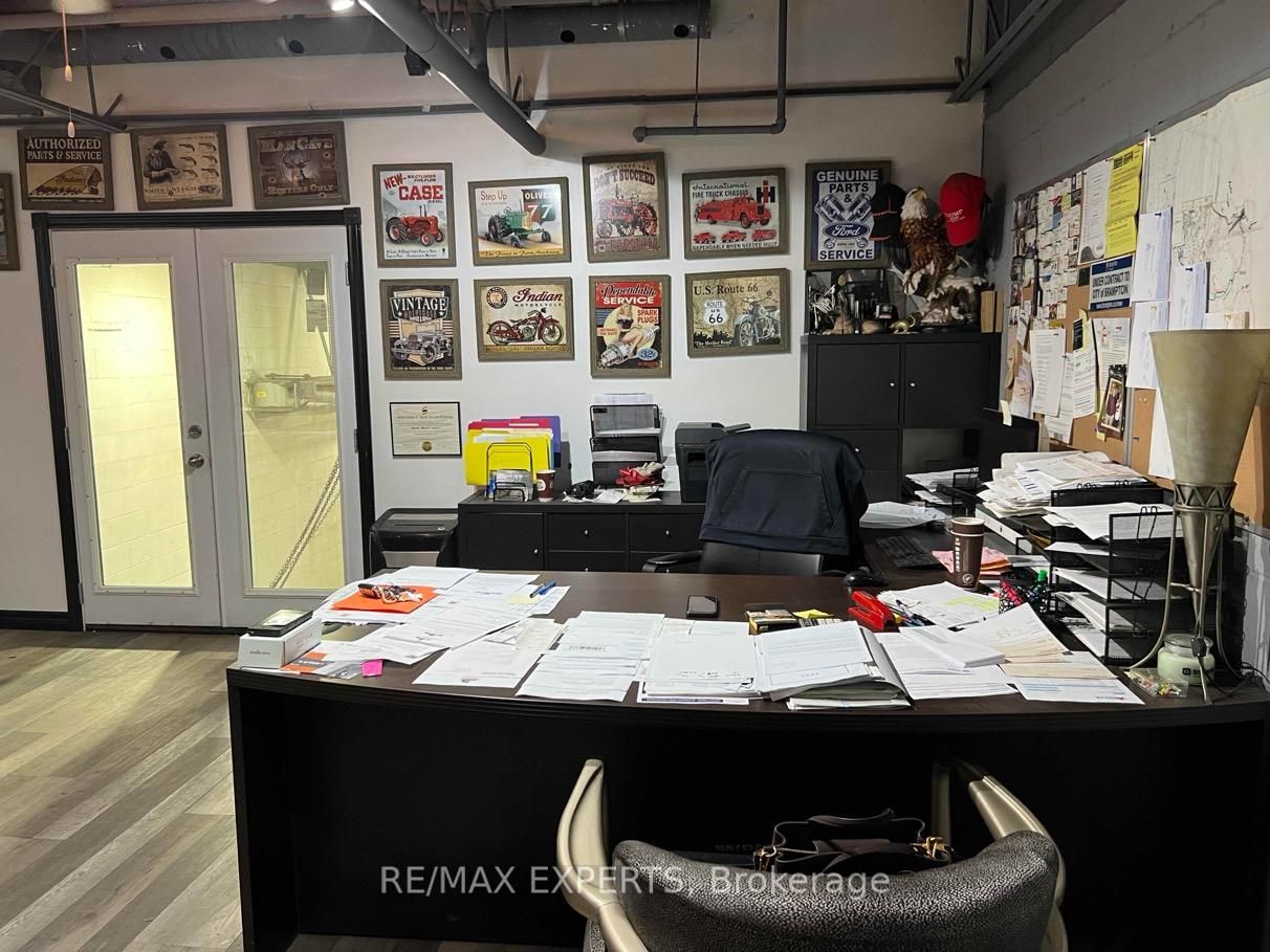 Excellent unit for smaller businesses or investment potential! Main floor features a built-in reception desk, boardroom with kitchenette, 2 pc powder room, & entrance door to warehouse space with a drive-in overhead door! 2nd floor mezzanine features 2 large office areas - one overlooks the warehouse and the other features a kitchenette and another bathroom! 13 security cameras included! This unit has 3 assigned parking spots in the front, and room to park 2 more vehicles by the overhead door in rear of building!