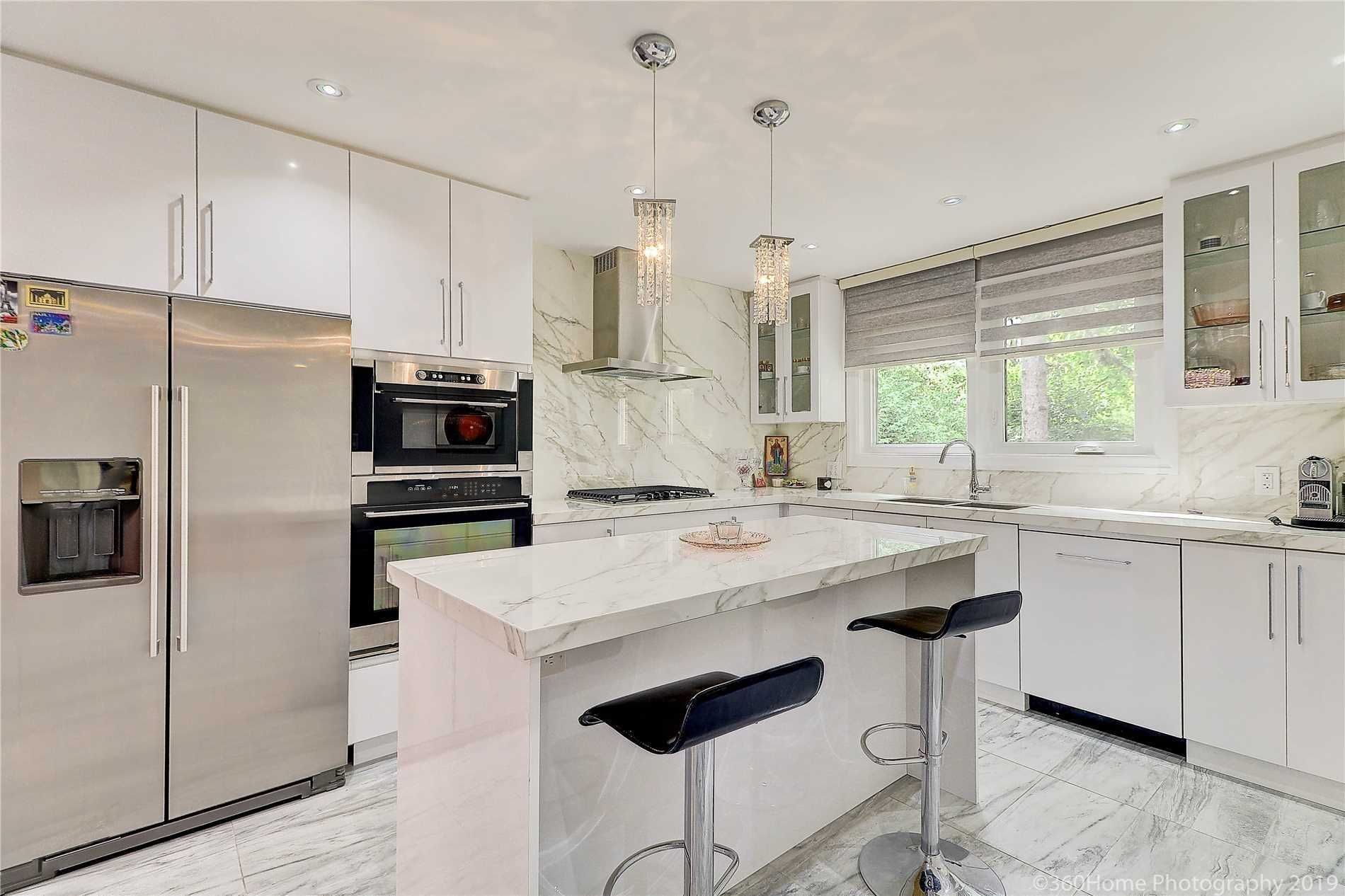 Elegant & executive 4+1 bedroom, 4 bathroom solid brick home nestled in the prestigious banbury community, within the sought-after denlow school district! This beautifully maintained and fully renovated home showcases hardwood and marble floors throughout the main and upper levels, with gleaming marble in key areas. The gourmet kitchen is equipped with custom cabinetry, marble countertops and backsplash, and brand new stainless steel appliances. Enjoy the spacious and sun-filled living and dining rooms featuring a cozy fireplace and walkout to a private, landscaped backyard ideal for entertaining and family gatherings. All bedrooms are bright and generously sized, with the primary suite offering a stunning renovated ensuite and built-in closet. The fully finished basement features a large recreation area and hobby room perfect for an in-law suite or extended family living. Recent upgrades include newer cabinetry, appliances, interlock driveway, and rear patio. Perfectly located on a quiet, family-friendly street, steps to ttc, top-ranked schools (denlow, rippleton, york mills ci), edward gardens, sunny brook park, shops at don mills, and major highways. A true turn-key home offering space, style, and convenience in one of torontos most desirable neighbourhoods!