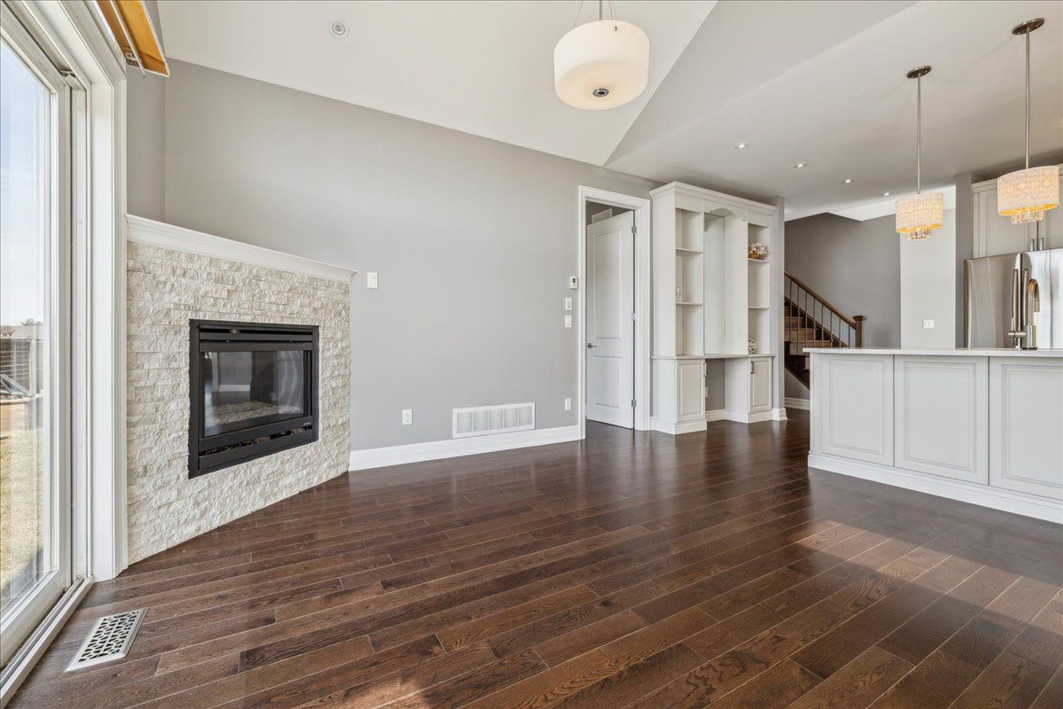 Modern luxury meets functional design in this stunning builder model home! This beautifully crafted end unit townhome offers 1580 sqft, 5 spacious bedrooms and 4 full bathrooms, making it ideal for downsizers or multi-generational families. The thoughtful layout includes 2 bedrooms on the main floor, 2 full bathrooms, and an open-concept living space with soaring vaulted ceilings and a sleek gas fireplace. The second floor features a private bedroom with a full bathroom & a versatile loft area. The basement includes 2 additional bedrooms, a full bathroom, a kitchen, and a separate entrance through the garage-perfect for extended family or rental potential. Premium features and finishes include a chef's kitchen with upgraded cabinetry, quartz countertops, touch activated faucet, a breakfast bar, elegant pendant lighting, one touch lighting system. The spa-like ensuite offers a glass-enclosed rainfall shower, premium tiling, and a walk-through closet-to-bathroom design & vaulted ceiling in the bedroom. Premium upgrades throughout include high-end finishes, custom built-ins, hardwood flooring, and designer light fixtures. Parking is a breeze with a finished, heated 2-car garage plus driveway space for up to 10 vehicles. Located just steps from the scenic welland canal trail and within walking distance to parks, recreation, shops, and restaurants-plus easy access to the qew and public transit-this home delivers both lifestyle and convenience. Don't miss your chance to own a rare offering that perfectly balances elegance, space, and location!