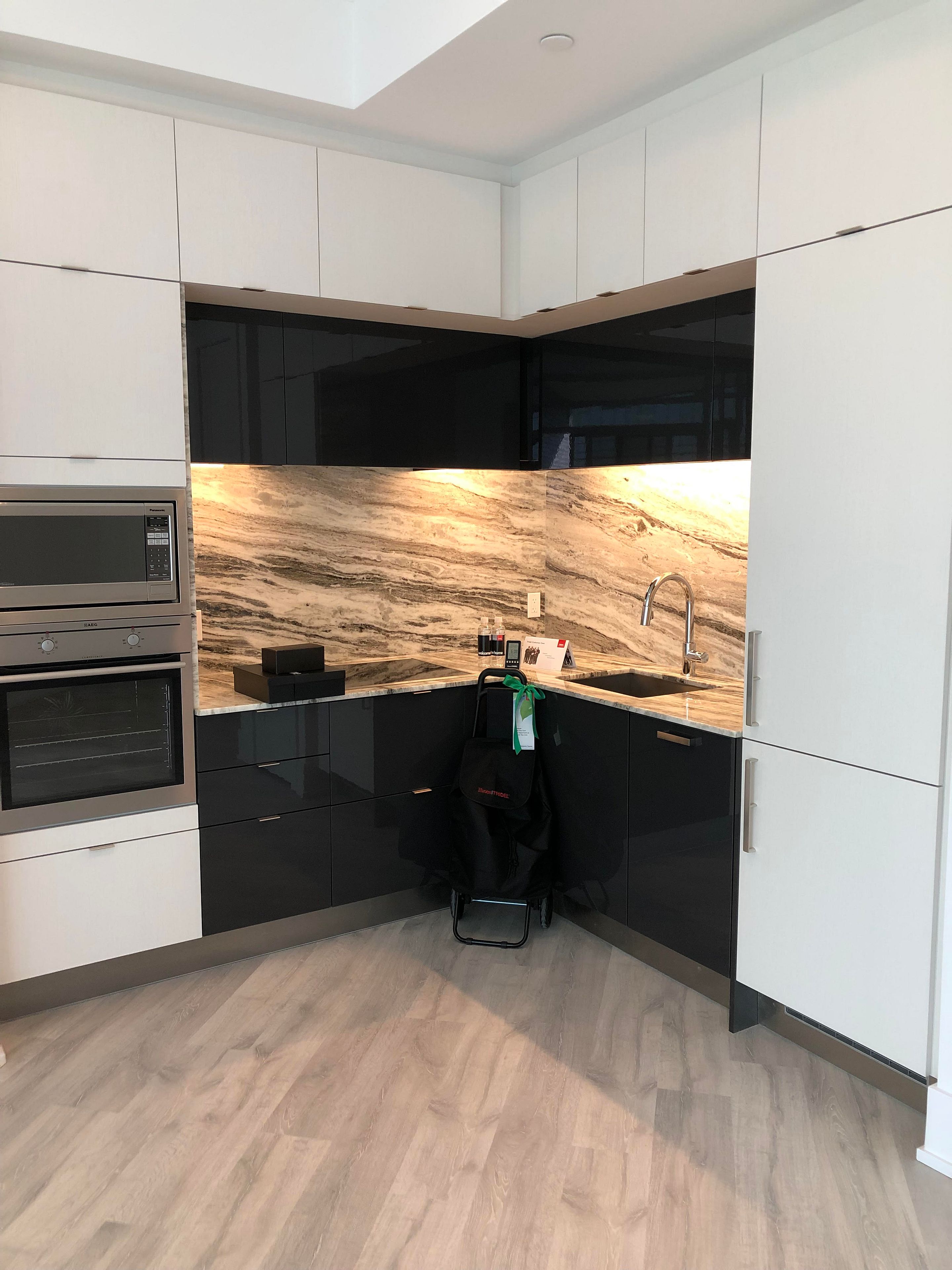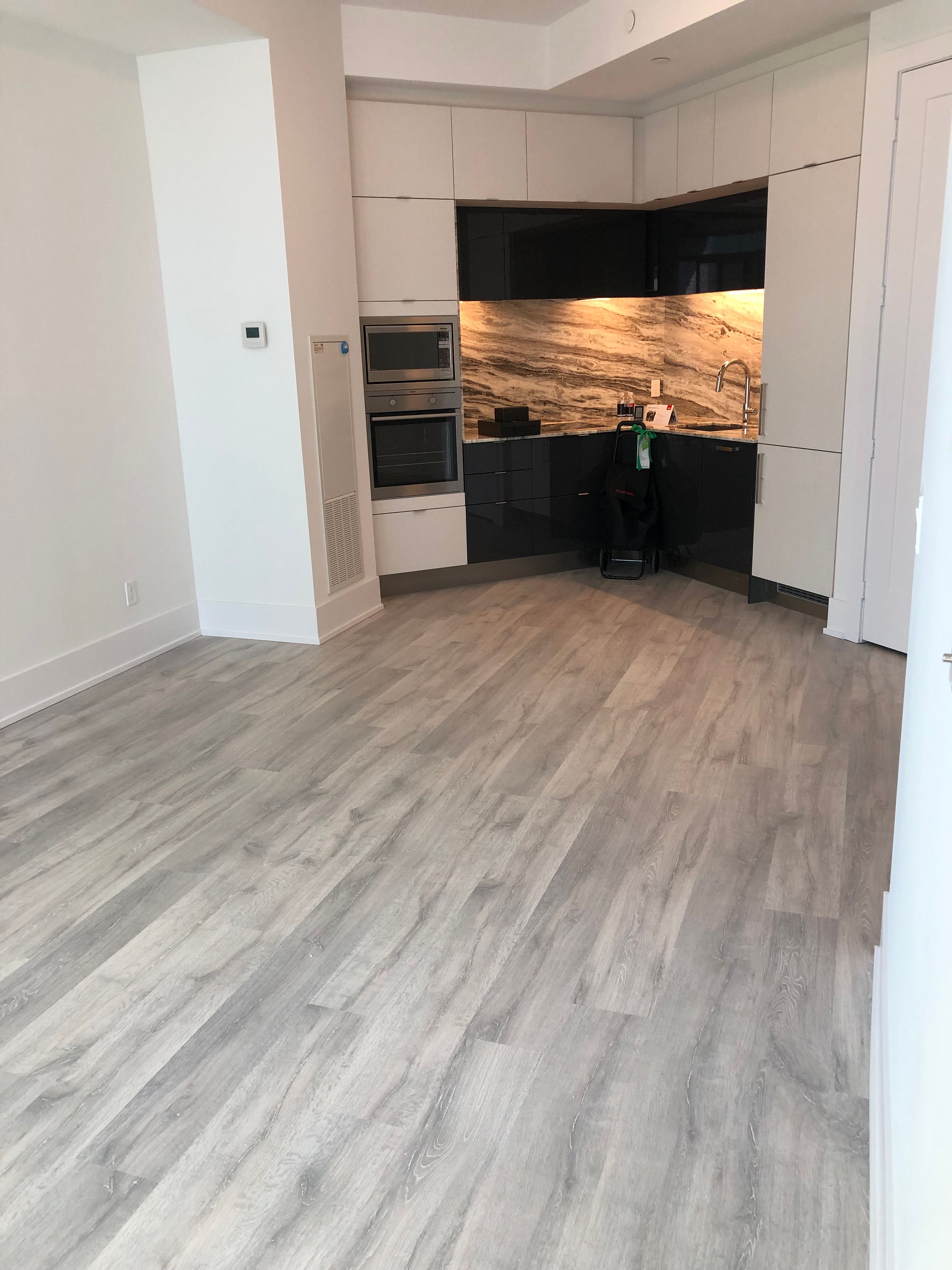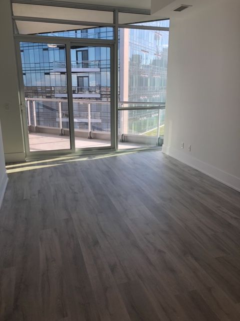 Tridel's waterfront luxury condo! "aquavista at bayside"! This upscale lake front 1 bedroom+den features designer kitchen cabinetry with stainless steel appliances & stone counter tops. Bright floor-to-ceiling windows with laminate flooring throughout facing lake views. A spacious sized master bedroom with glass sliding doors. Steps to toronto's harbourfront, restaurants, cafes, union station, the financial district, st. Lawrence market & distillery district. 2 balconies with relaxing lake views, new marche leo's grocery store coming to ground floor. Steps to george brown college.