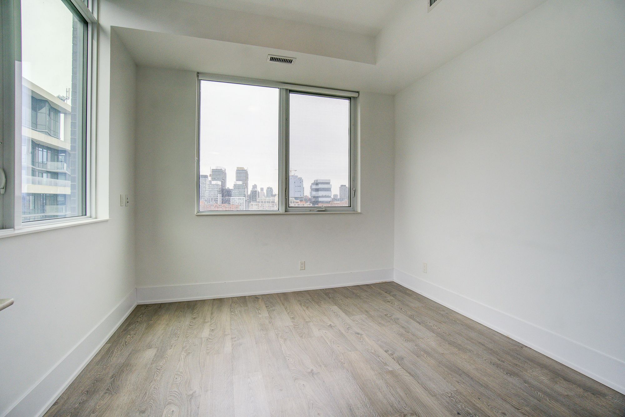 • Spacious one-bedroom suite with tall ceilings and large windows.