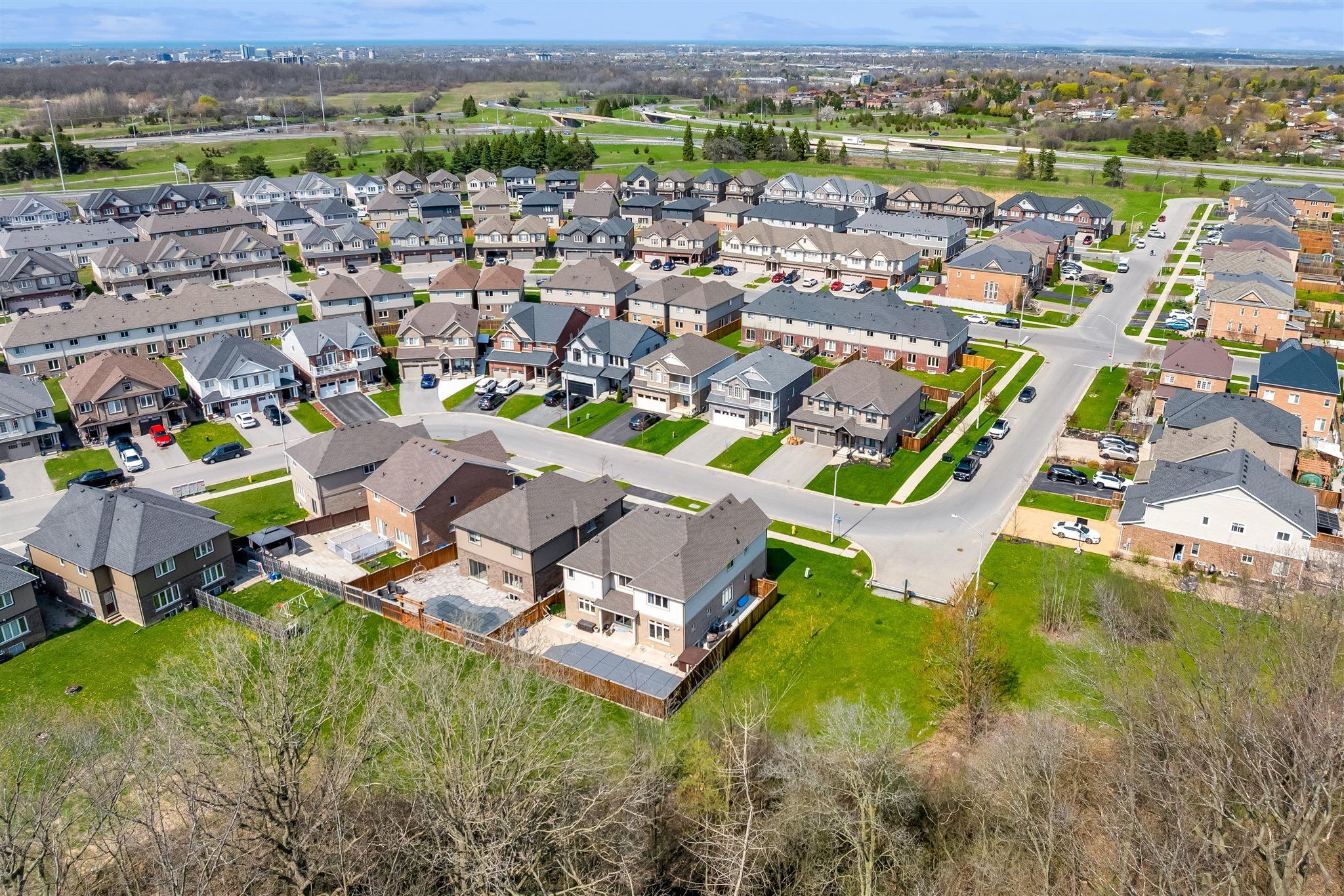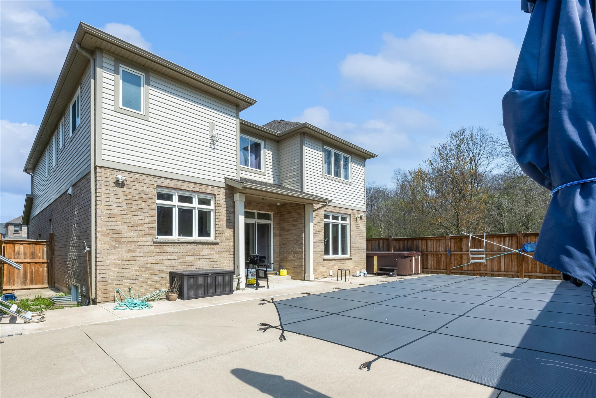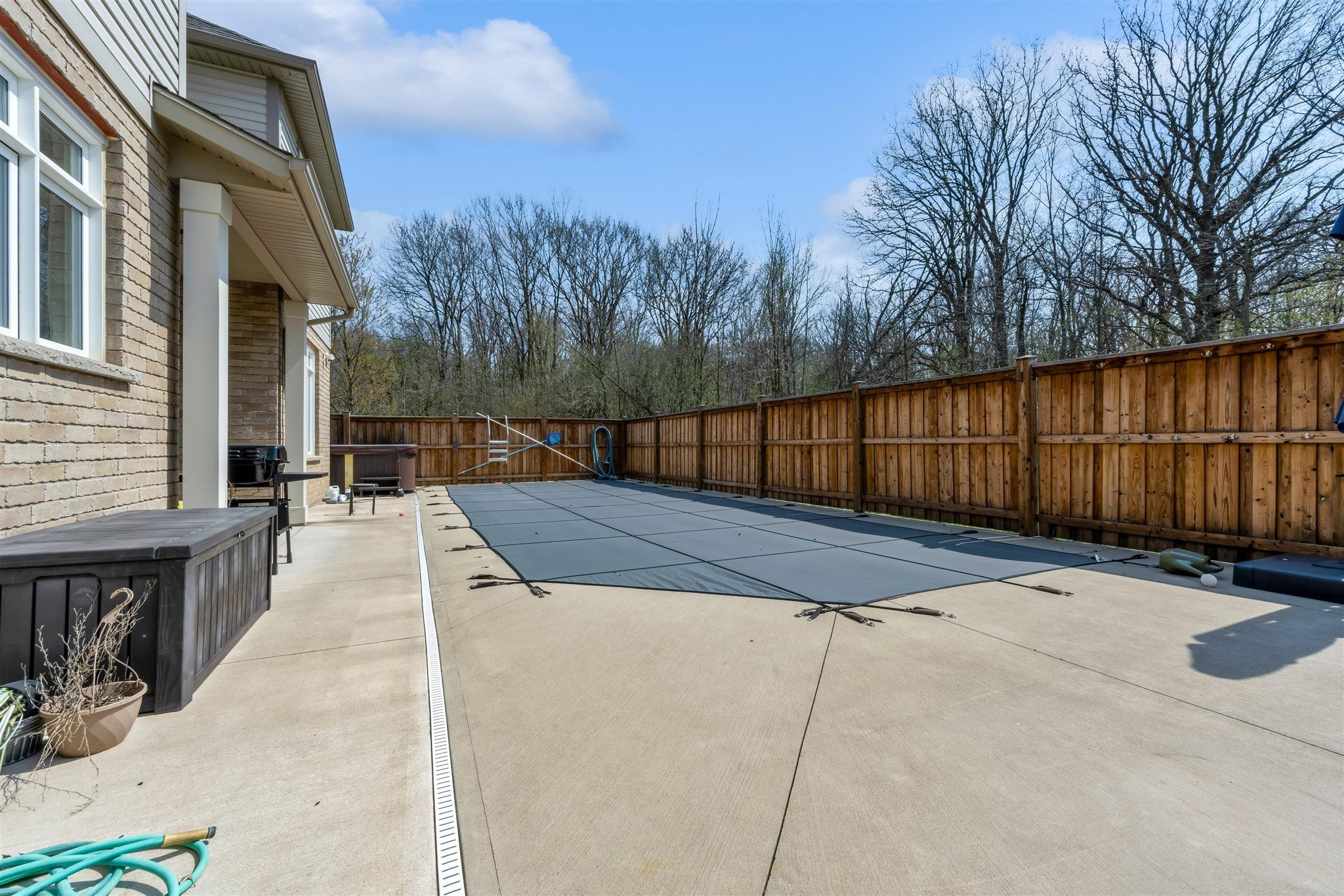 • Private lot backing onto a wooded area with an inground pool.
