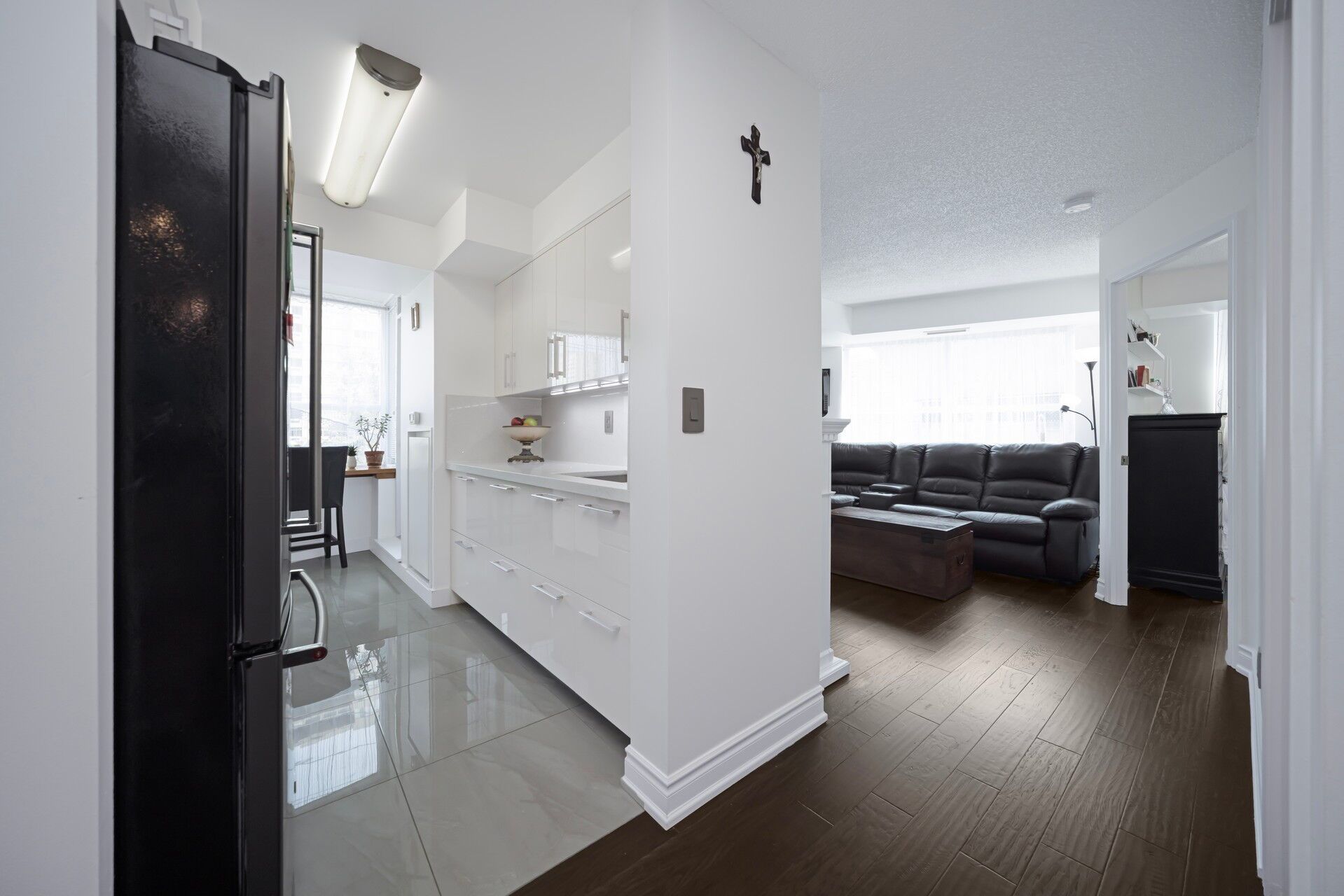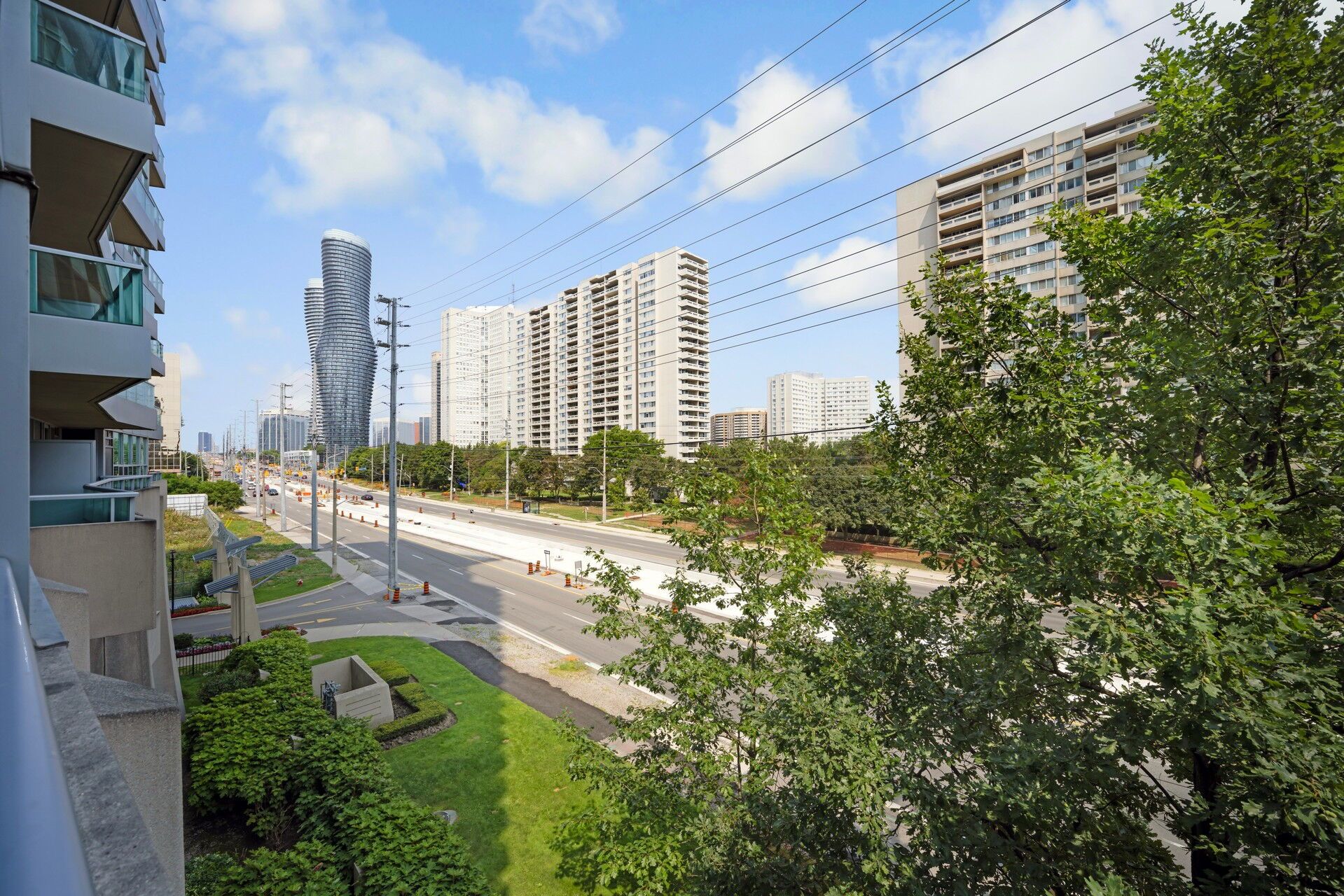 This stunning, fully renovated 2-bedroom, 2-bathroom 885 sqft corner unit with ***2 parkings*** is located in the heart of mississauga's highly sought-after city centre, just steps from square one, the future lrt, go station, and major highways including the 403 and qew. Offering a spacious and well-designed two bedroom layout, this bright and airy condo features 9-foot ceilings, hardwood flooring throughout, and floor-to-ceiling windows that flood the space with natural light. The open-concept living and dining area flows seamlessly into a custom kitchen with extended cabinetry, premium finishes, and a cozy breakfast area. Both bedrooms include custom-built cabinets, with the primary bedroom offering a private ensuite bath and the second bedroom conveniently located next to the second full bathroom. Freshly painted and move-in ready, this unit also includes ensuite laundry, a large balcony with panoramic views. Additional features include two rare side-by-side parking spaces and a locker. Residents enjoy access to a wide range of luxury amenities including a yoga studio, gym, indoor swimming pool, jacuzzi, sauna, billiards and table tennis rooms, a party/dining room, and 24-hour security. Nestled in a family-friendly neighborhood with schools and daycare within walking distance, this spotless and beautifully maintained condo in a well-managed daniels building is ideal for first-time buyers, downsizers, or investors. A true gem in one of mississauga's most convenient and vibrant communities. Don't miss out!
