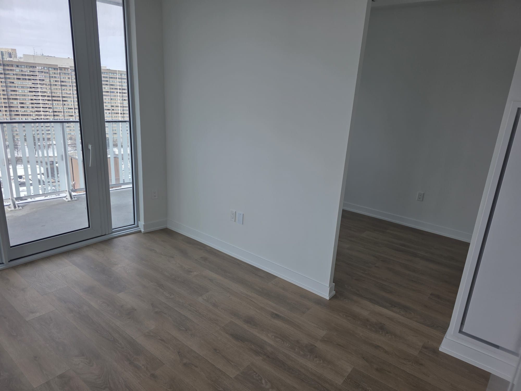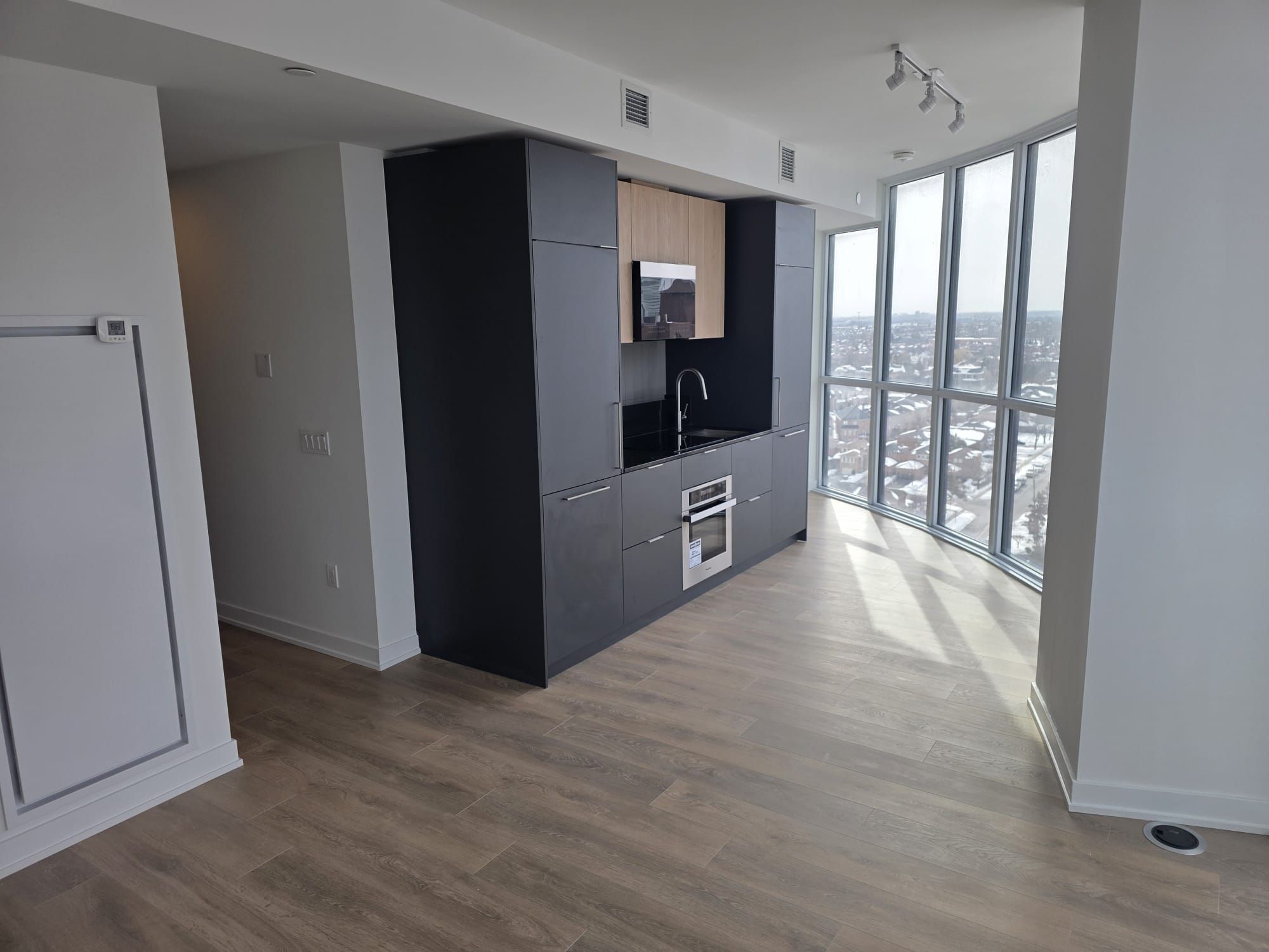 • Never lived-in condo with a functional 1 bedroom plus den layout.