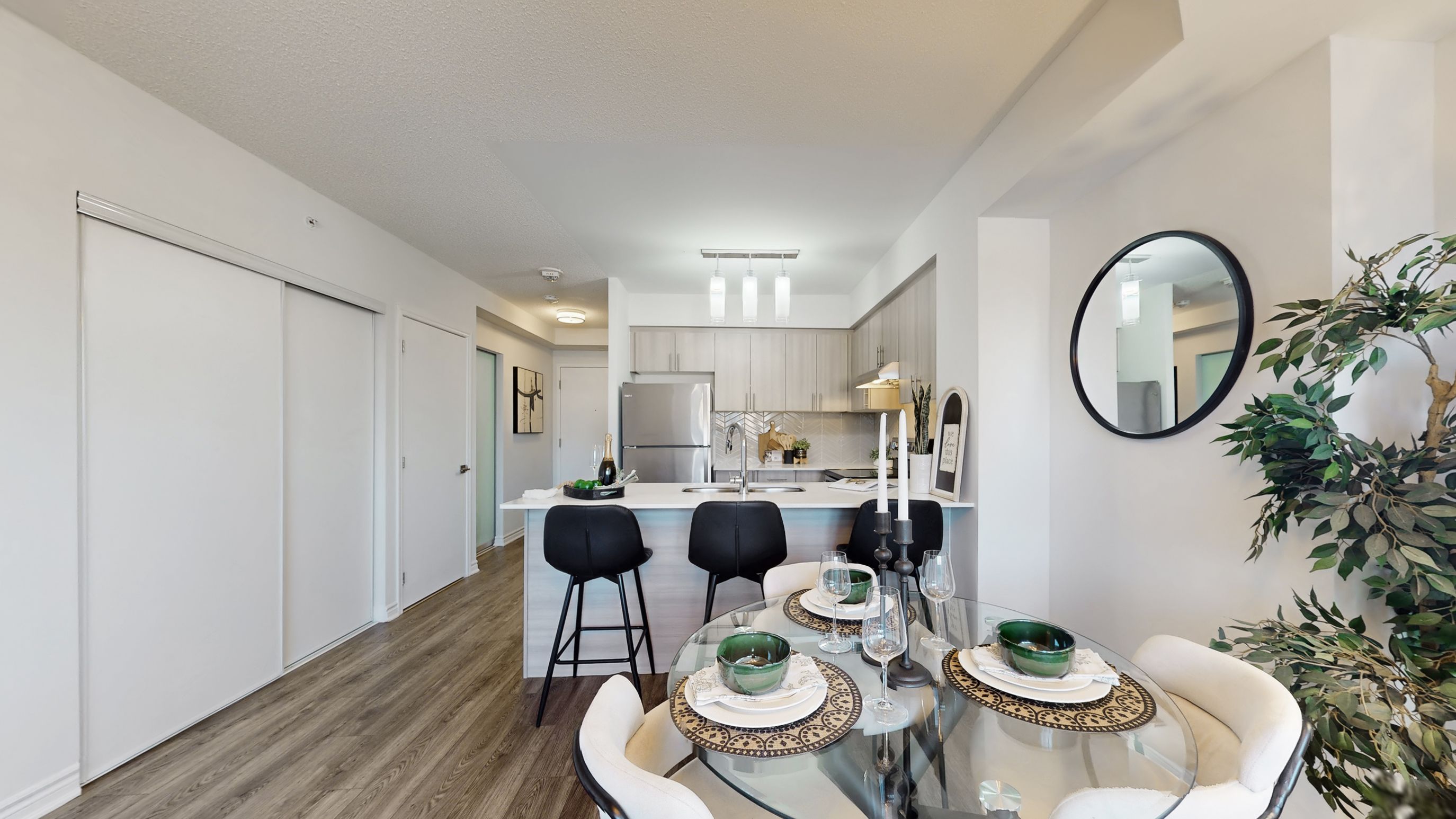 • Stylish kitchen featuring stainless steel appliances and quartz countertops.