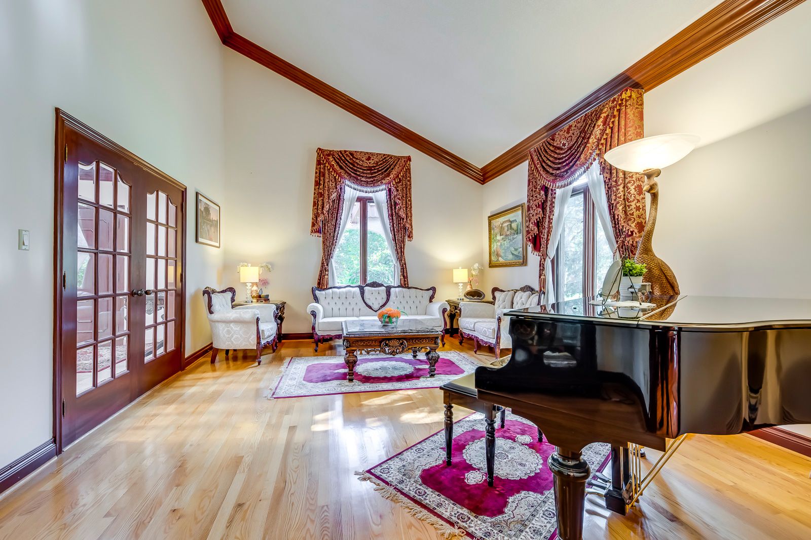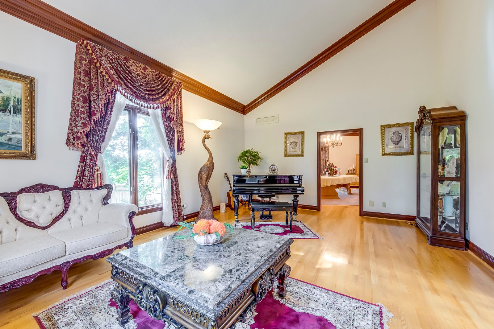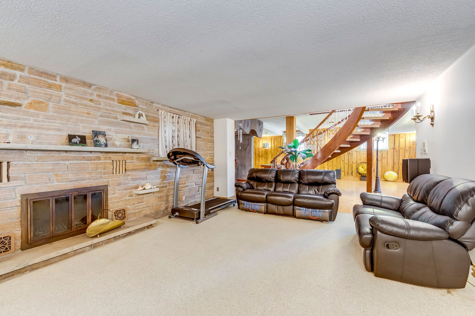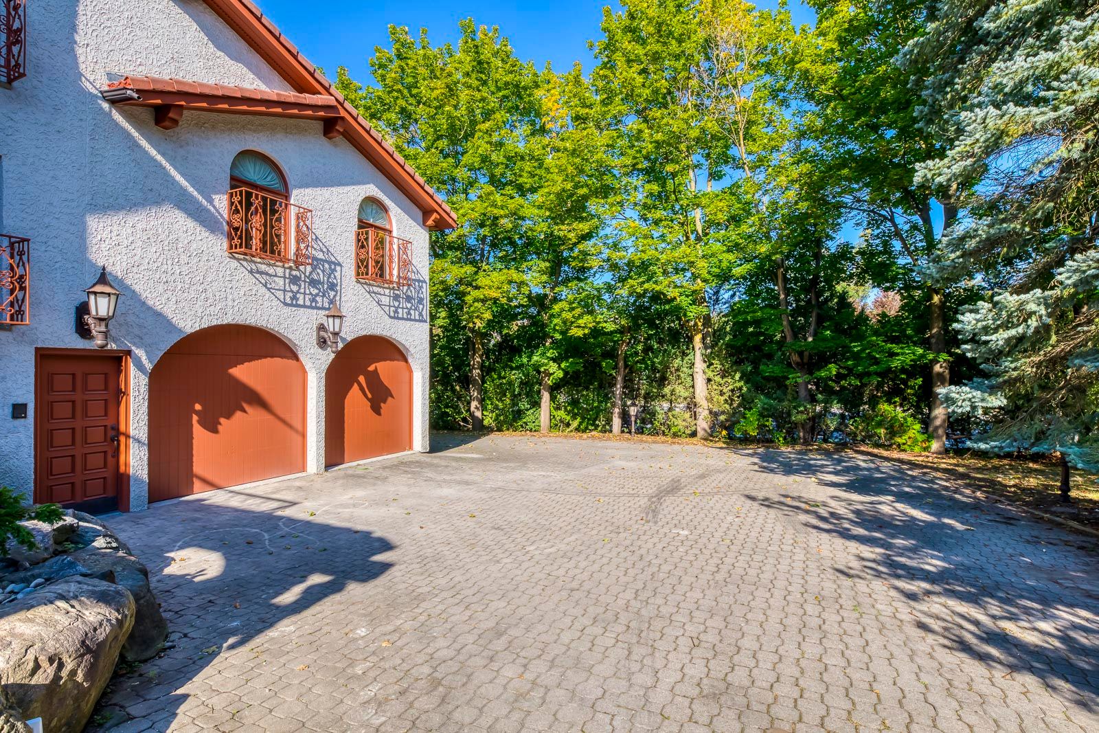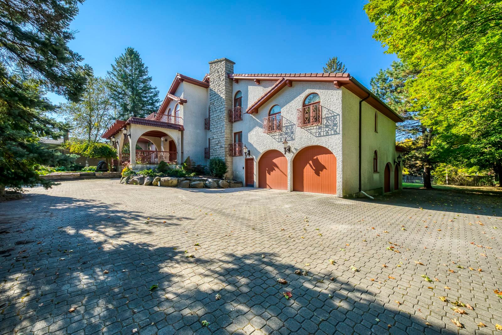 Experience refined living at its finest in this extraordinary custom-built estate, where timeless elegance meets superior craftsmanship. From the moment you step through the beautifully landscaped stone-walled courtyard and into the grand foyer, every detail speaks to exceptional quality and thoughtful design. Soaring cathedral ceilings with three skylights bathe the interior in natural light, while striking wrought iron and oak floating staircases add architectural drama and sophistication. This five-bedroom residence offers a seamless blend of luxury and comfort, featuring multiple stone and wood-burning fireplaces, rich crown moulding throughout, and spa-inspired marble bathrooms. The intelligently designed layout is both spacious and functional, ideal for everyday living and lavish entertaining. A rare 4-car garage, with total parking for up to 12 vehicles, provides ample space for guests and family alike. The fully finished lower walkout basement is a true retreat, complete with a private fitness studio, an elegant recreation lounge with custom made wet bar, a relaxing spa room, sauna, and a cozy fireplace, perfect for unwinding or hosting in style. A rare opportunity to own a home where elegance, warmth, and comfort come together in perfect harmony.